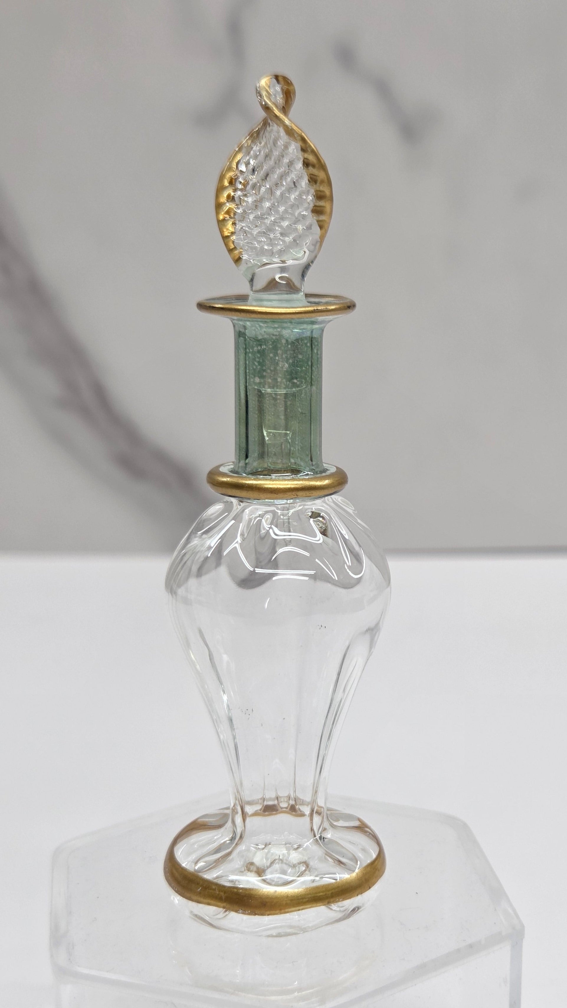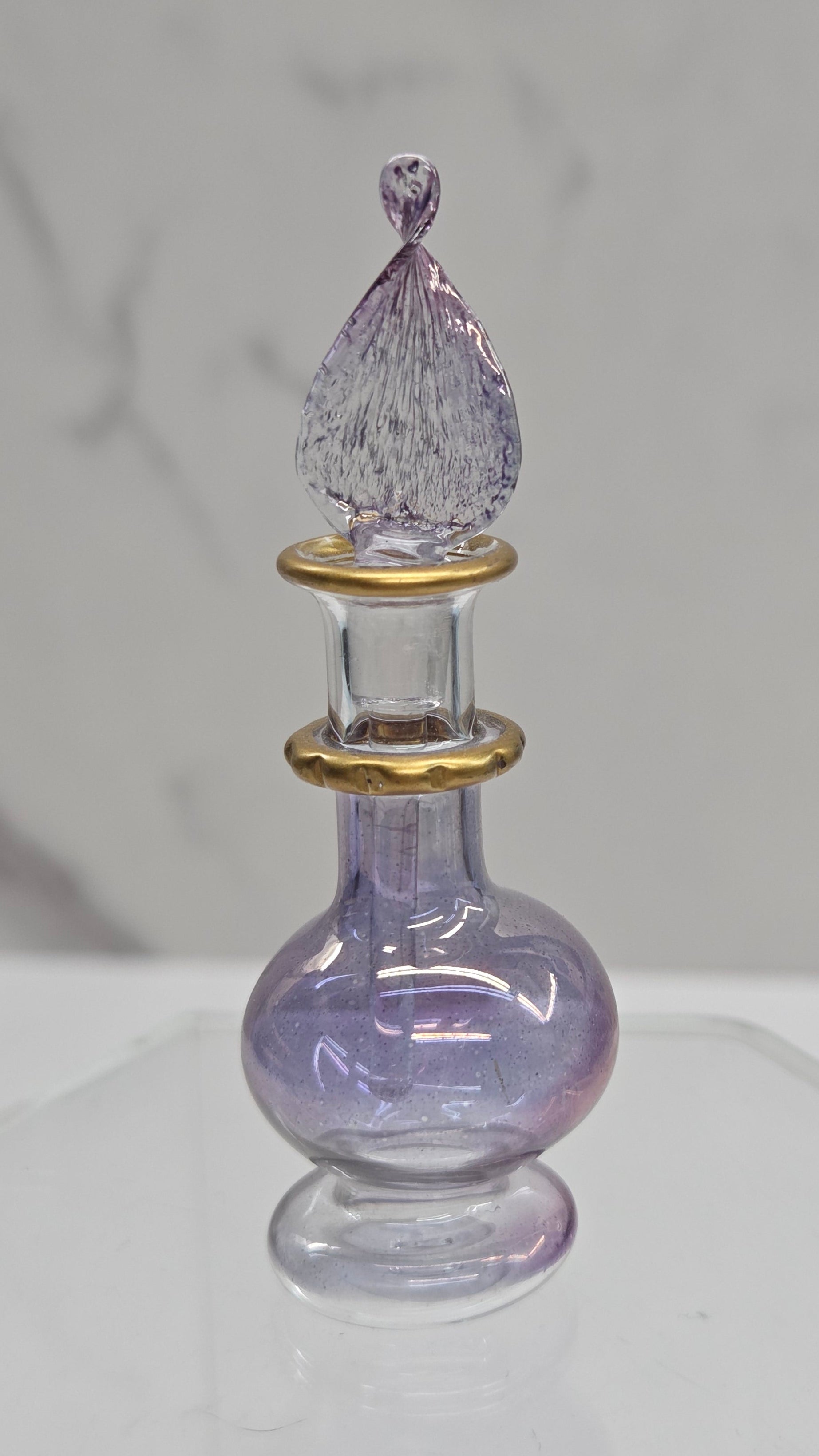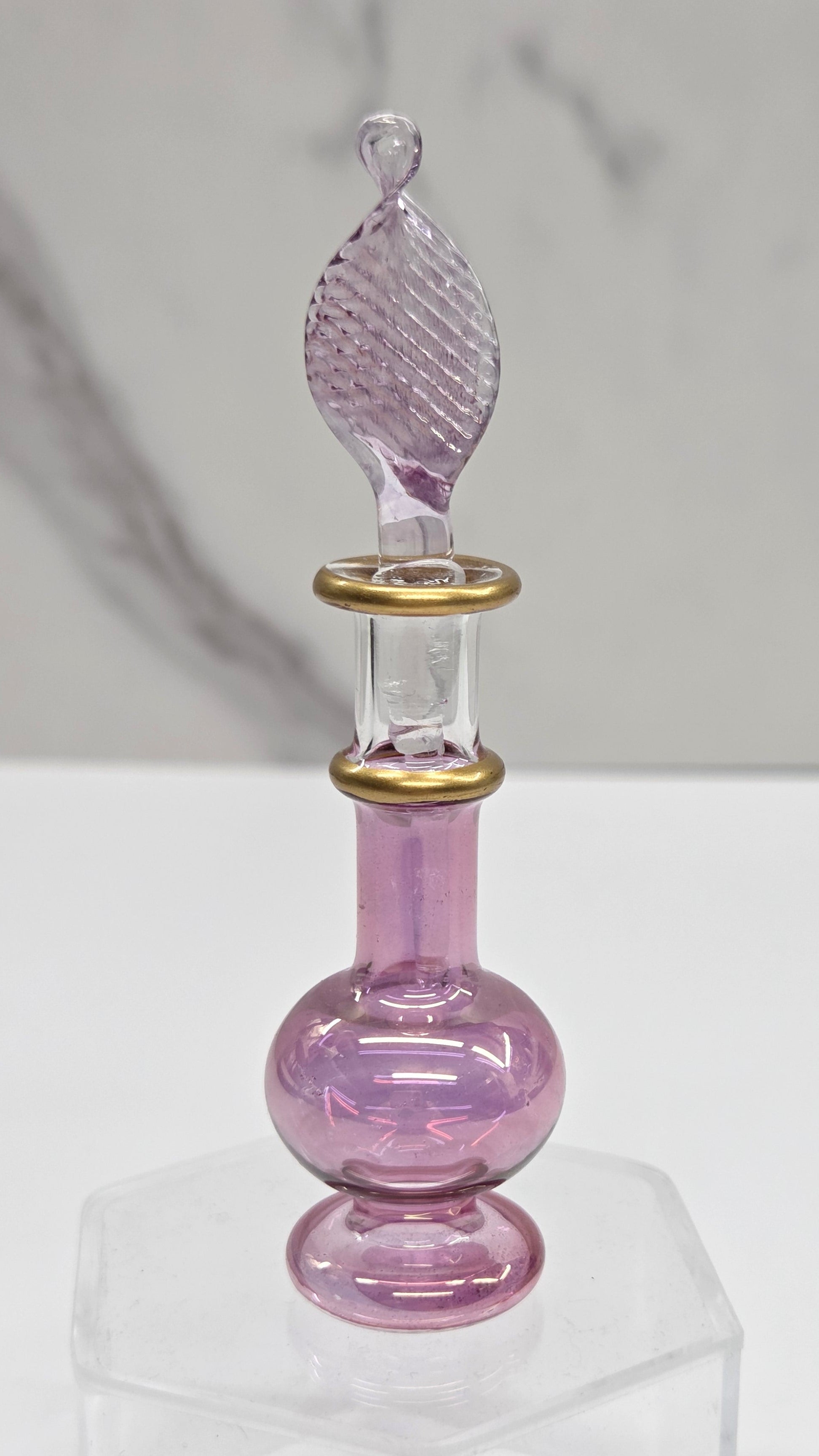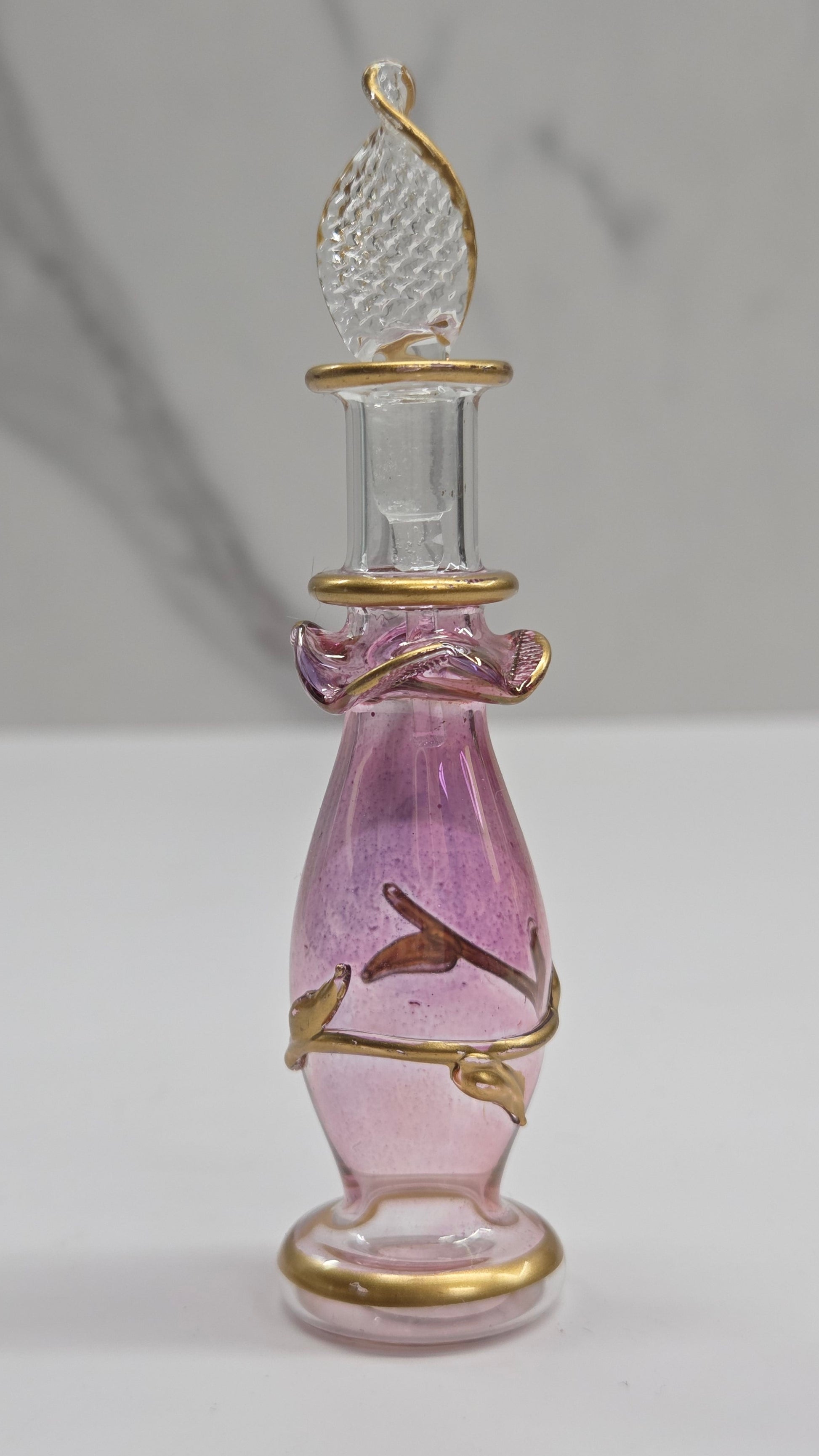 Beautiful Egyptian blown glass perfume or essential oil bottles. Each bottle measures approx. 3.75" tall.