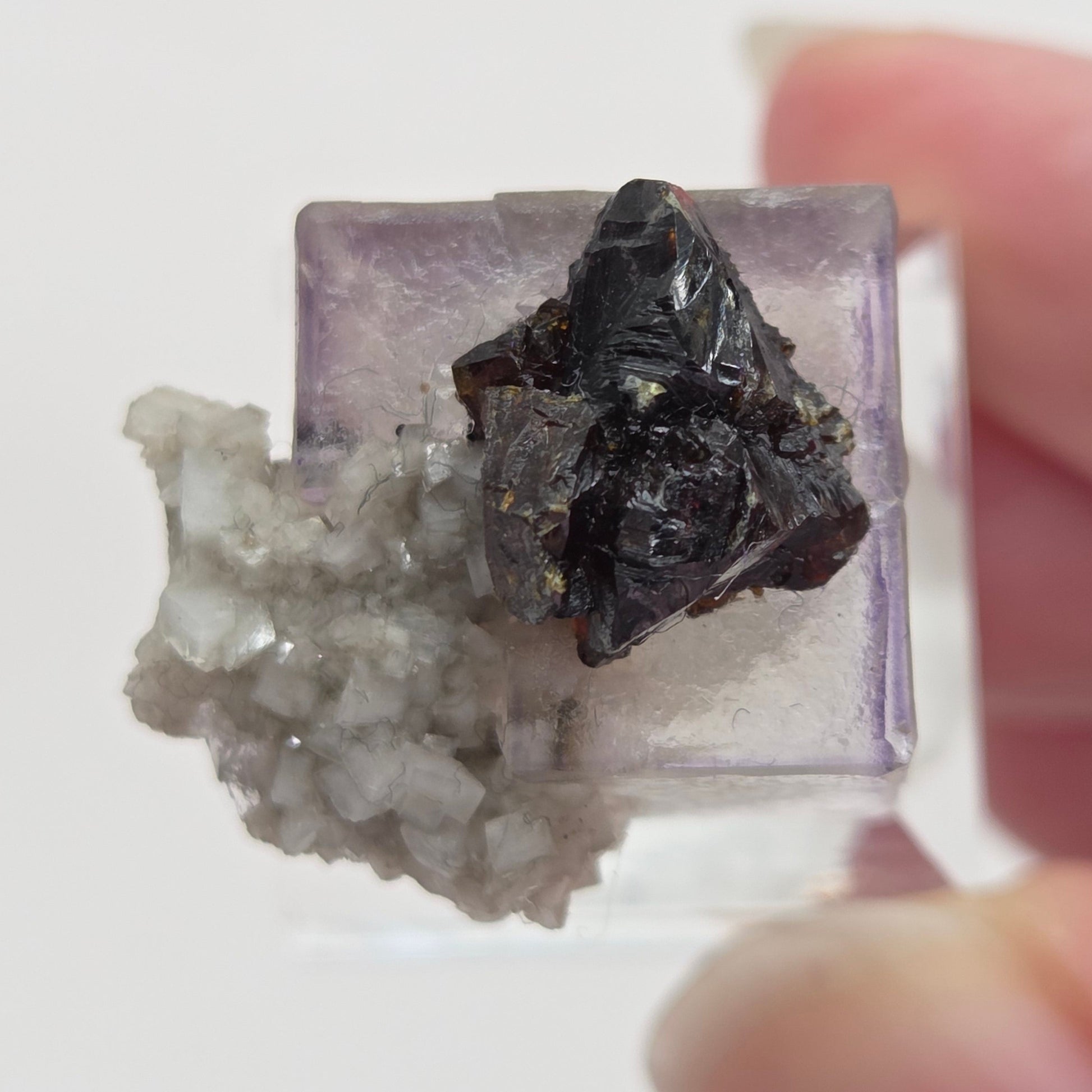 Elmwood fluorite is a specific type of fluorite mineral known for its high quality and distinct features, found in the Elmwood Mine near Carthage, Tennessee. It is highly prized by collectors for its rich purple and blue colors, sharp cubic crystals, and association with other minerals like sphalerite, barite, and galena.
