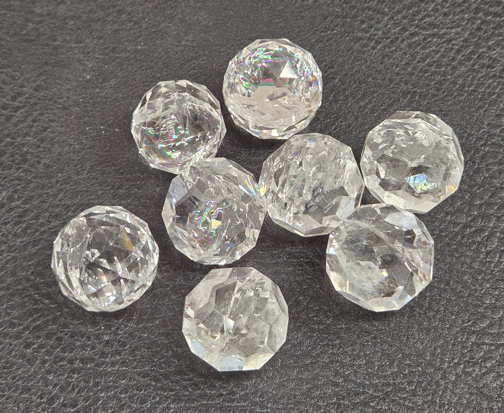 Beautiful faceted mini spheres in a variety of materials. Most have rainbows.