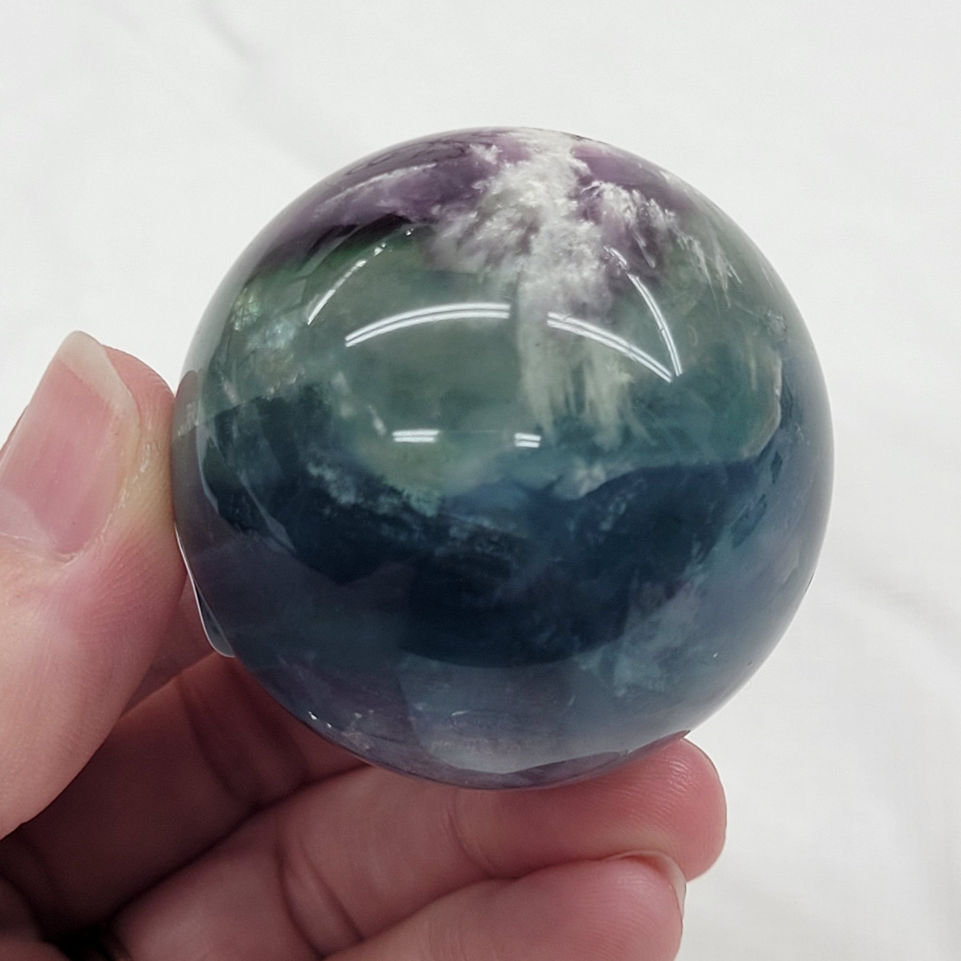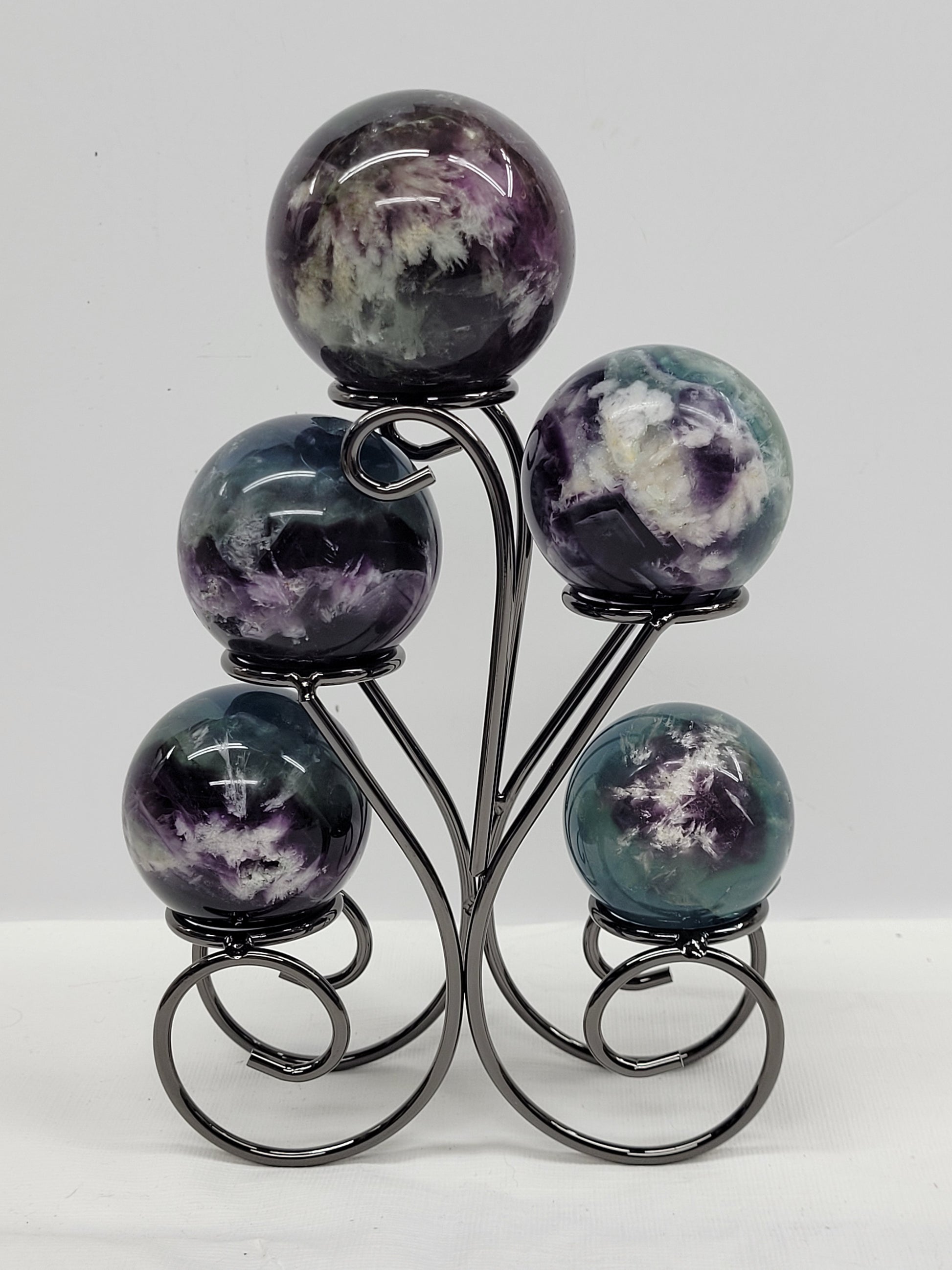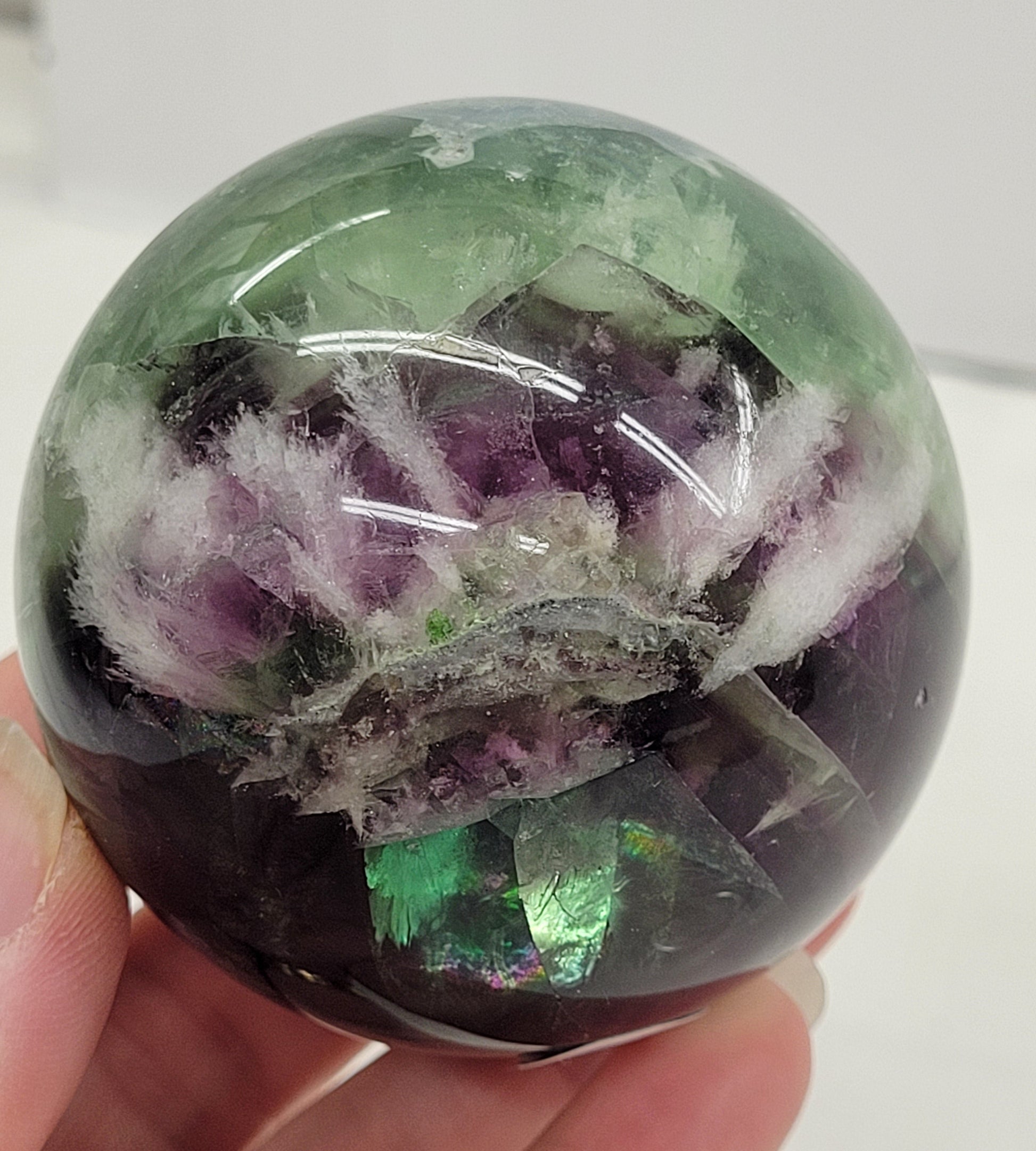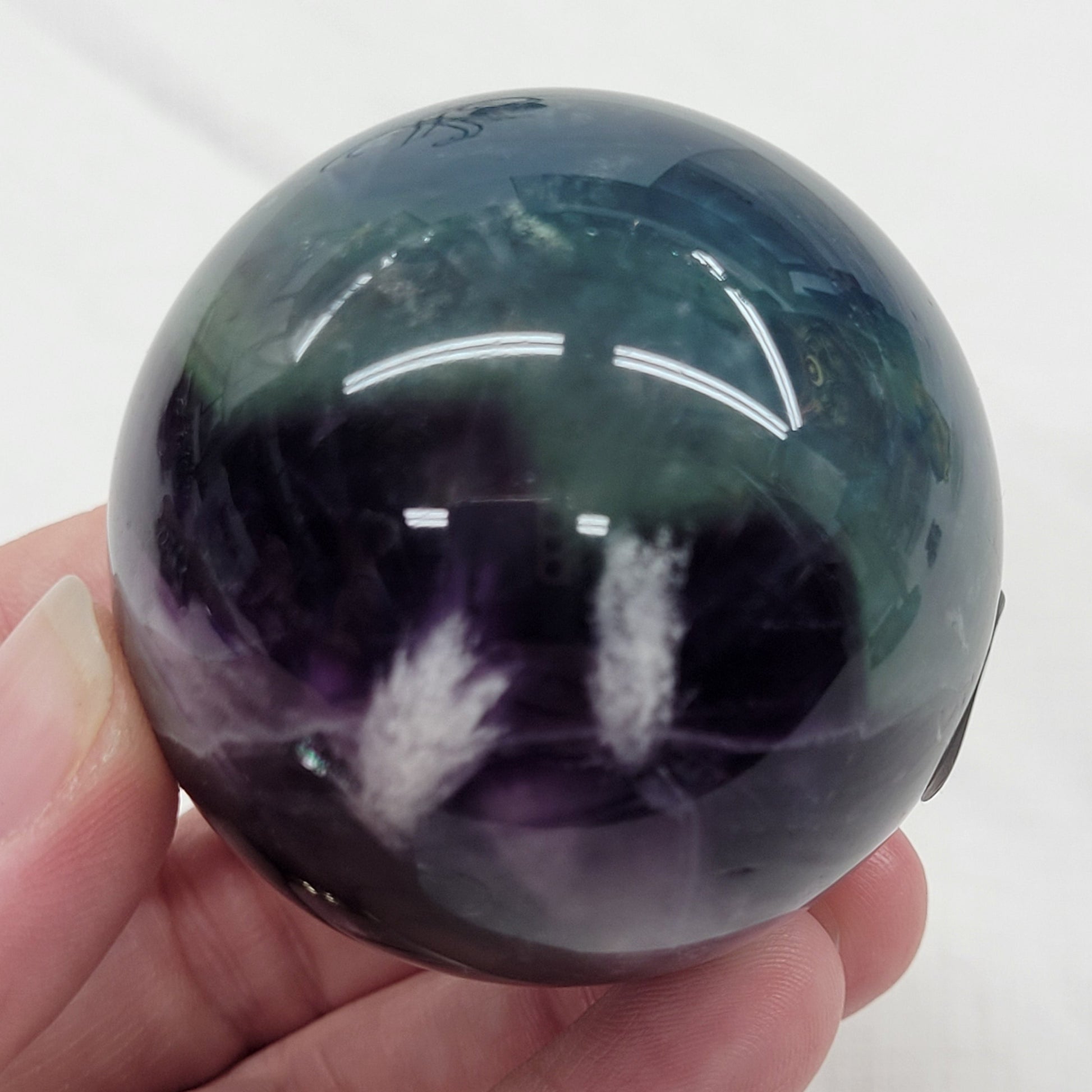 Feather Fluorite is a variety of Fluorite, forms in a wide variety of hues, typically purple, green, yellow, blue, and pure form – colorless. It is composed of calcium fluoride and is a member of the Halide family. Feather Fluorite is named for its Scolecite formations, which resemble delicate feathers or plumes.