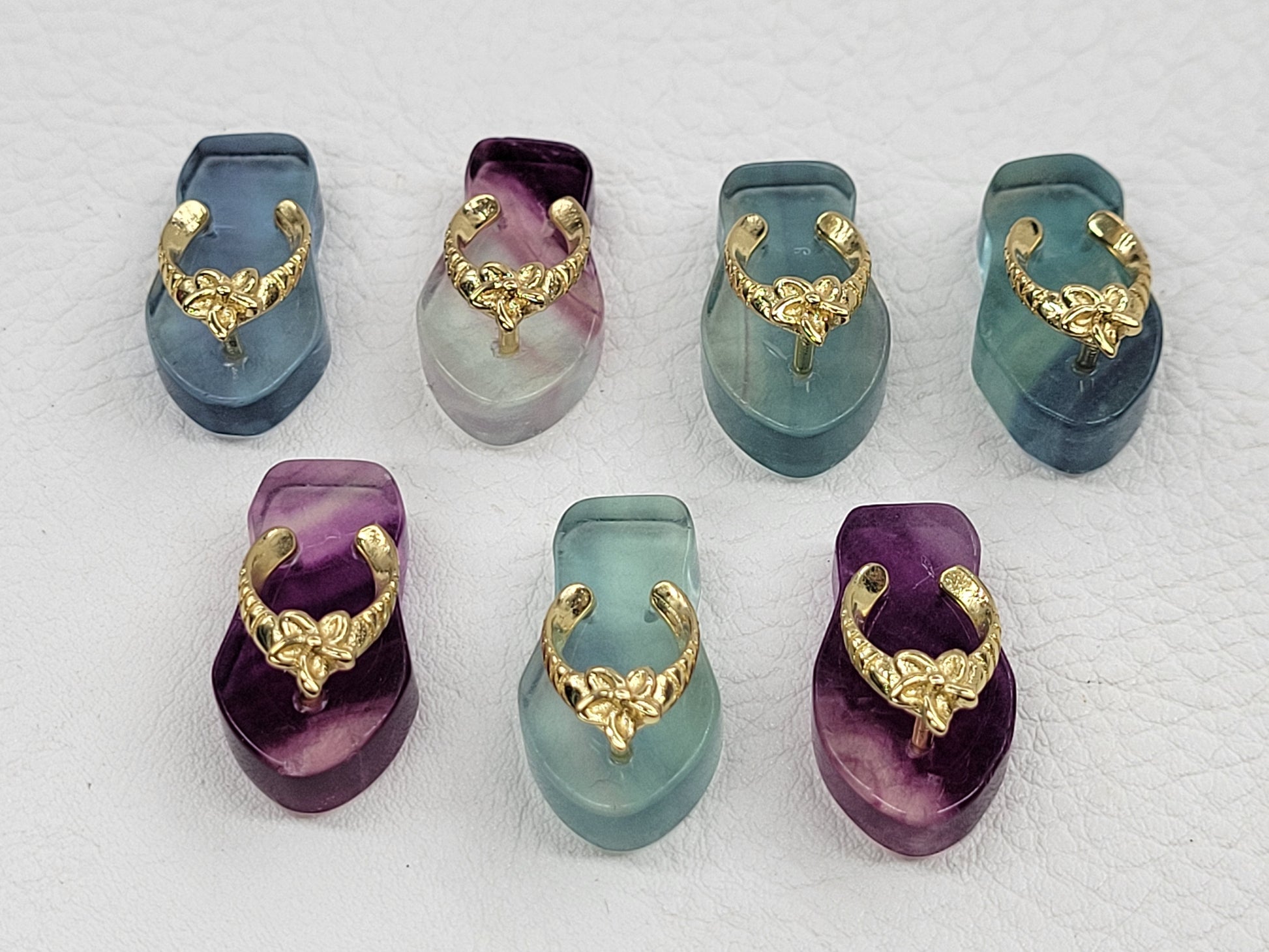 Fluorite mini flip-flop shoes. Randomly chosen.