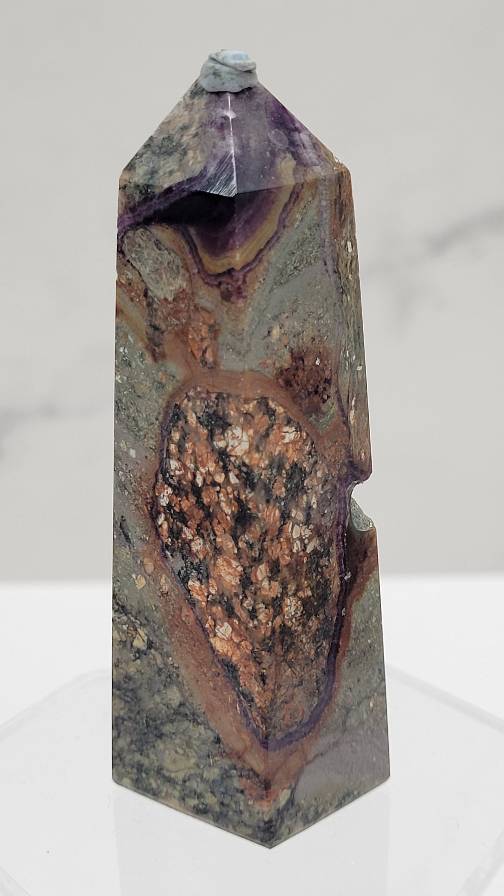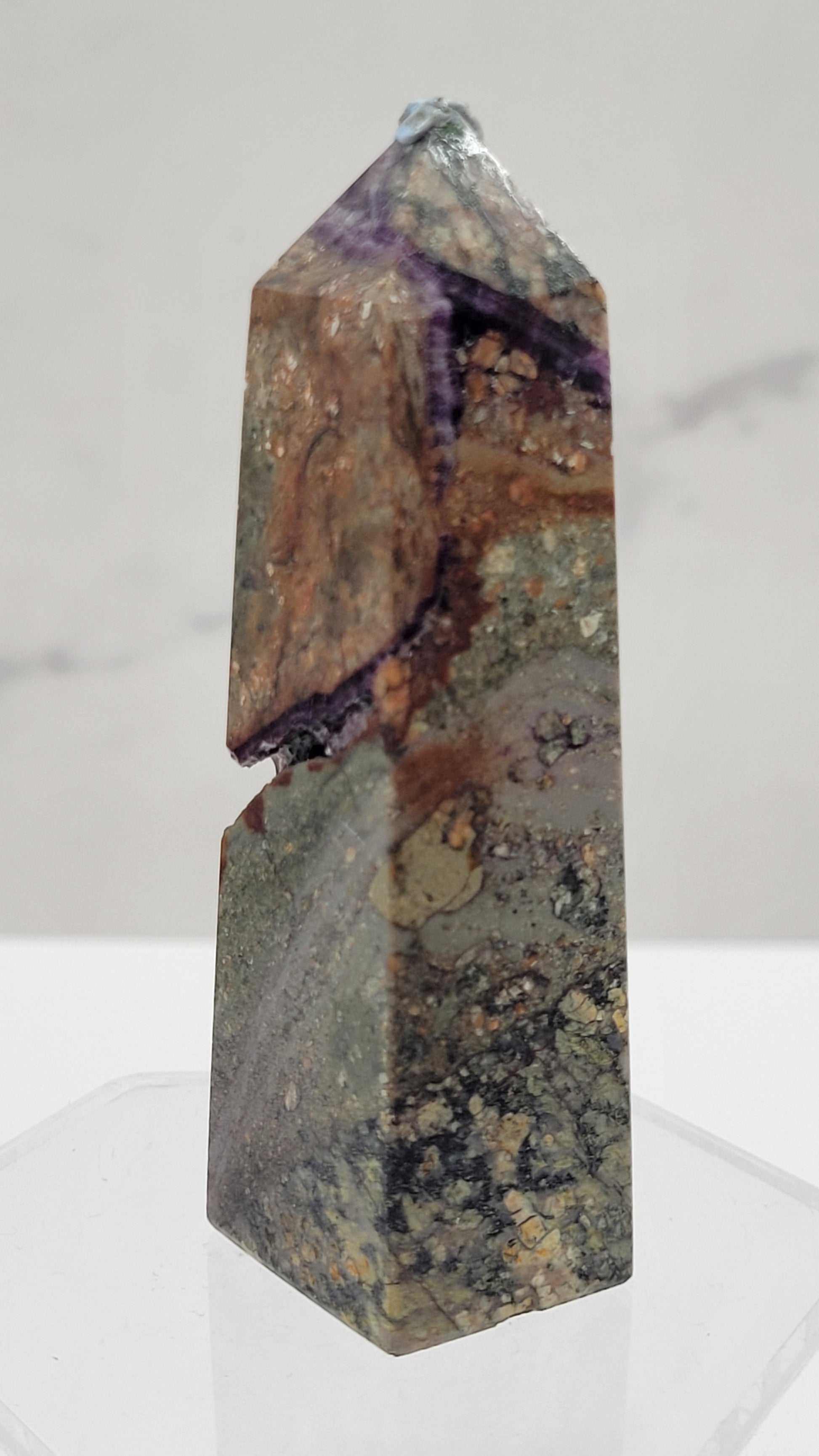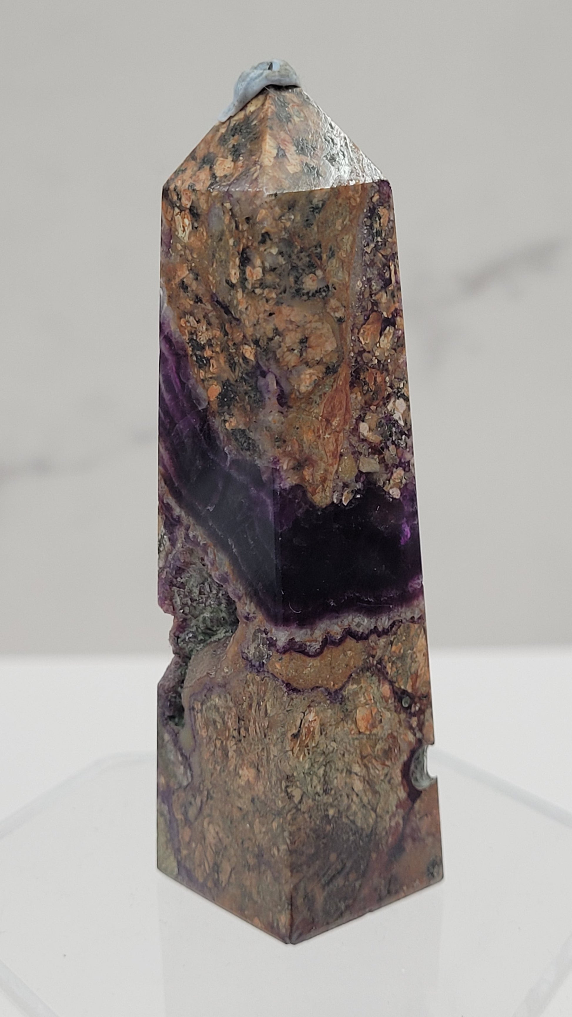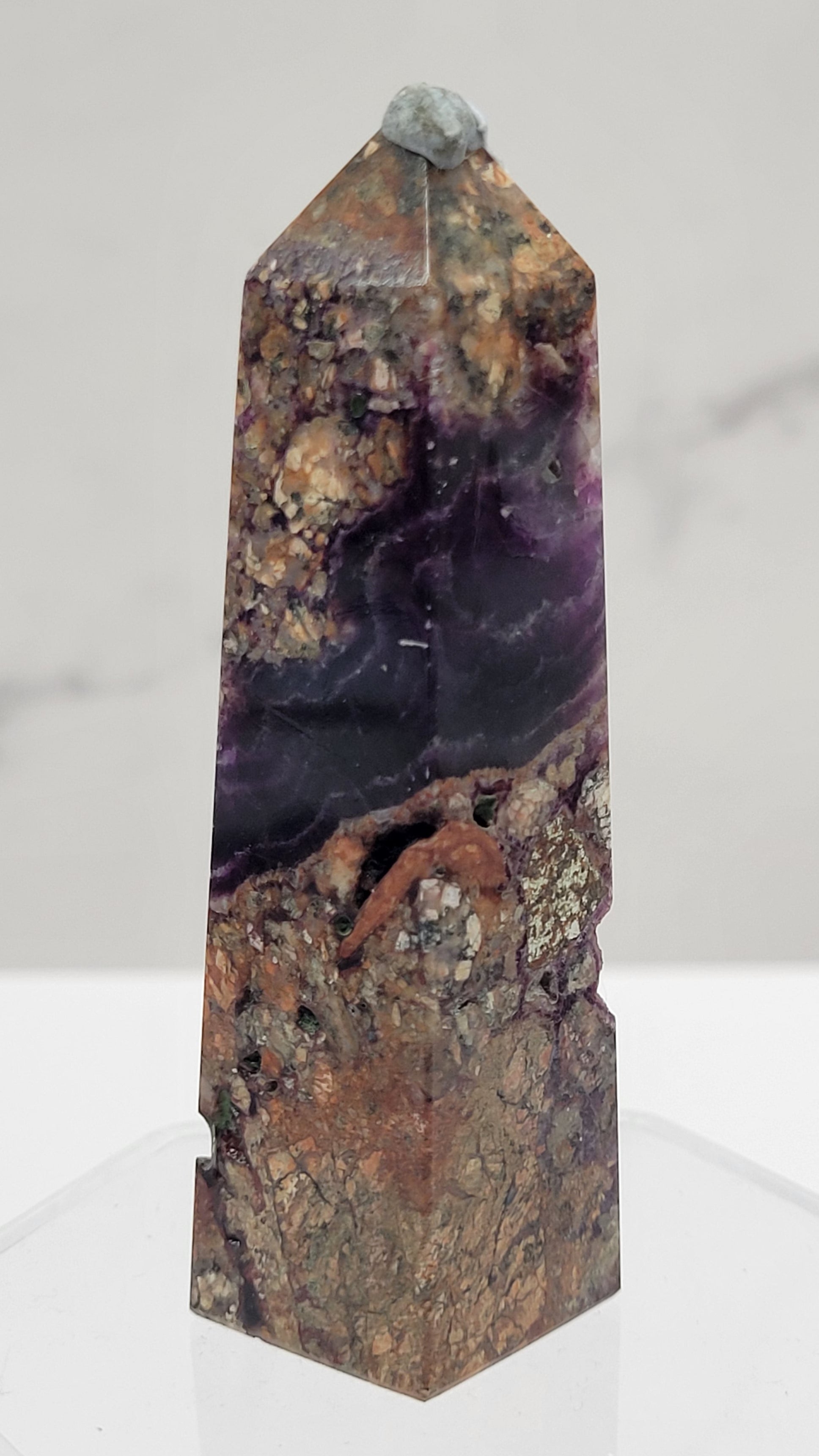 Fluorite Root (aka Brecciated Fluorite) is made in the Earth from broken pieces of Fluorite and naturally cemented back together by a fine-grained matrix within the Earth.