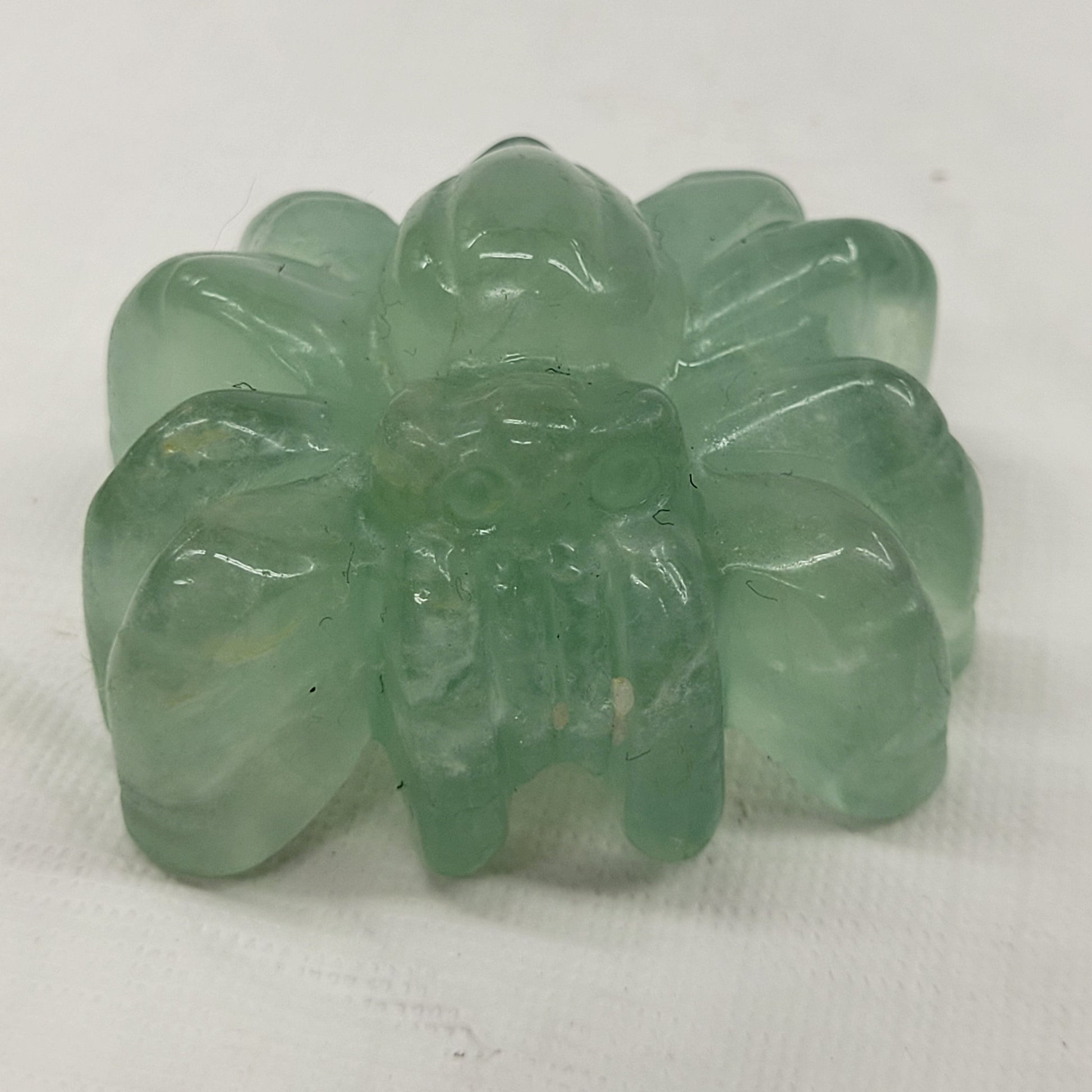 Large Fluorite spiders in green or purple. The spiders measure approx. 2.15" x 1.9" x 1".