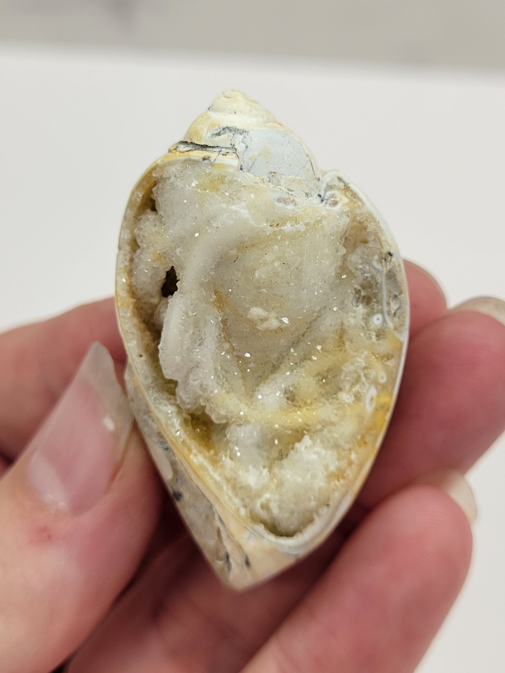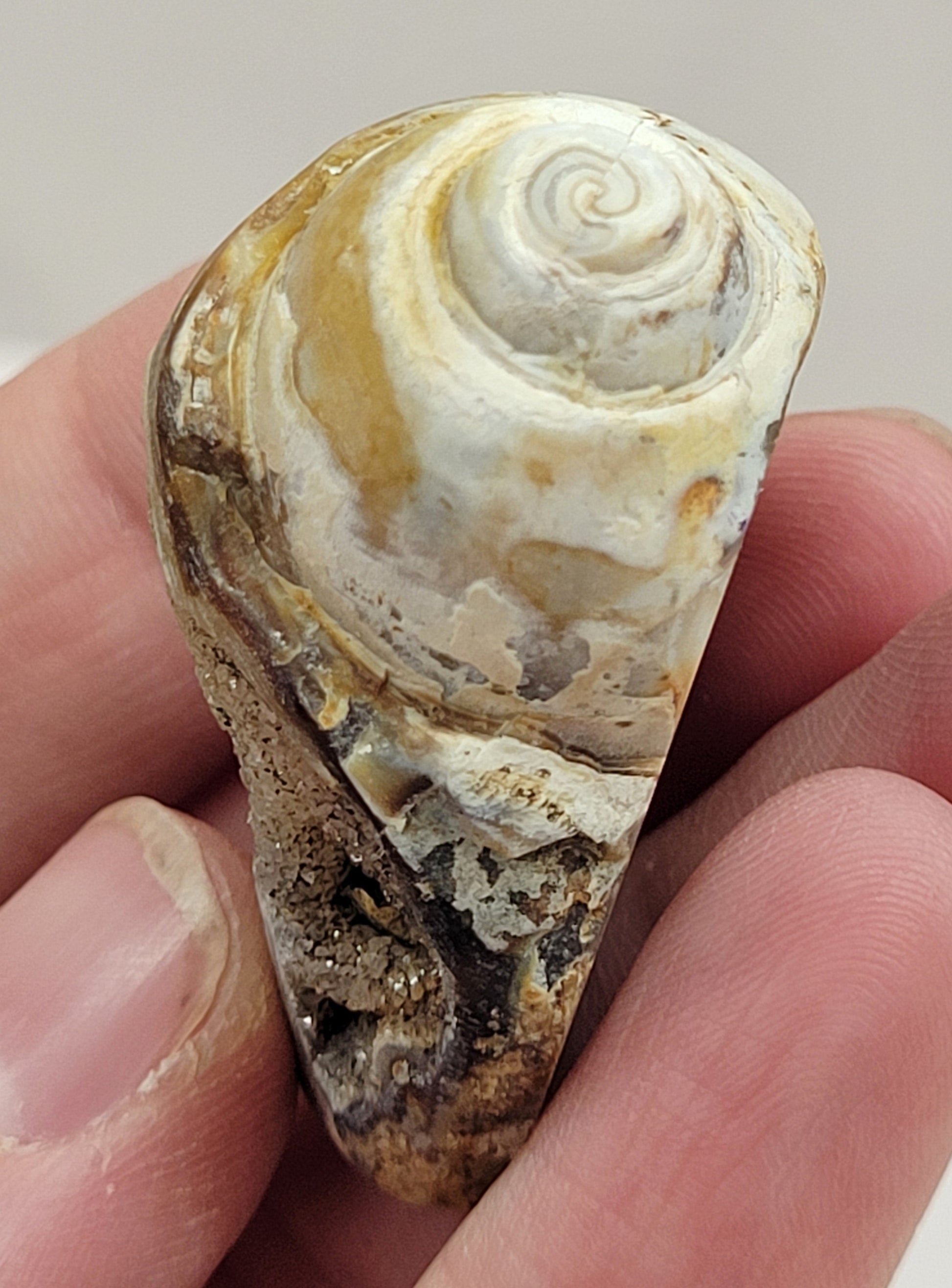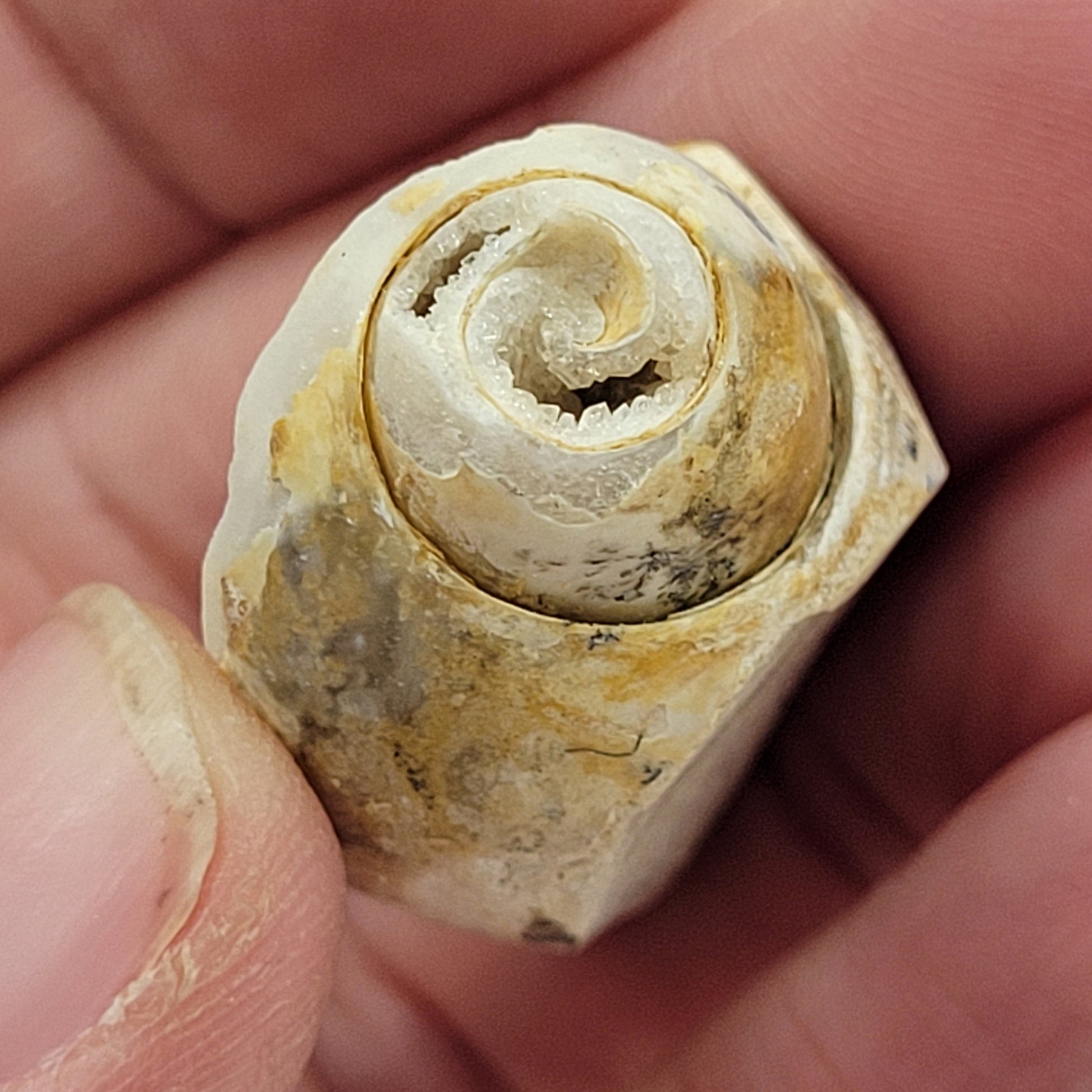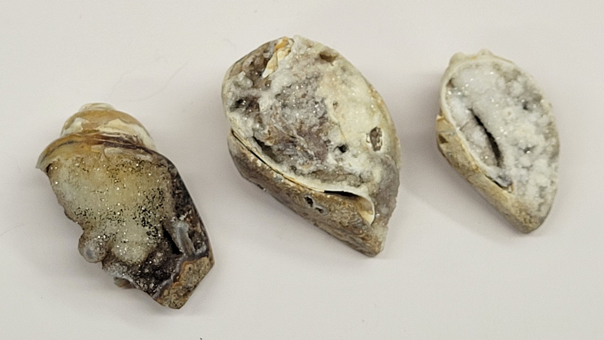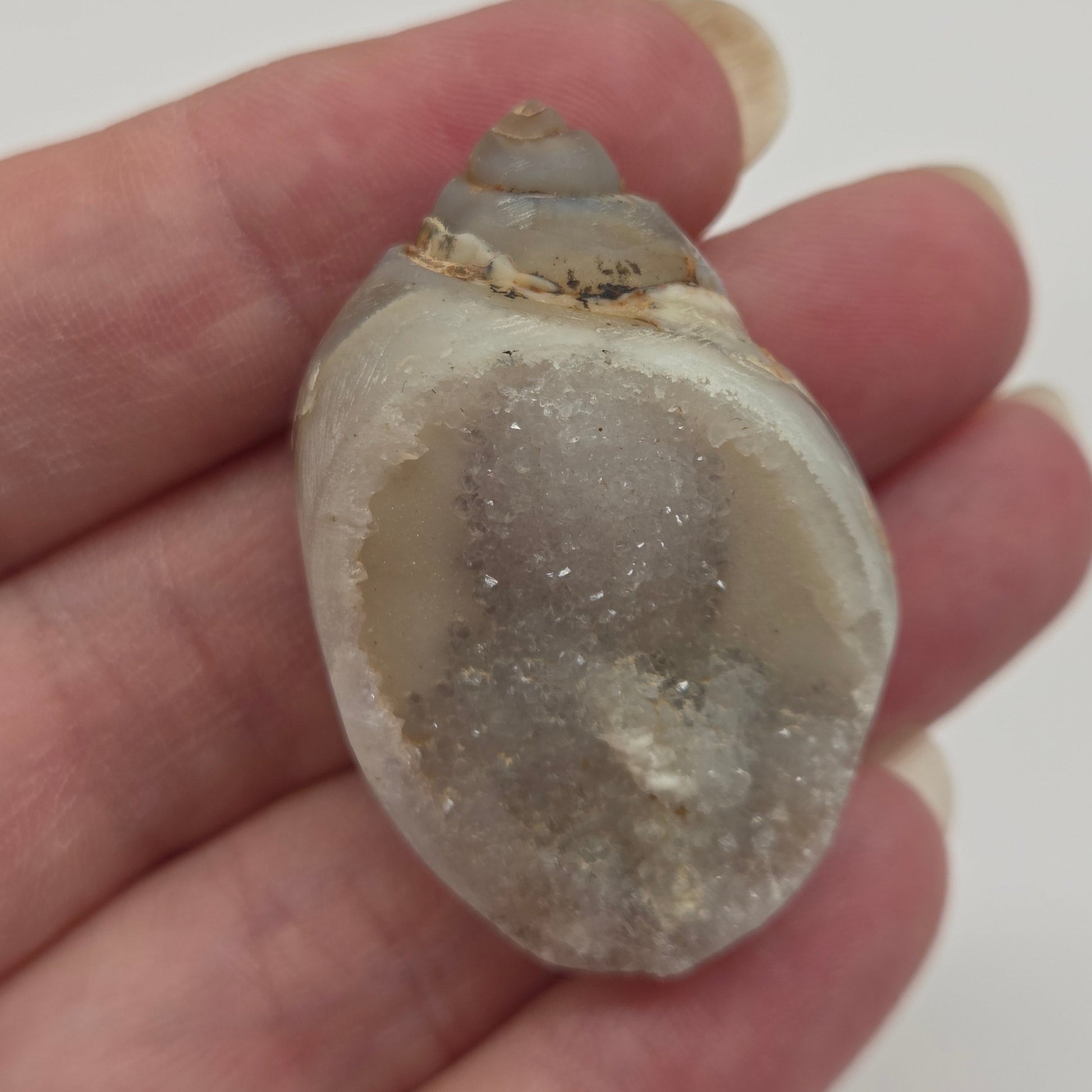These fascinating fossils are composed of chalcedony Quartz and are often internally encrusted with druzy quartz.