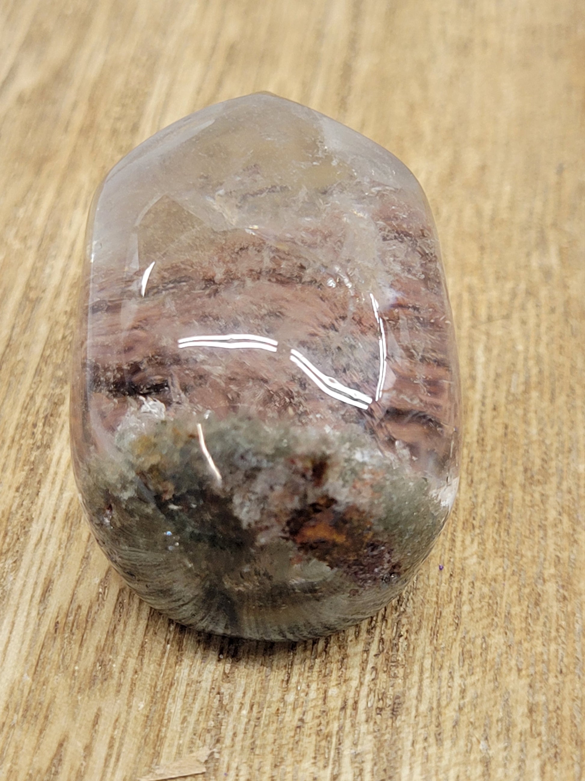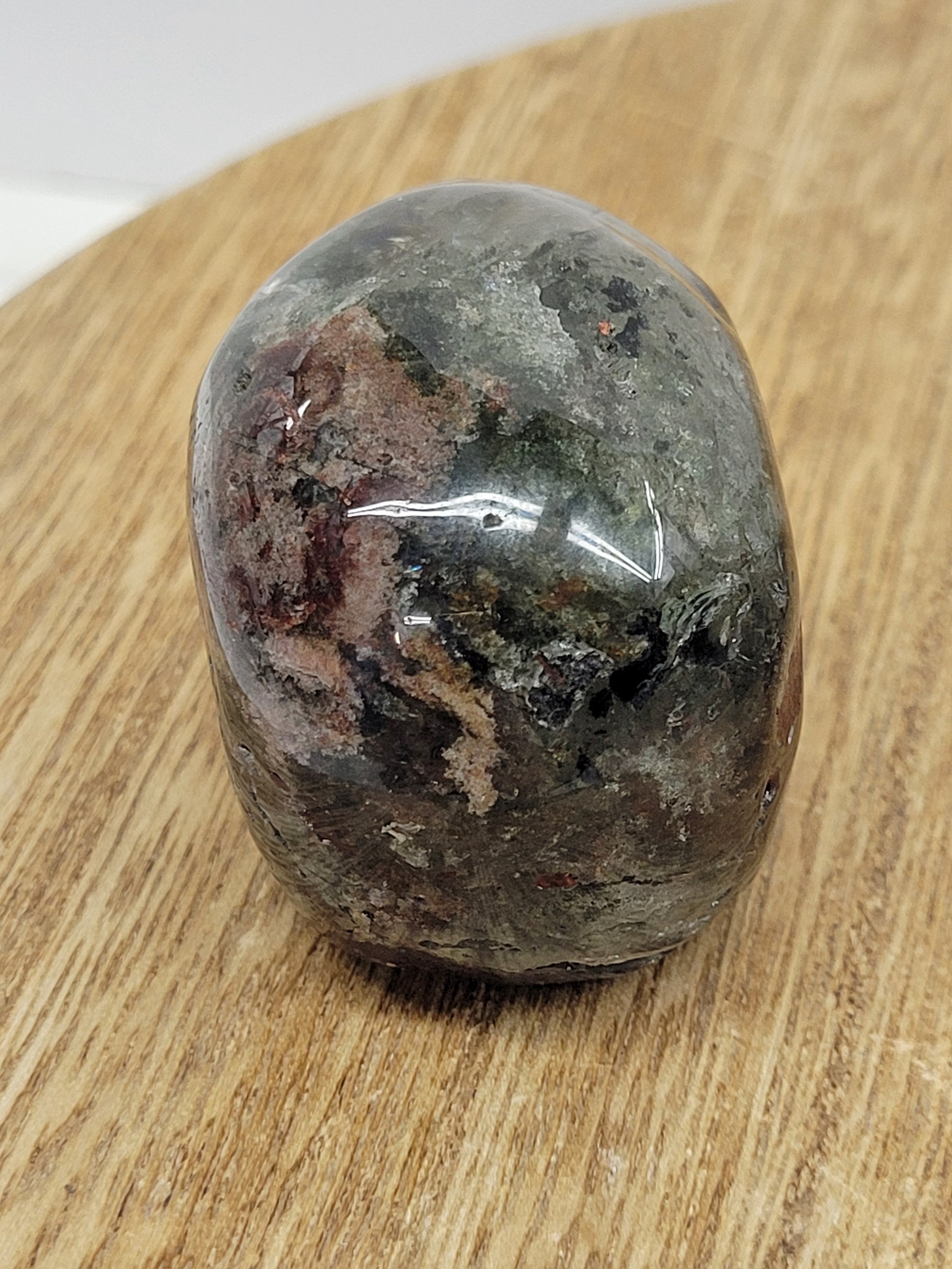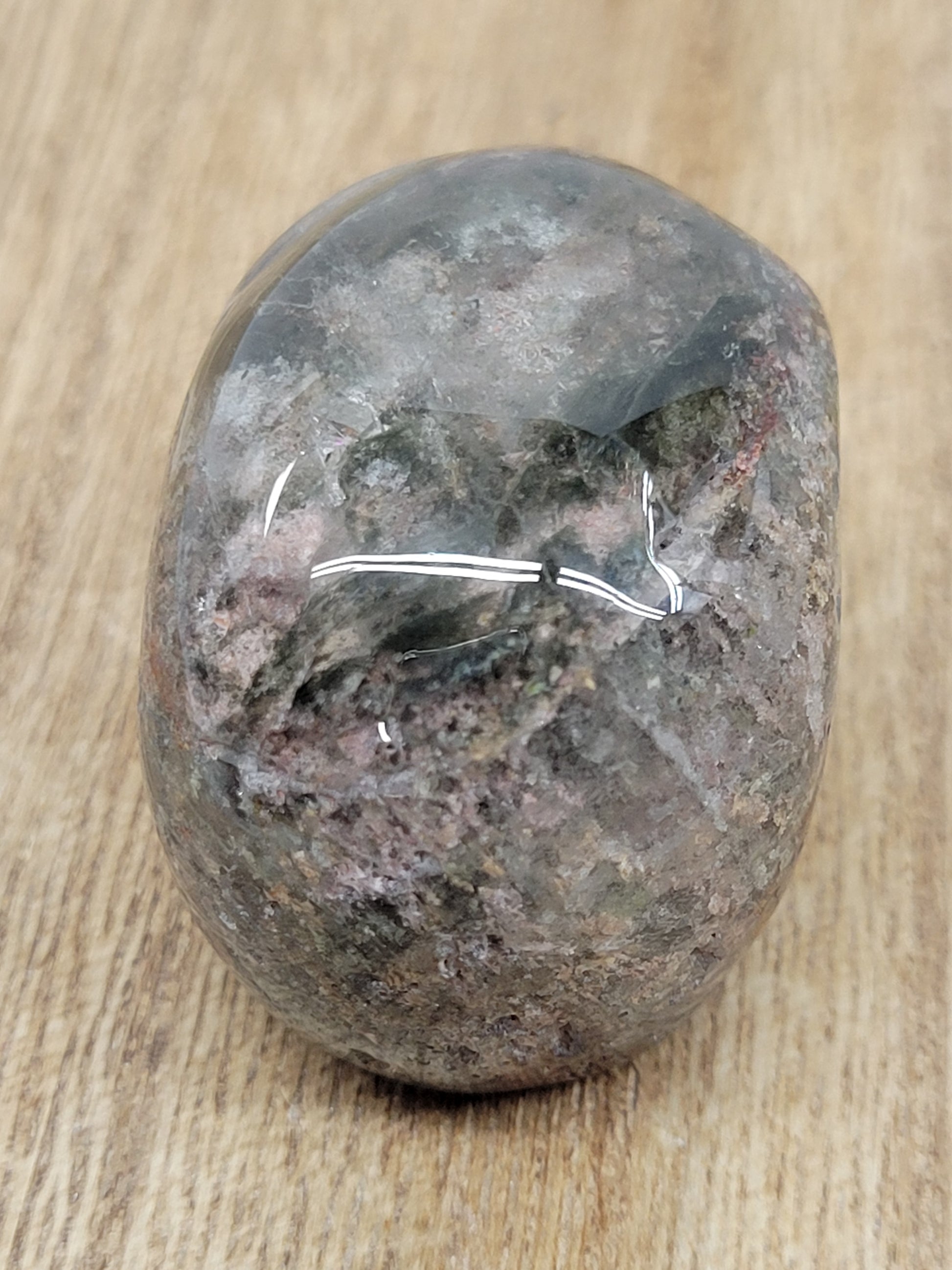 Garden Quartz, also known as Lodolite, is a variety of Quartz with inclusions of Chloride, Iron, and other trace minerals. The color can range to just about anything, depending on what trace minerals are inside and how transparent the Quartz crystal is. Its most commonly found in mossy green, pink, black, brown, or grey.