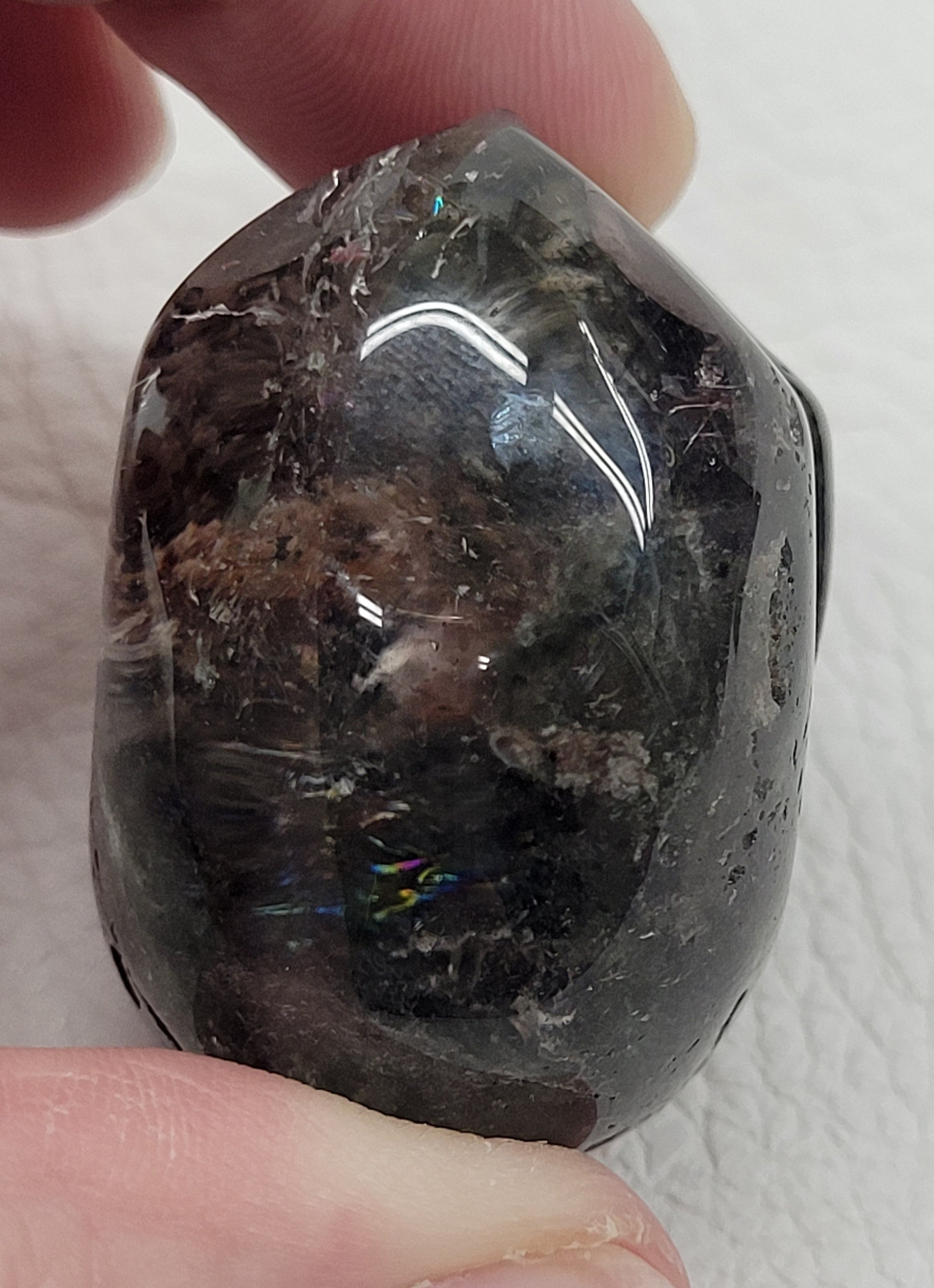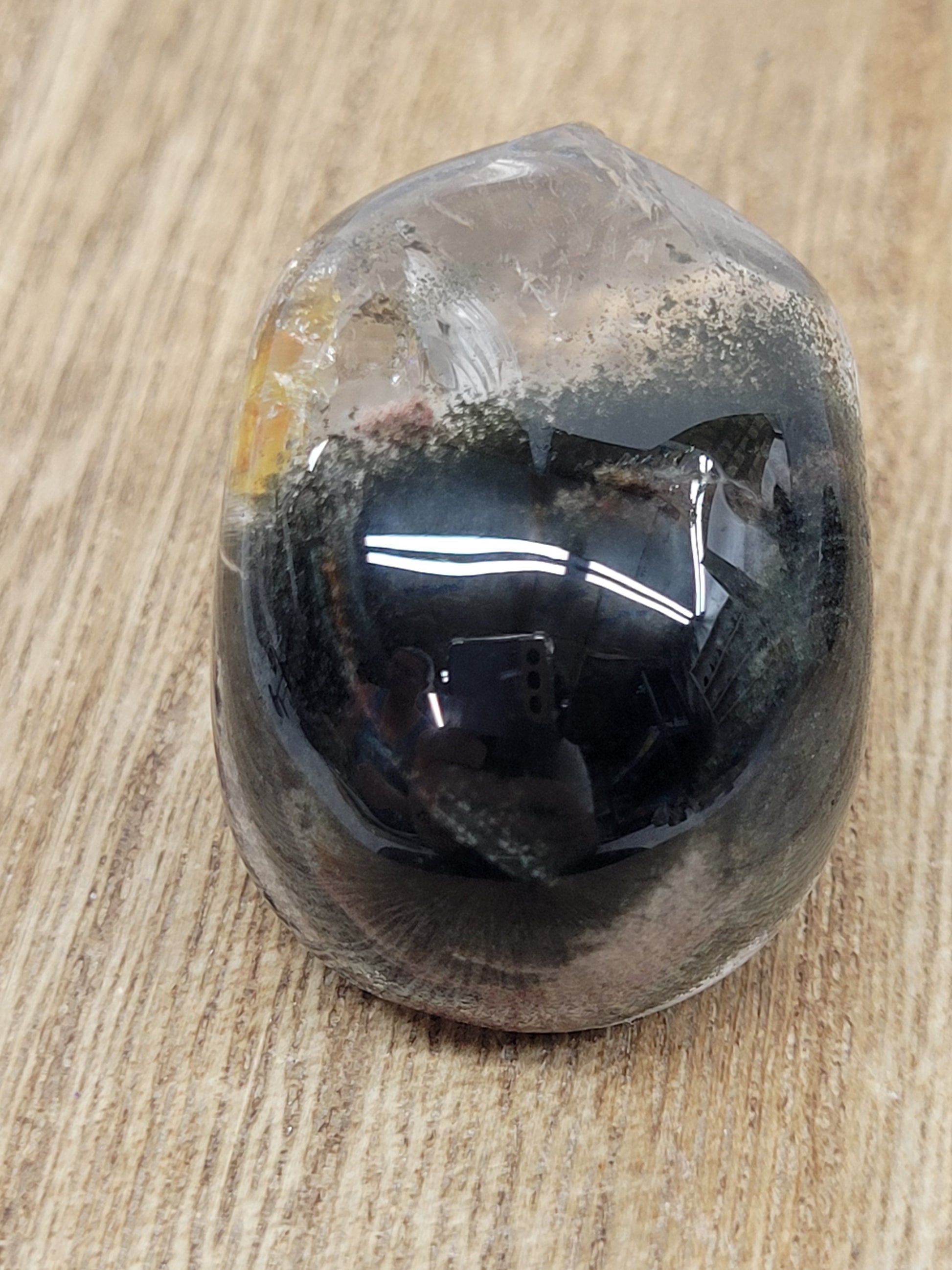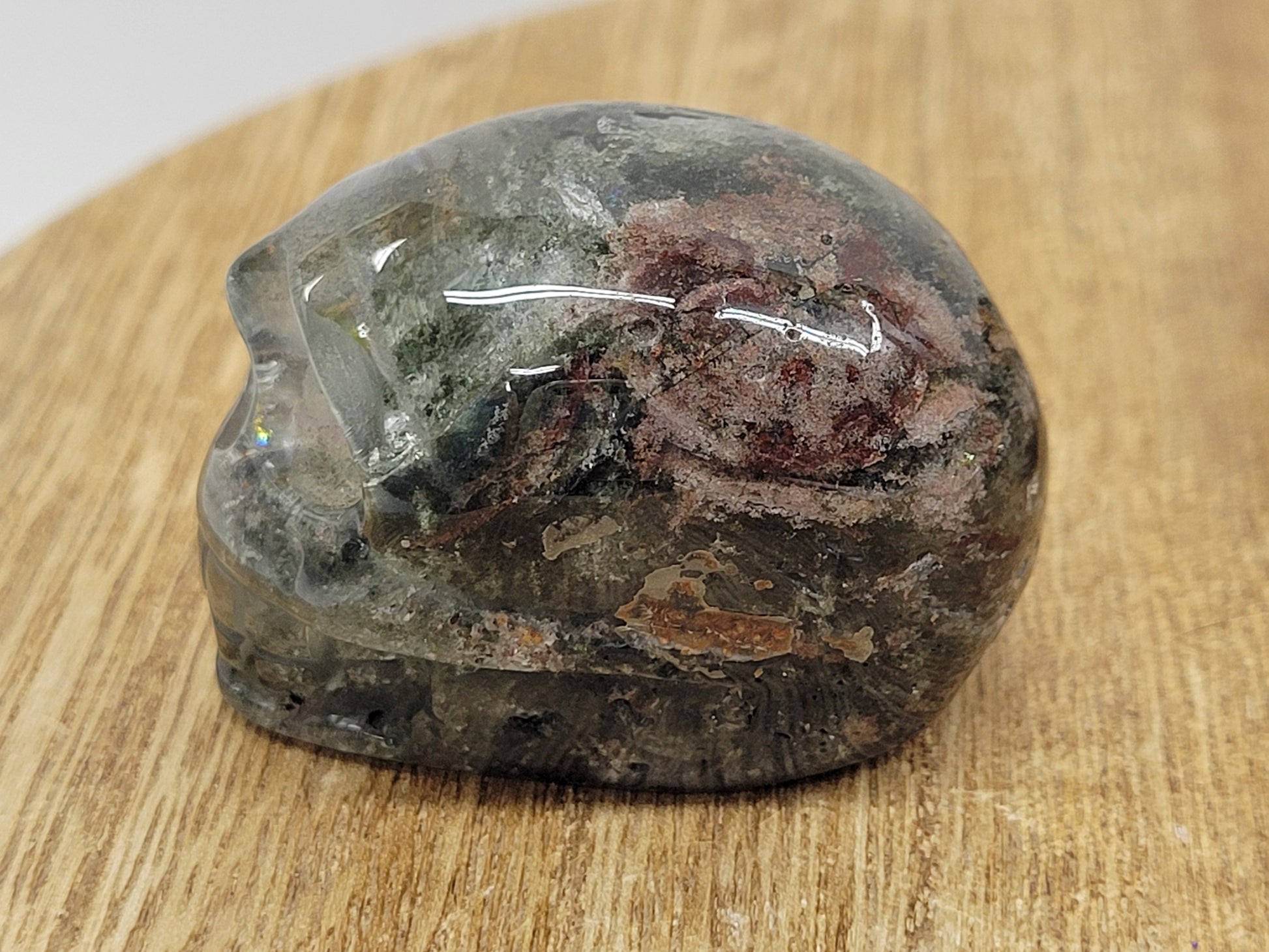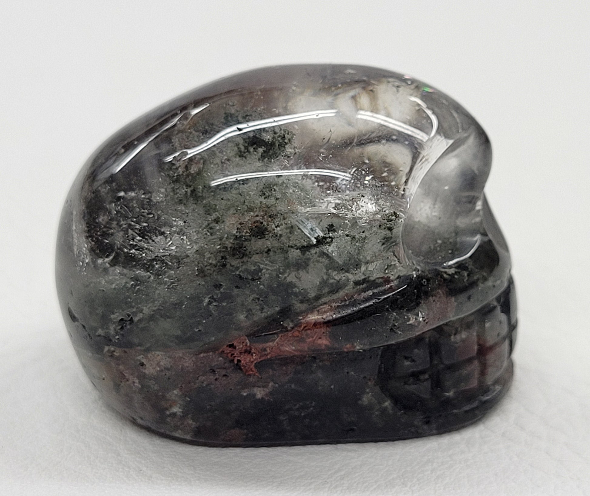 Garden Quartz, also known as Lodolite, is a variety of Quartz with inclusions of Chloride, Iron, and other trace minerals. The color can range to just about anything, depending on what trace minerals are inside and how transparent the Quartz crystal is. Its most commonly found in mossy green, pink, black, brown, or grey.
