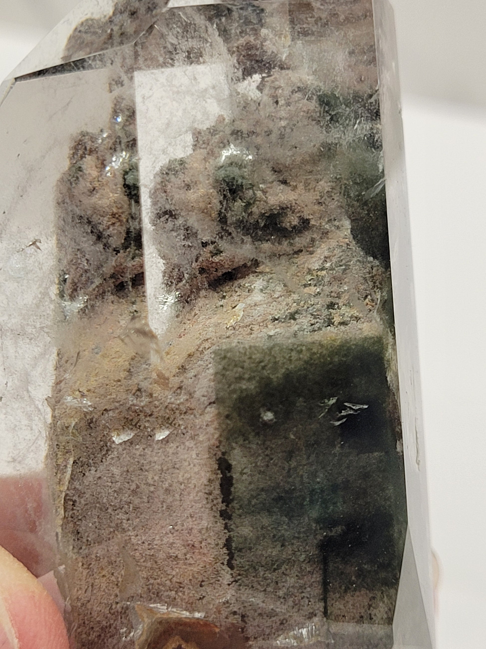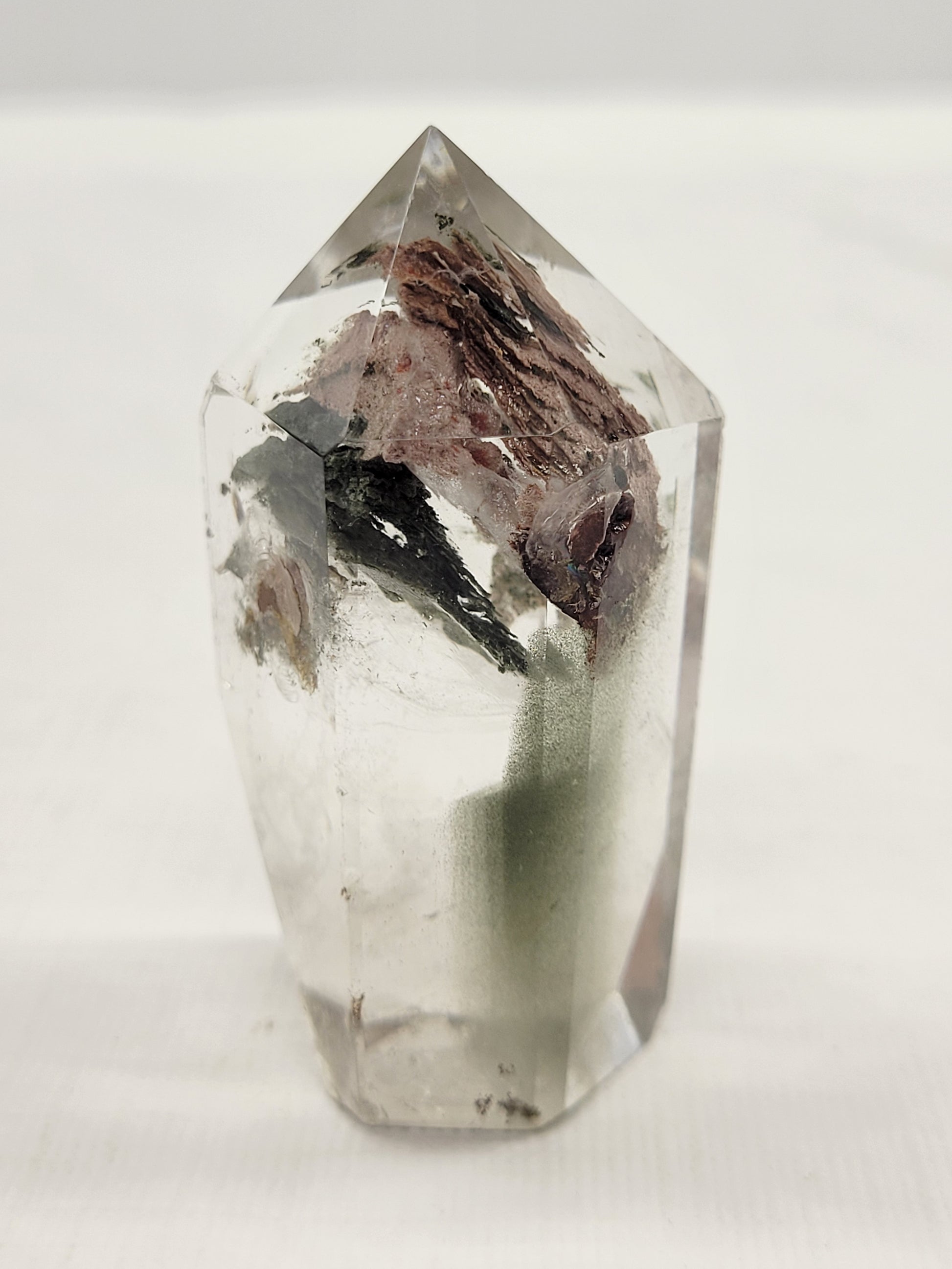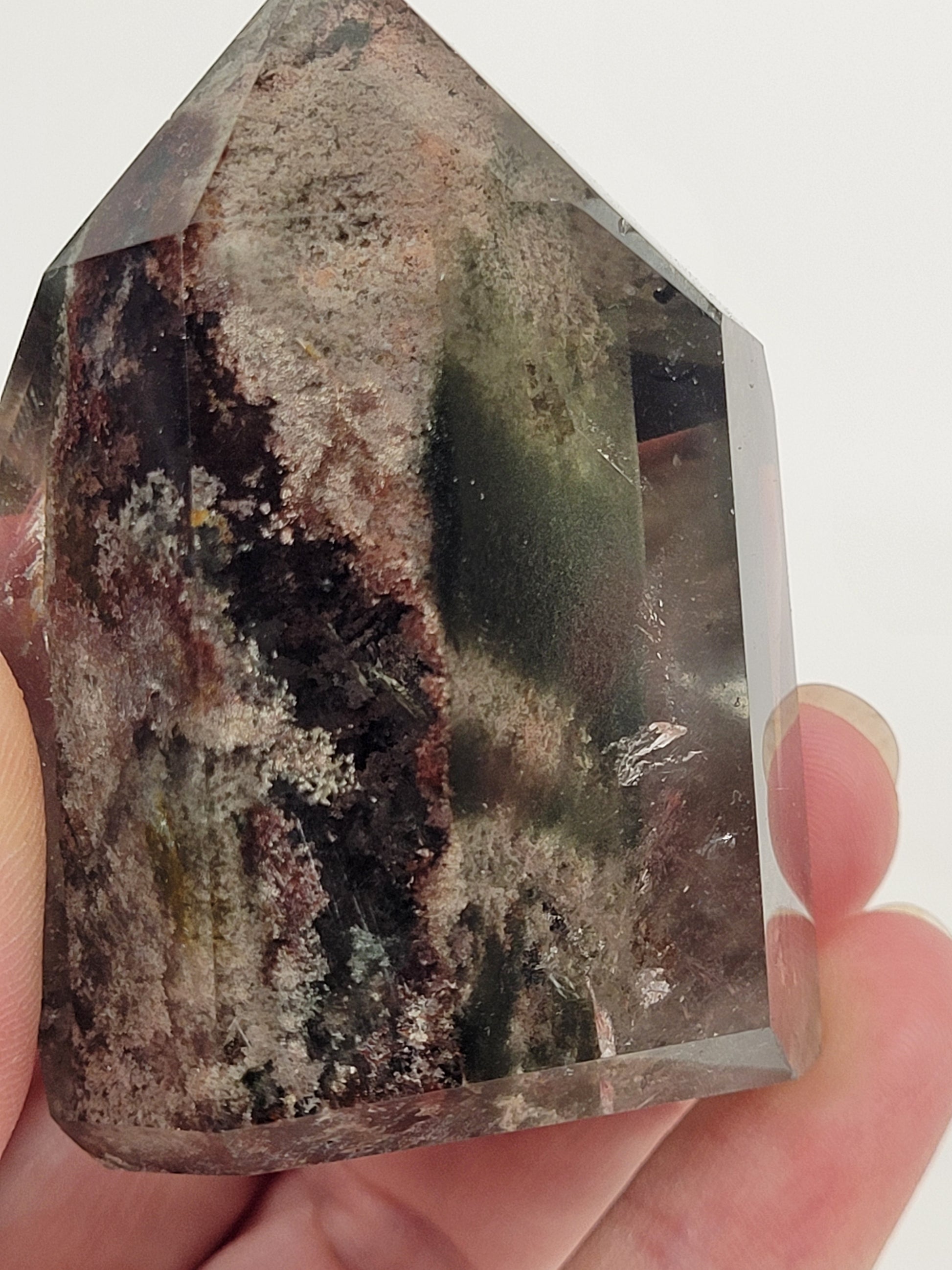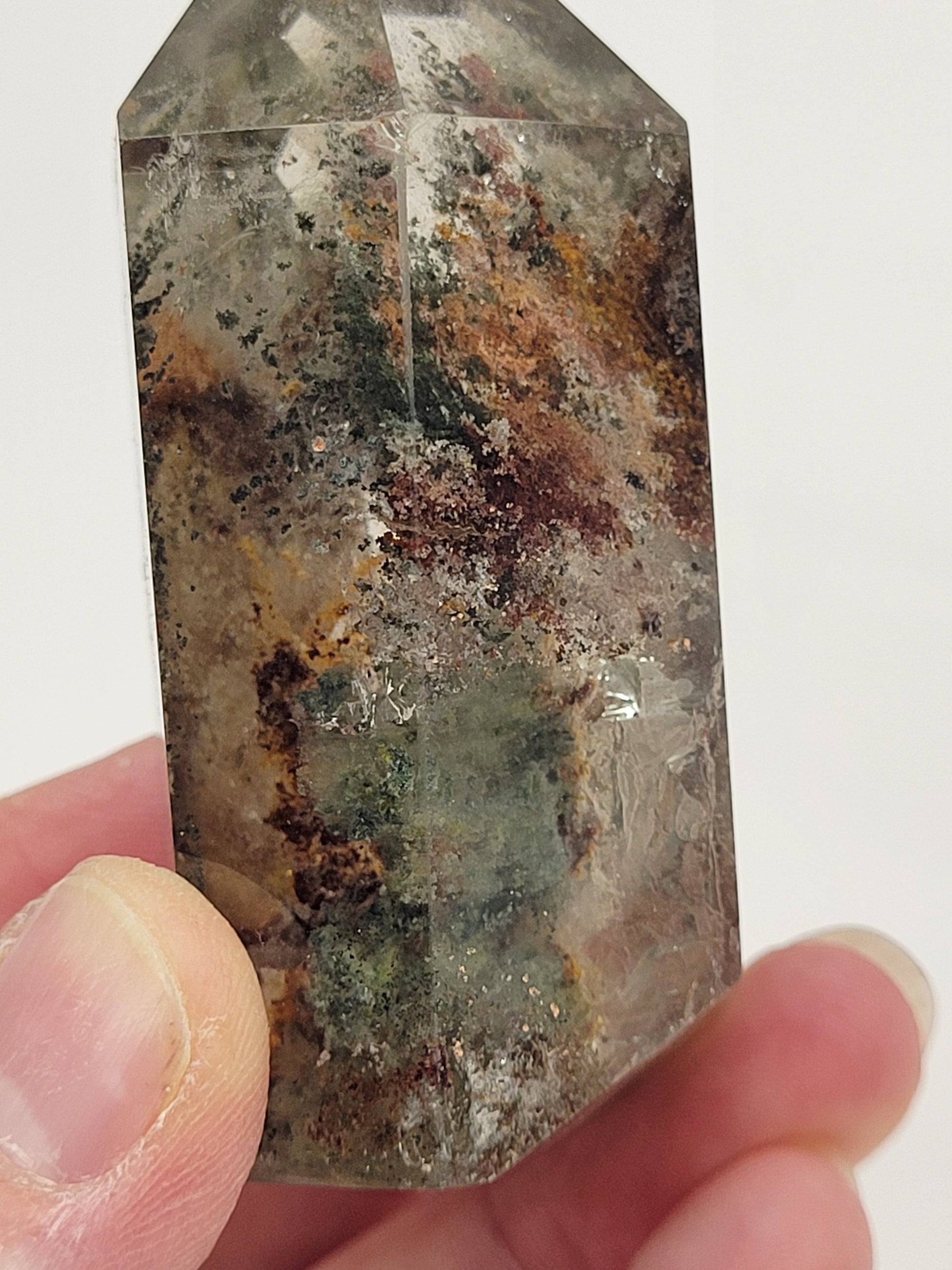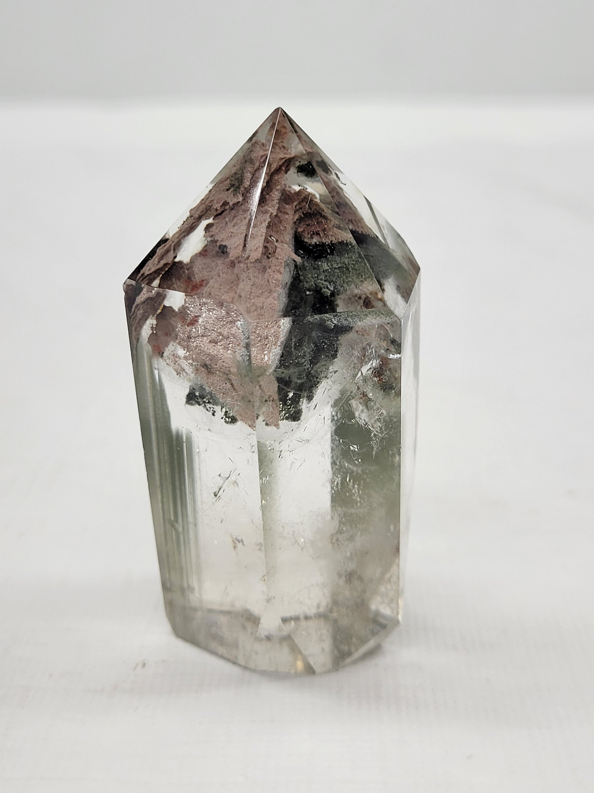 Garden Quartz and/or Thousand Layer Quartz, also known as Lodolite, is a variety of Quartz with inclusions of Chloride, Iron, and other trace minerals. The color can range to just about anything, depending on what trace minerals are inside and how transparent the Quartz crystal is. Its most commonly found in mossy green, pink, black, brown, or grey.