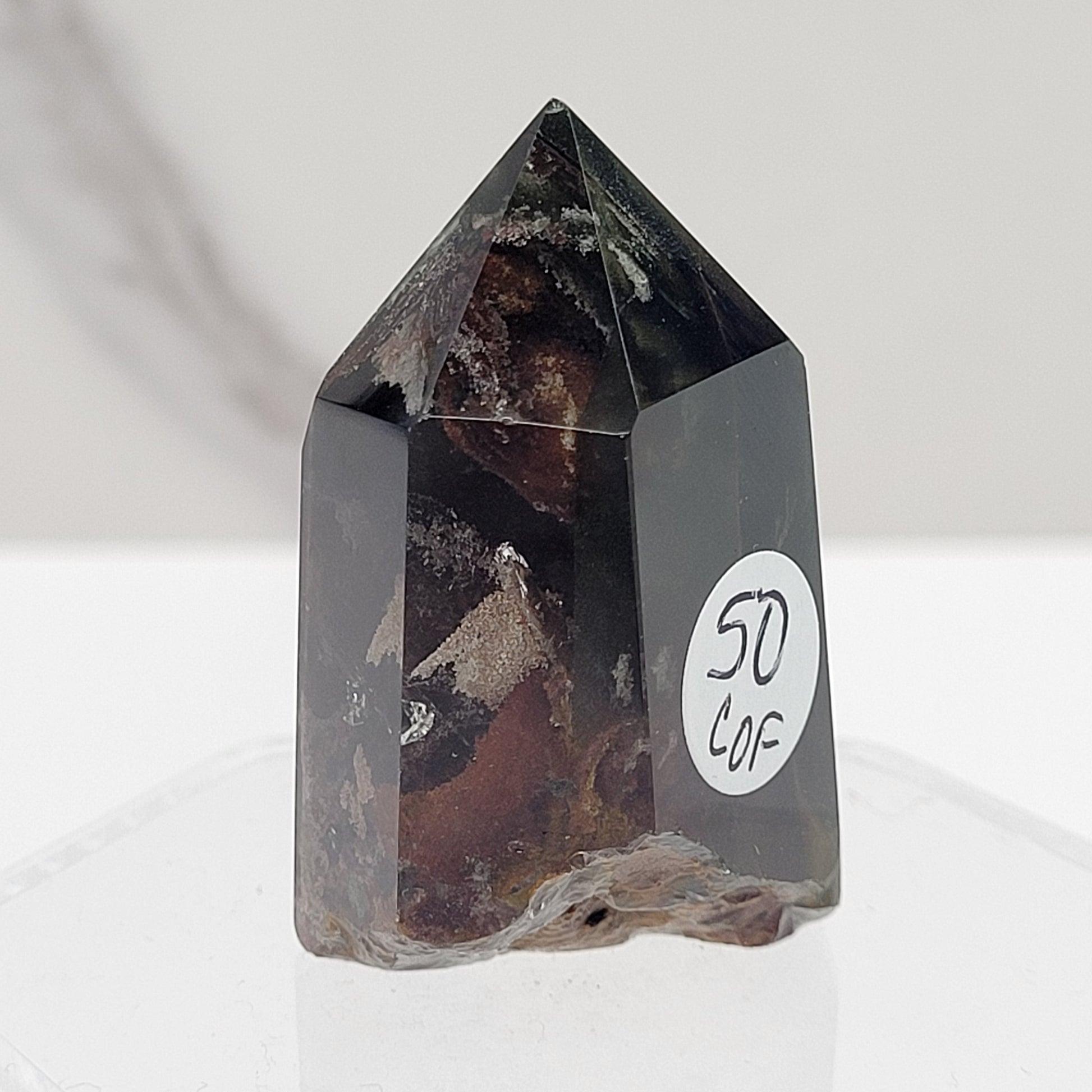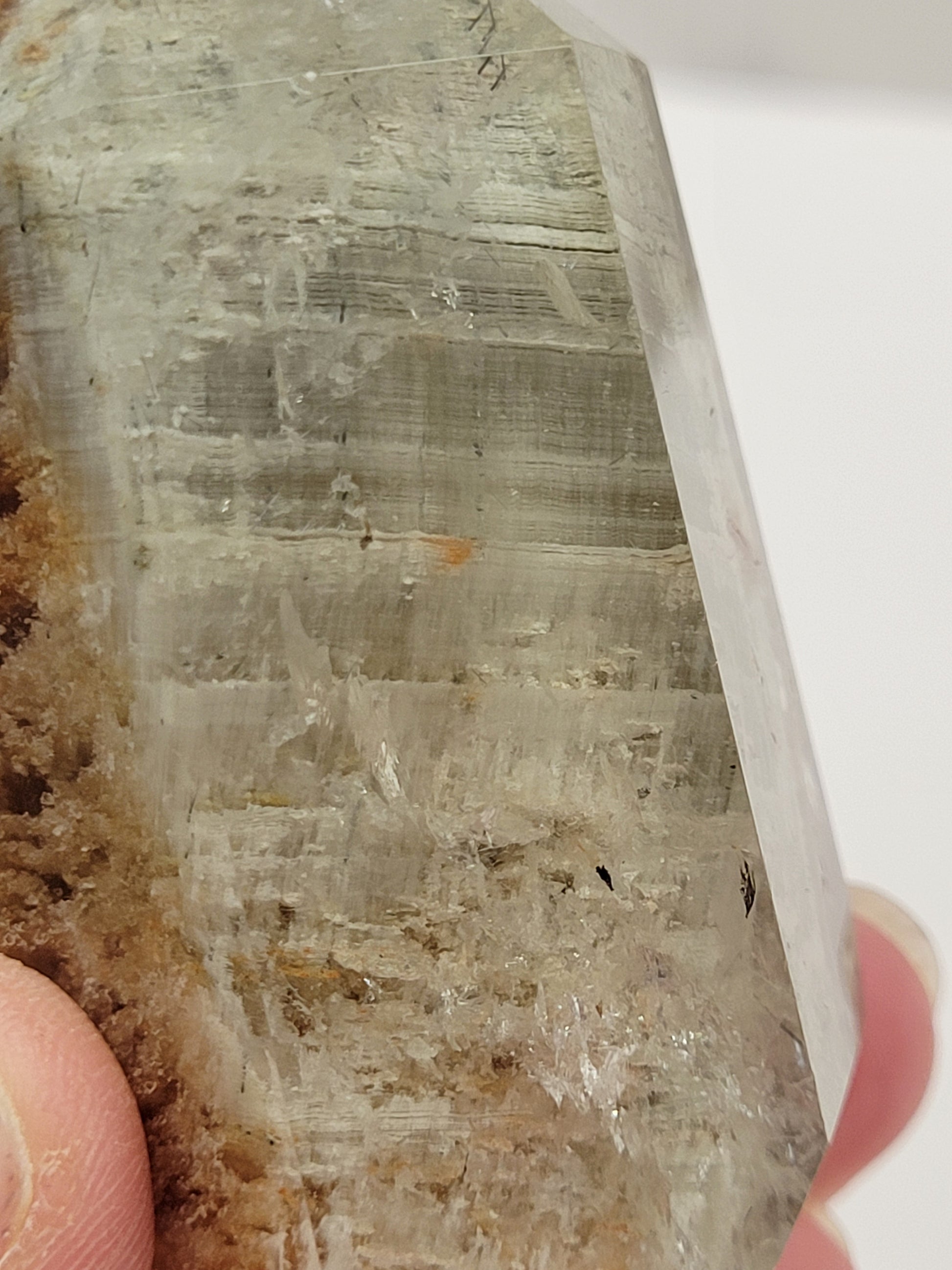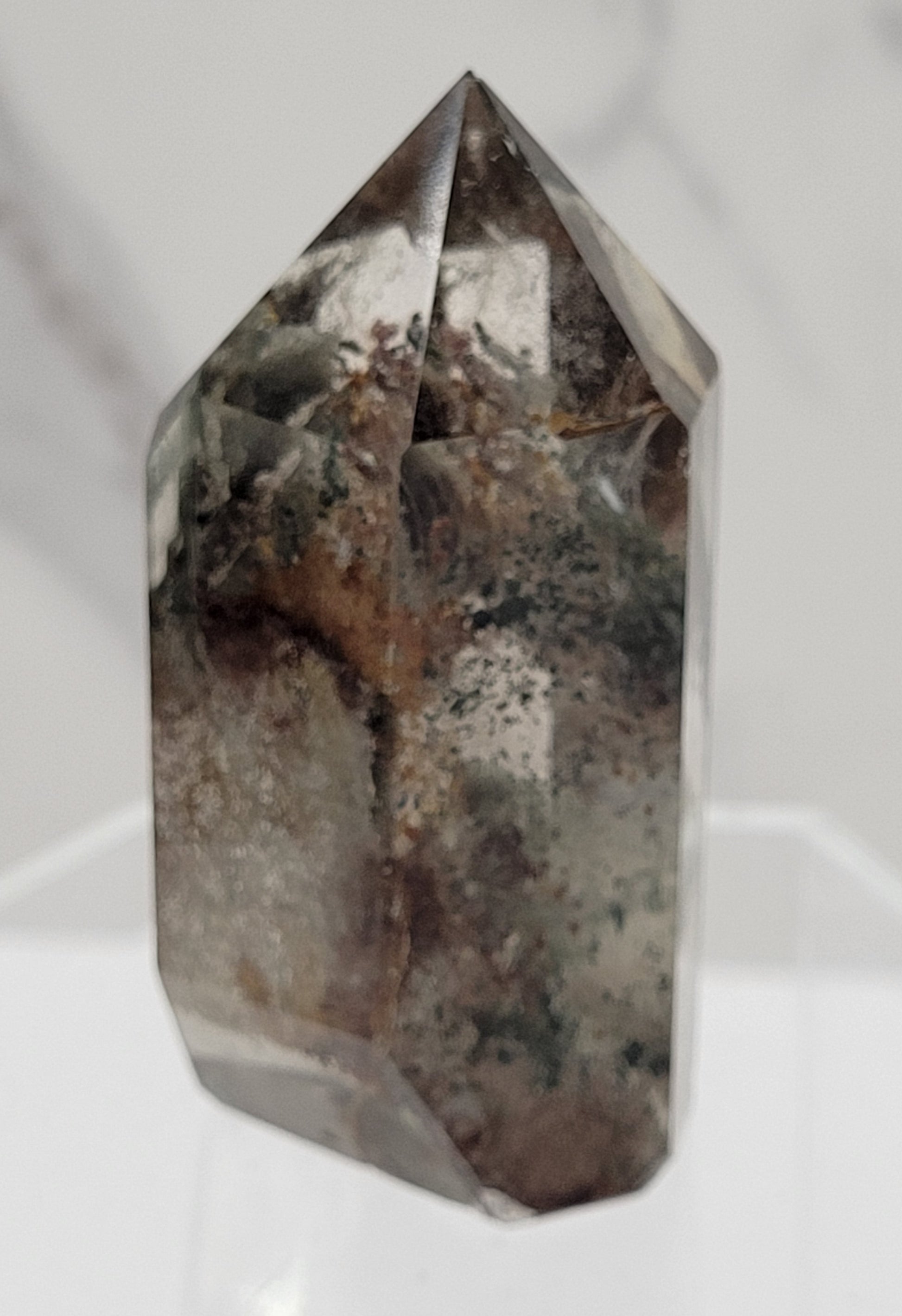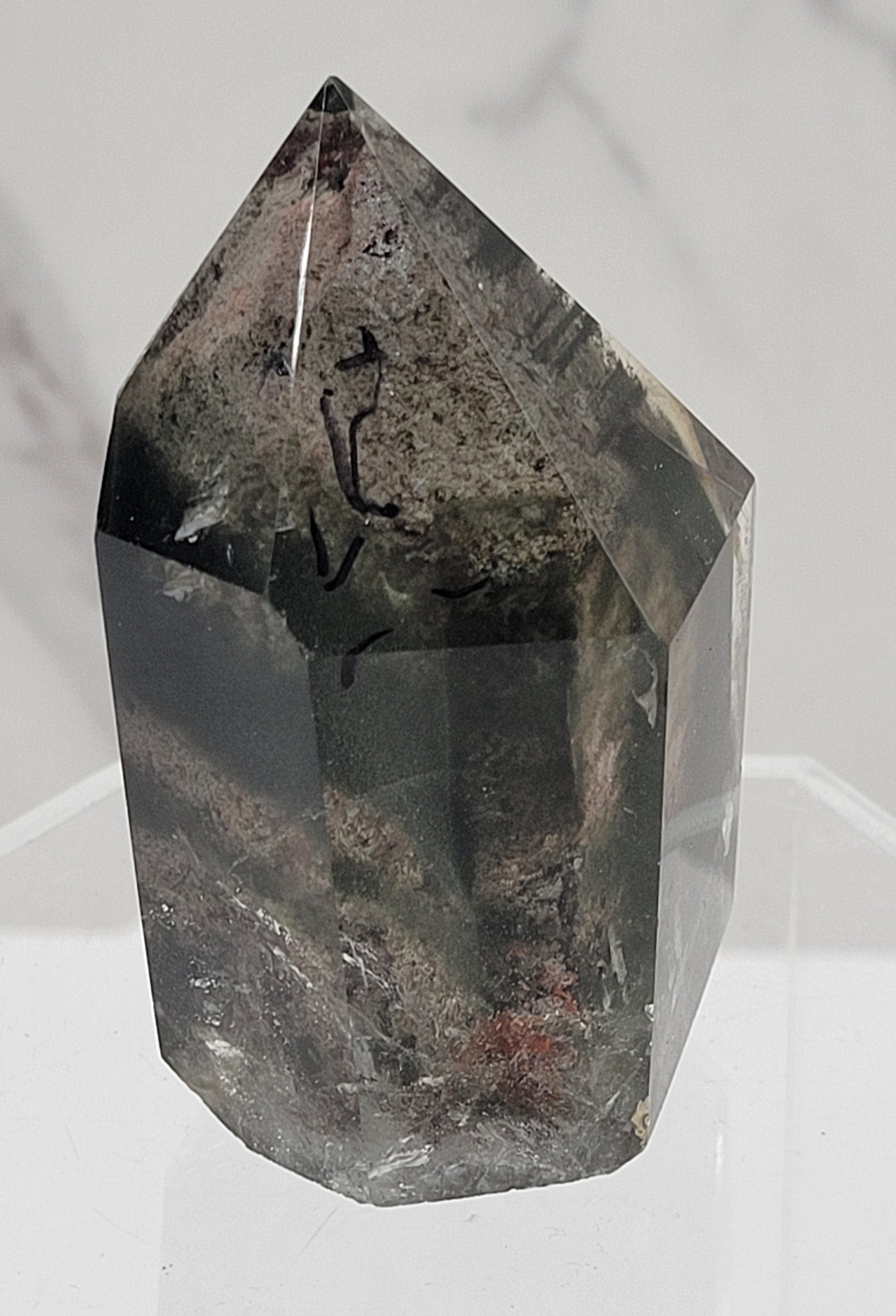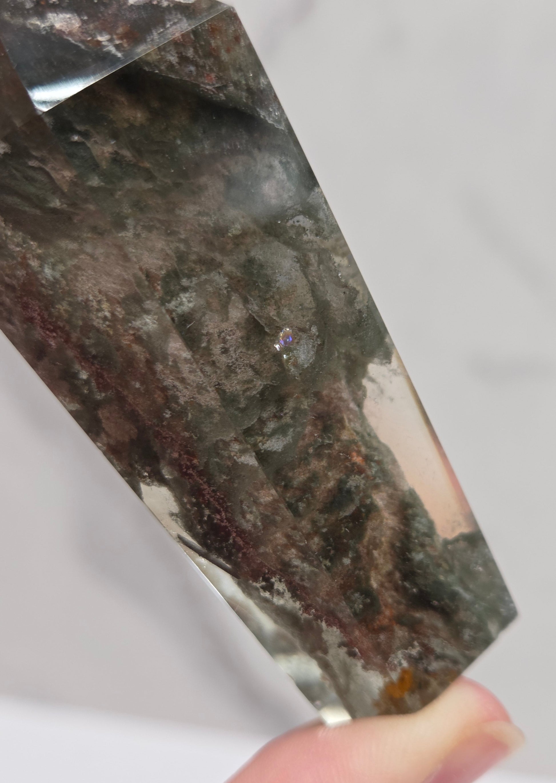 Garden Quartz and/or Thousand Layer Quartz, also known as Lodolite, is a variety of Quartz with inclusions of Chloride, Iron, and other trace minerals. The color can range to just about anything, depending on what trace minerals are inside and how transparent the Quartz crystal is. Its most commonly found in mossy green, pink, black, brown, or grey.