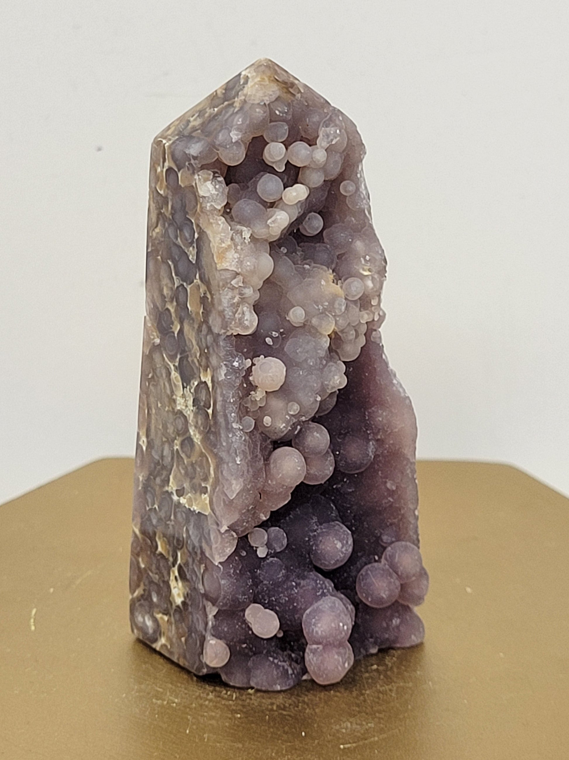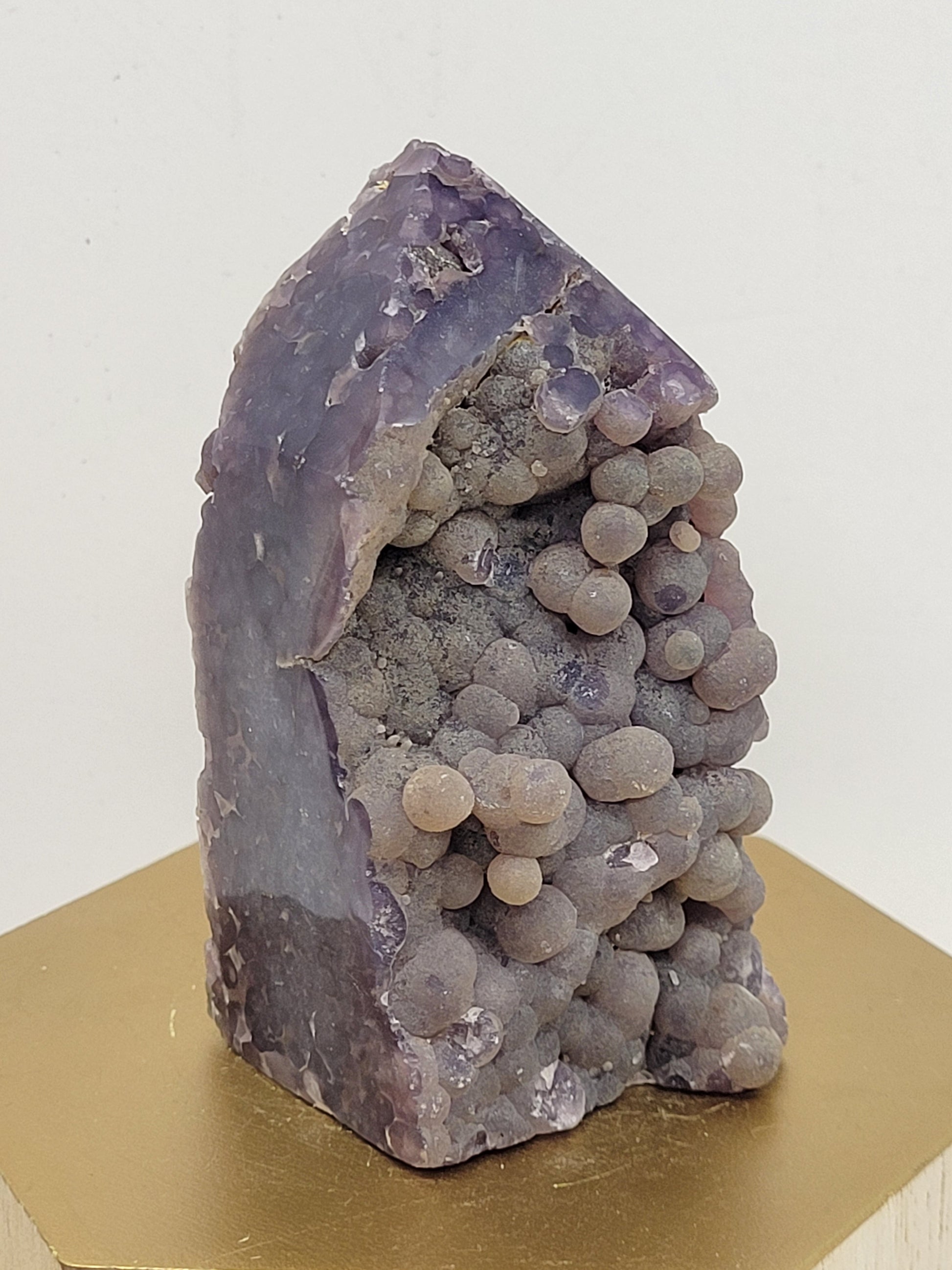 Grape amethyst - oftentimes referred to as "grape agate" is a form of purple aggregated tiny quartz crystals with a spherical (botryoidal) growth pattern. The name reflects their purple color and how they occur in clusters that resemble bunches of grapes. This material is found in the Mamuju area, near the western coast of Sulawesi, an island of Indonesia.