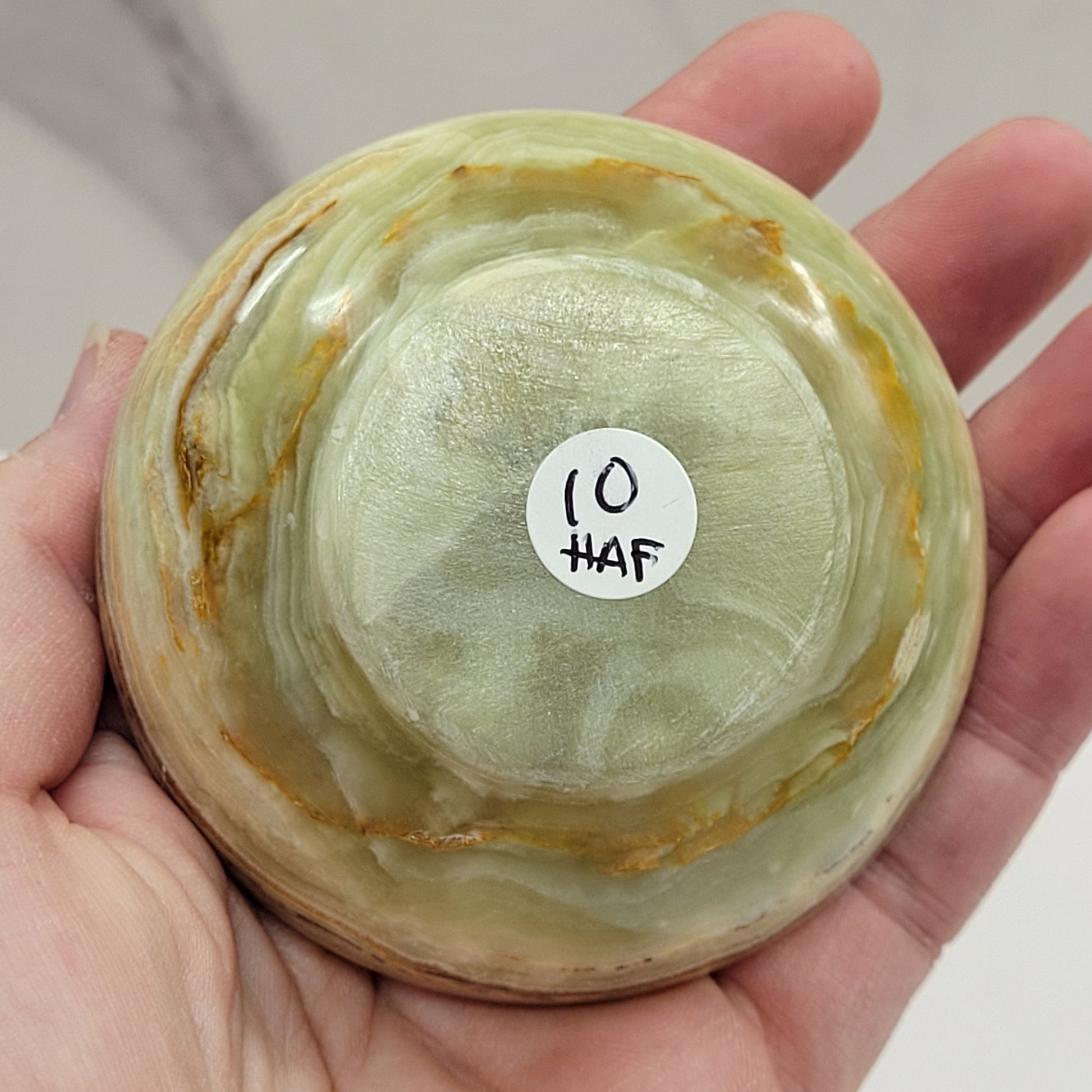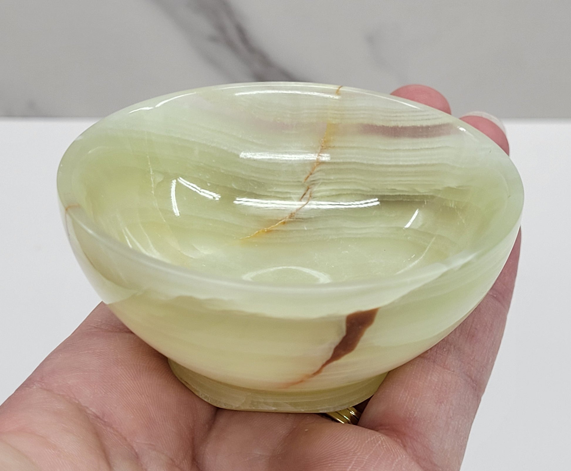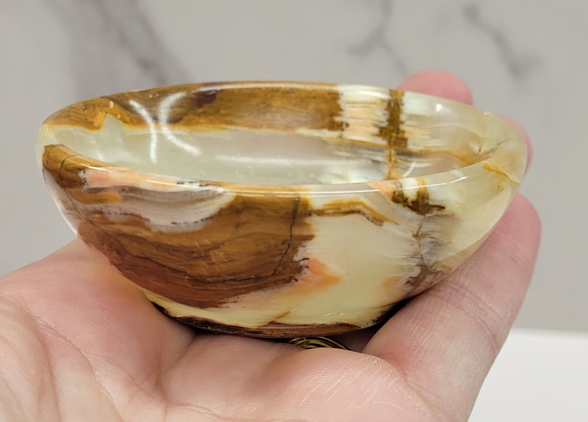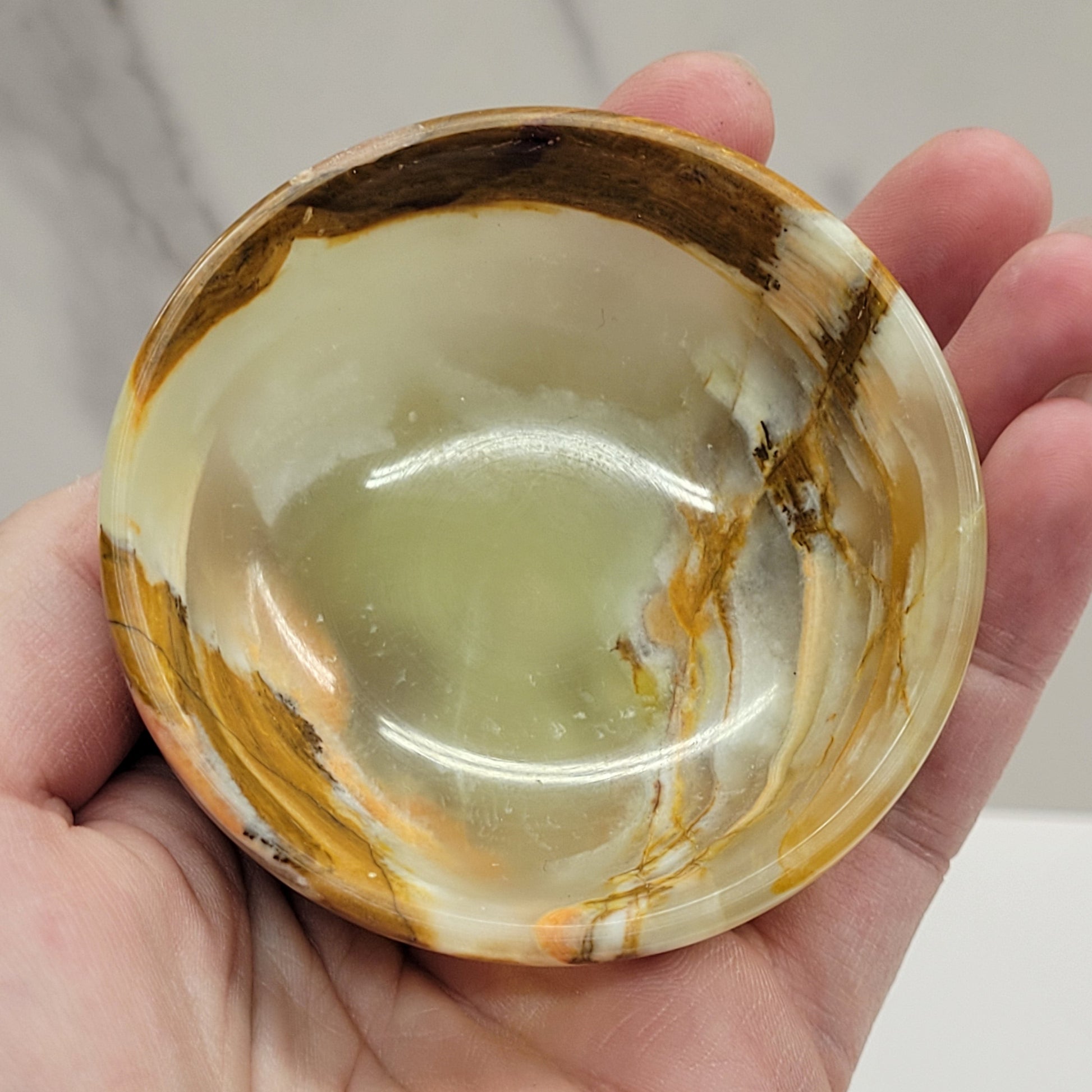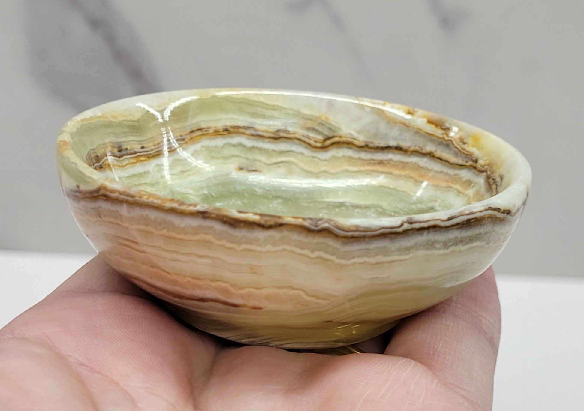 Commonly known by the trade names Afghanistan Green Onyx or Afghanistan Jade Onyx, this beautiful green-and-brown banded stone is not technically onyx but is actually travertine, a variety of aragonite.