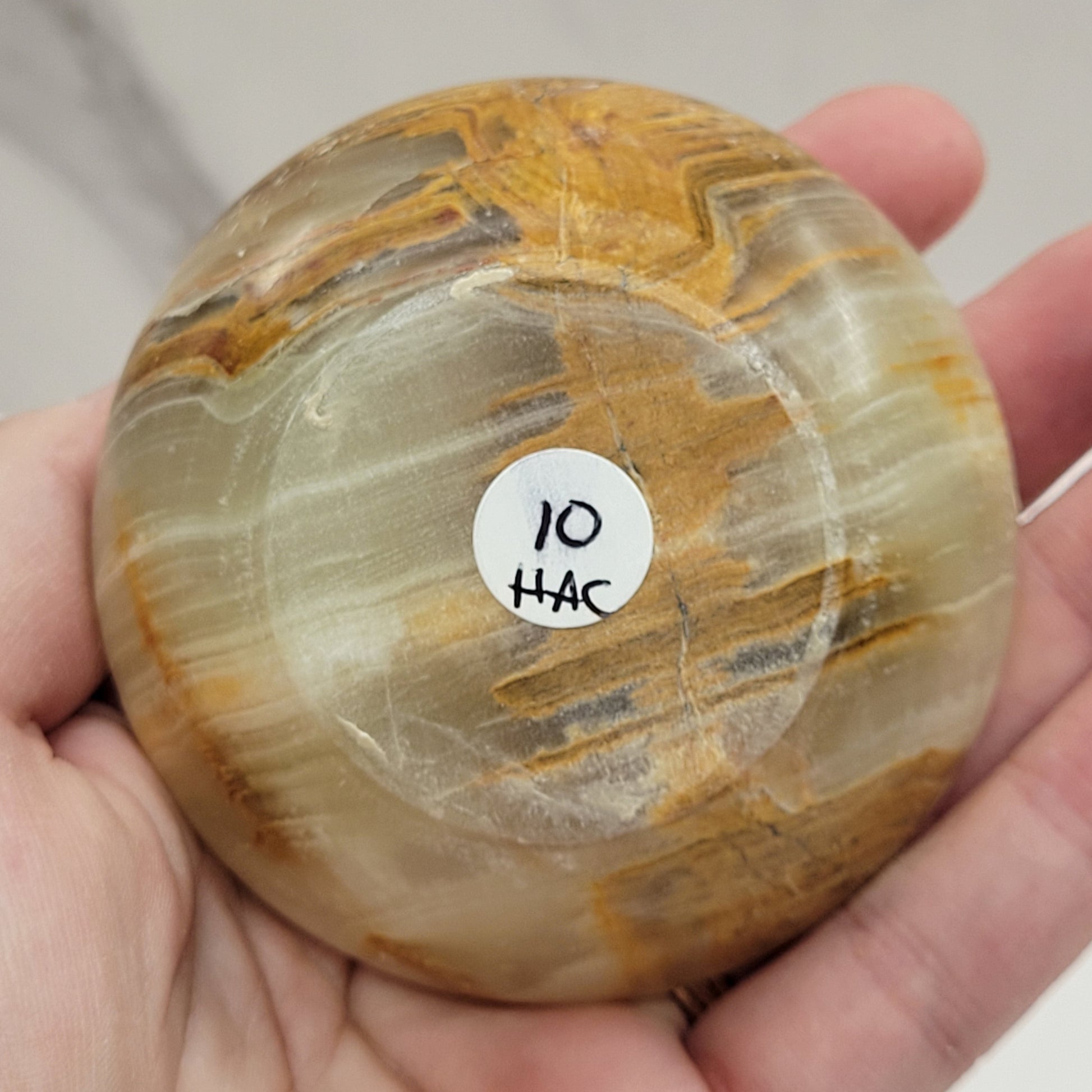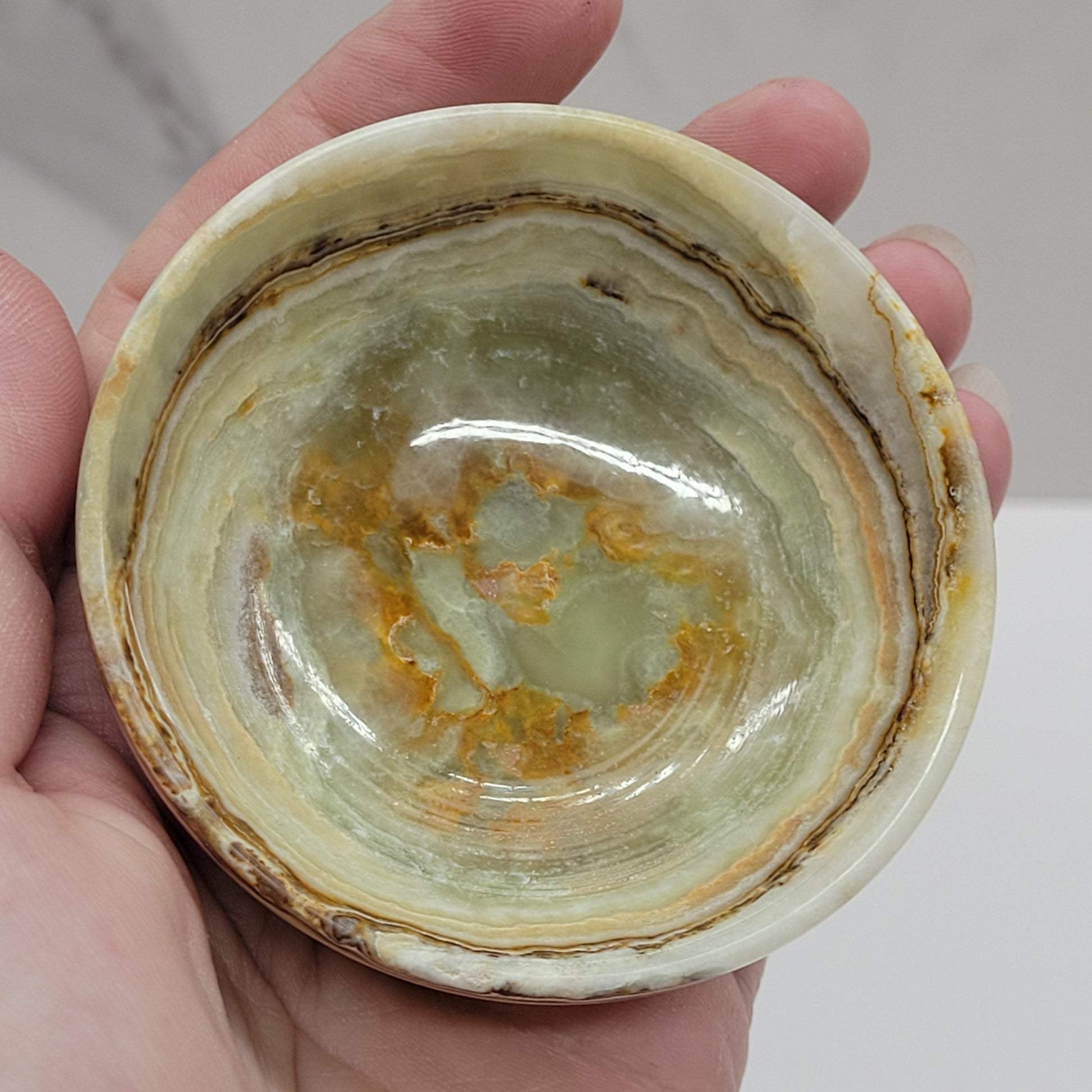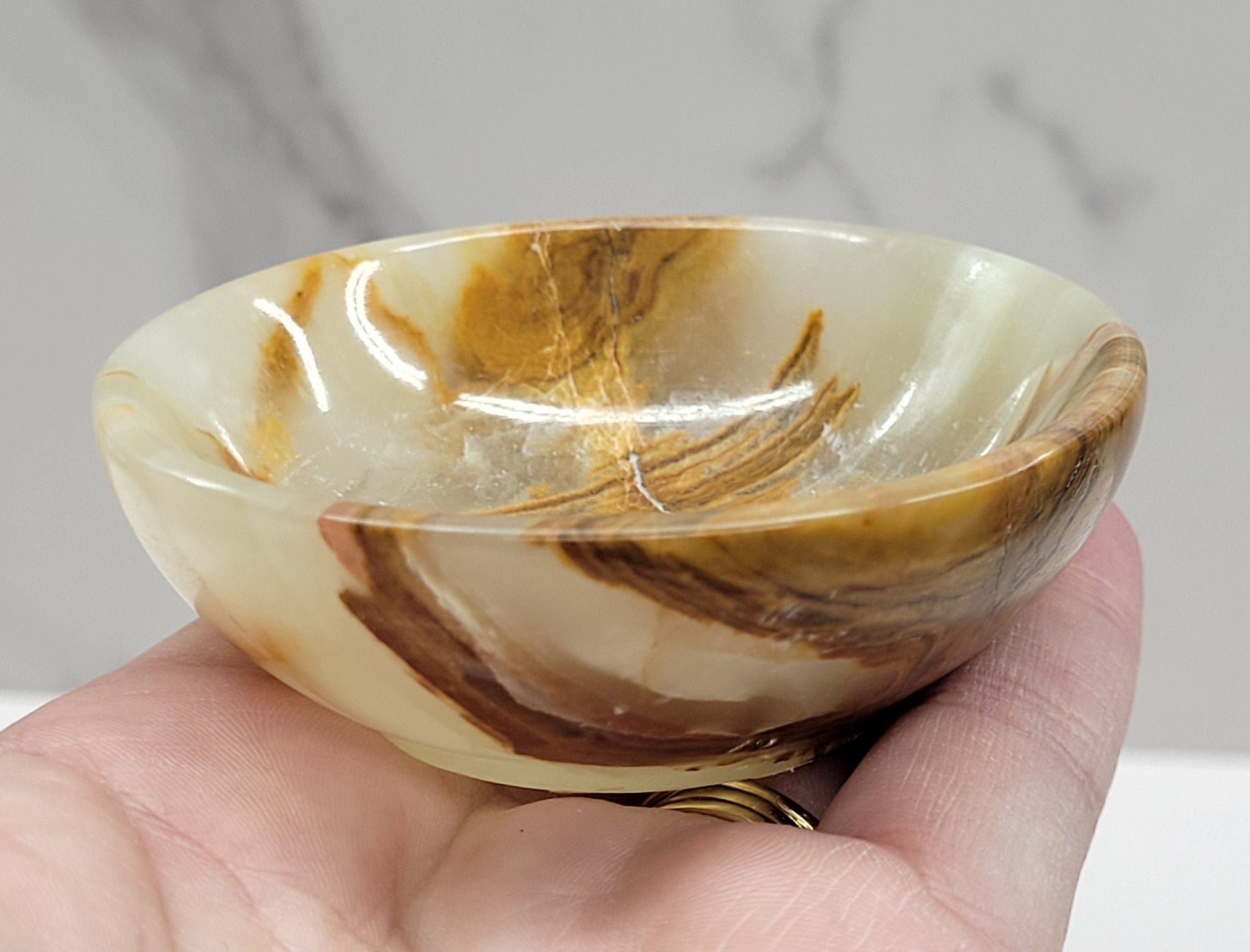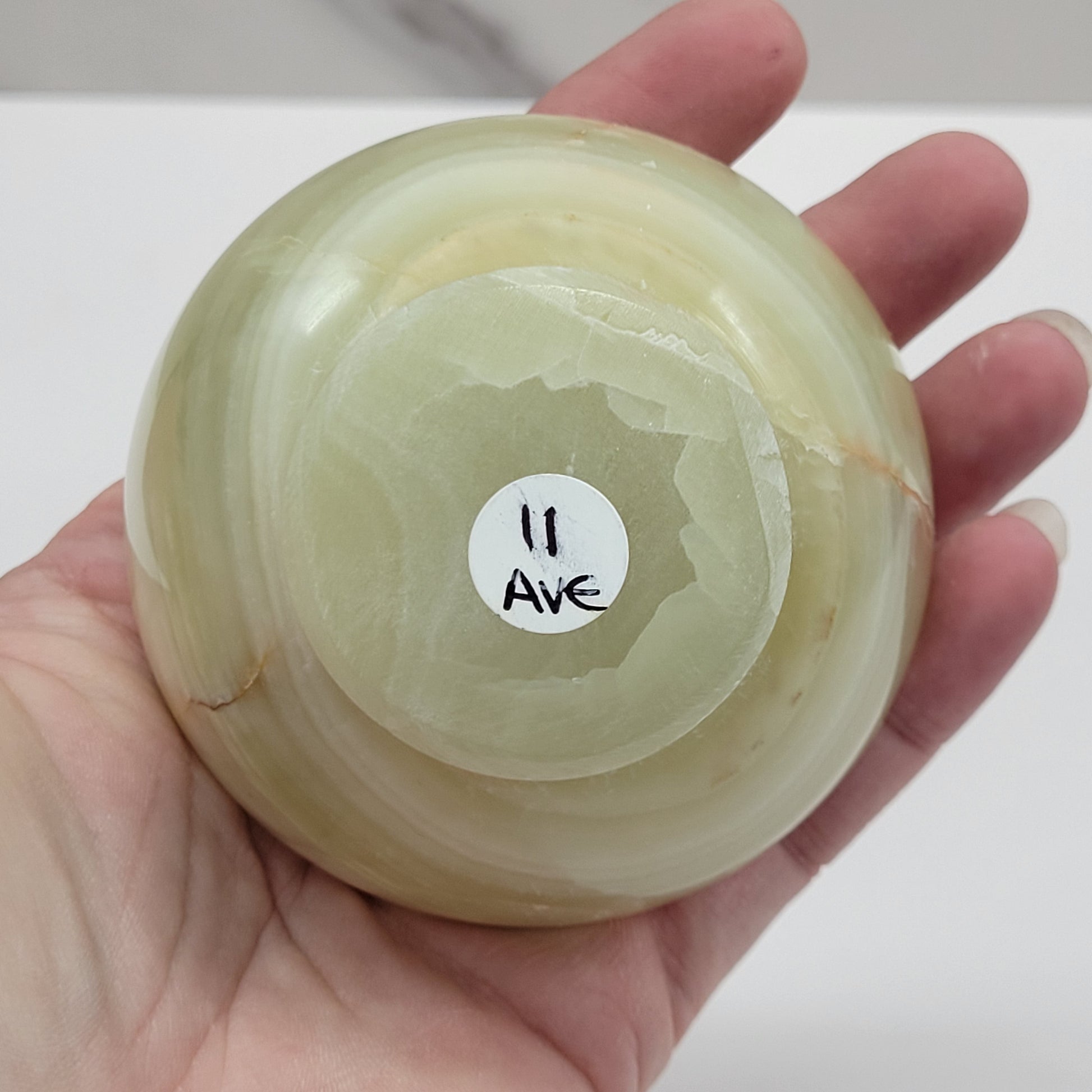 Commonly known by the trade names Afghanistan Green Onyx or Afghanistan Jade Onyx, this beautiful green-and-brown banded stone is not technically onyx but is actually travertine, a variety of aragonite.