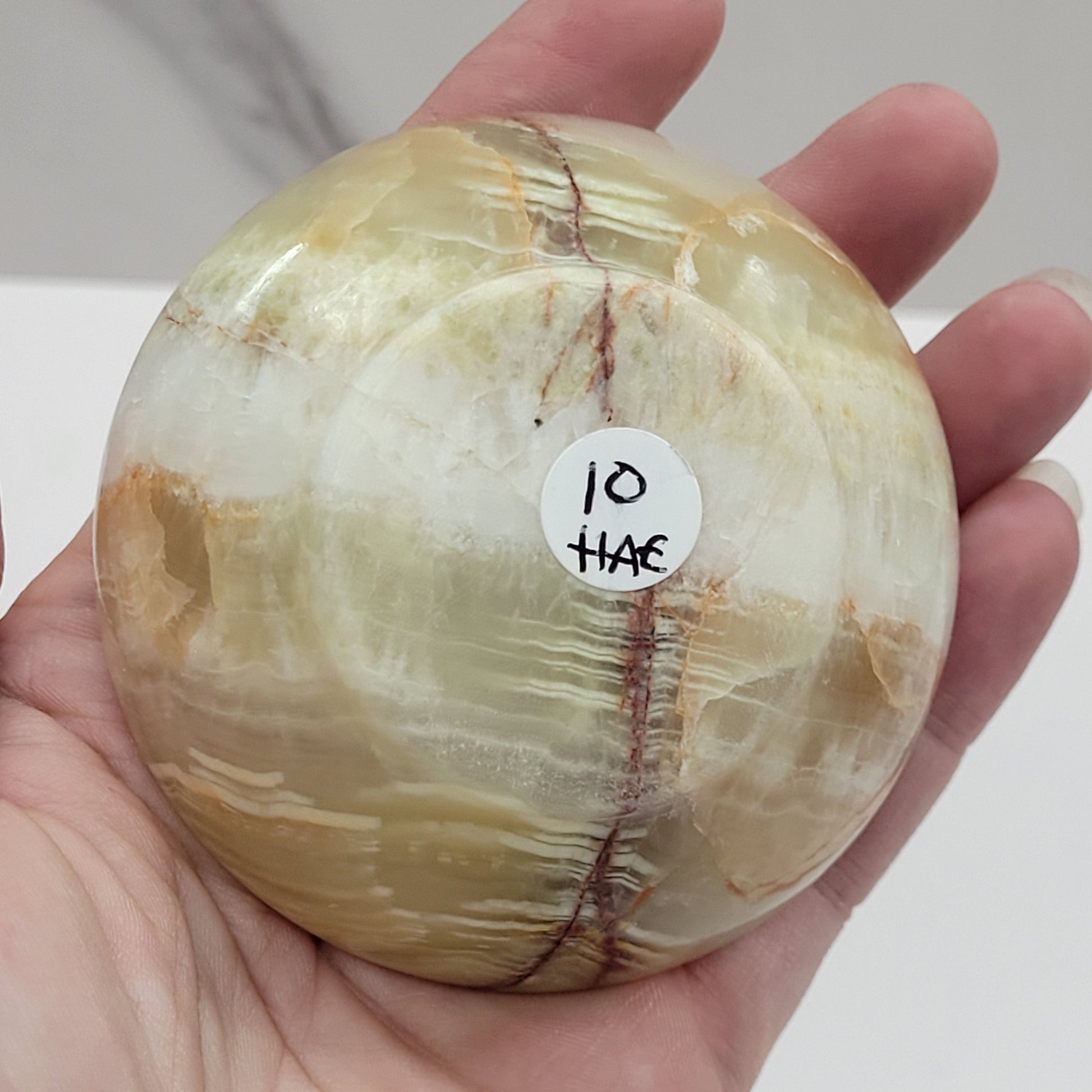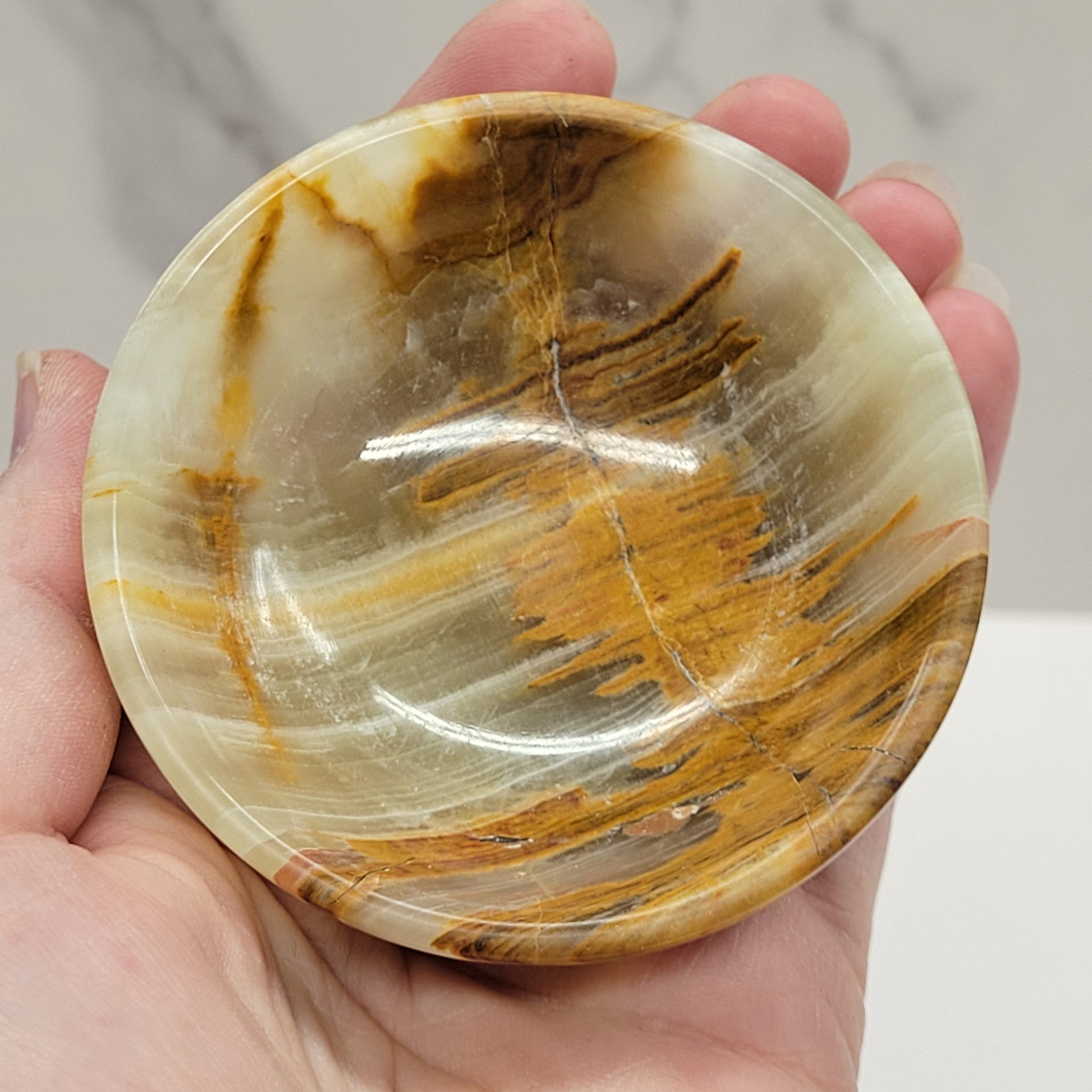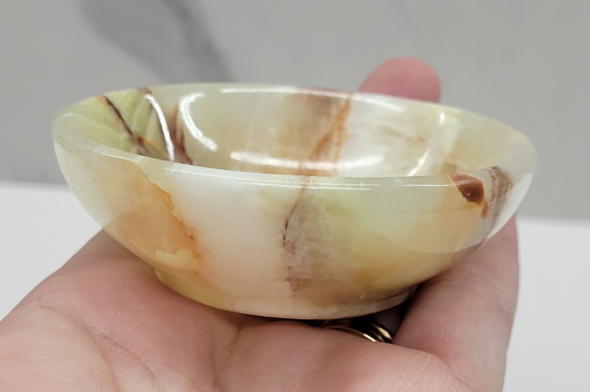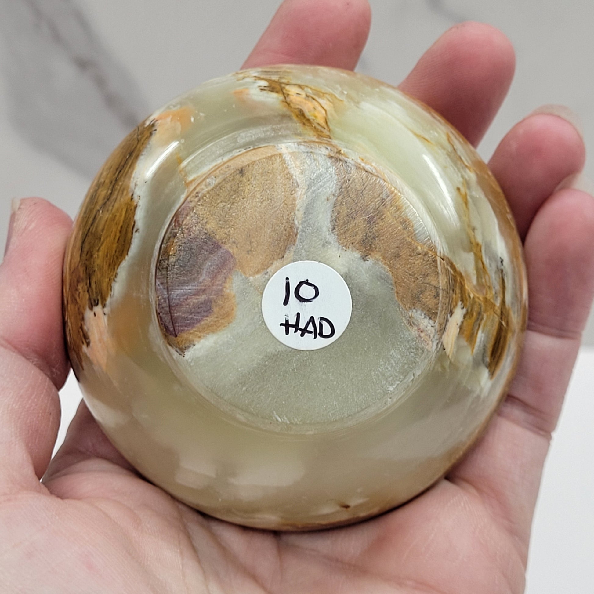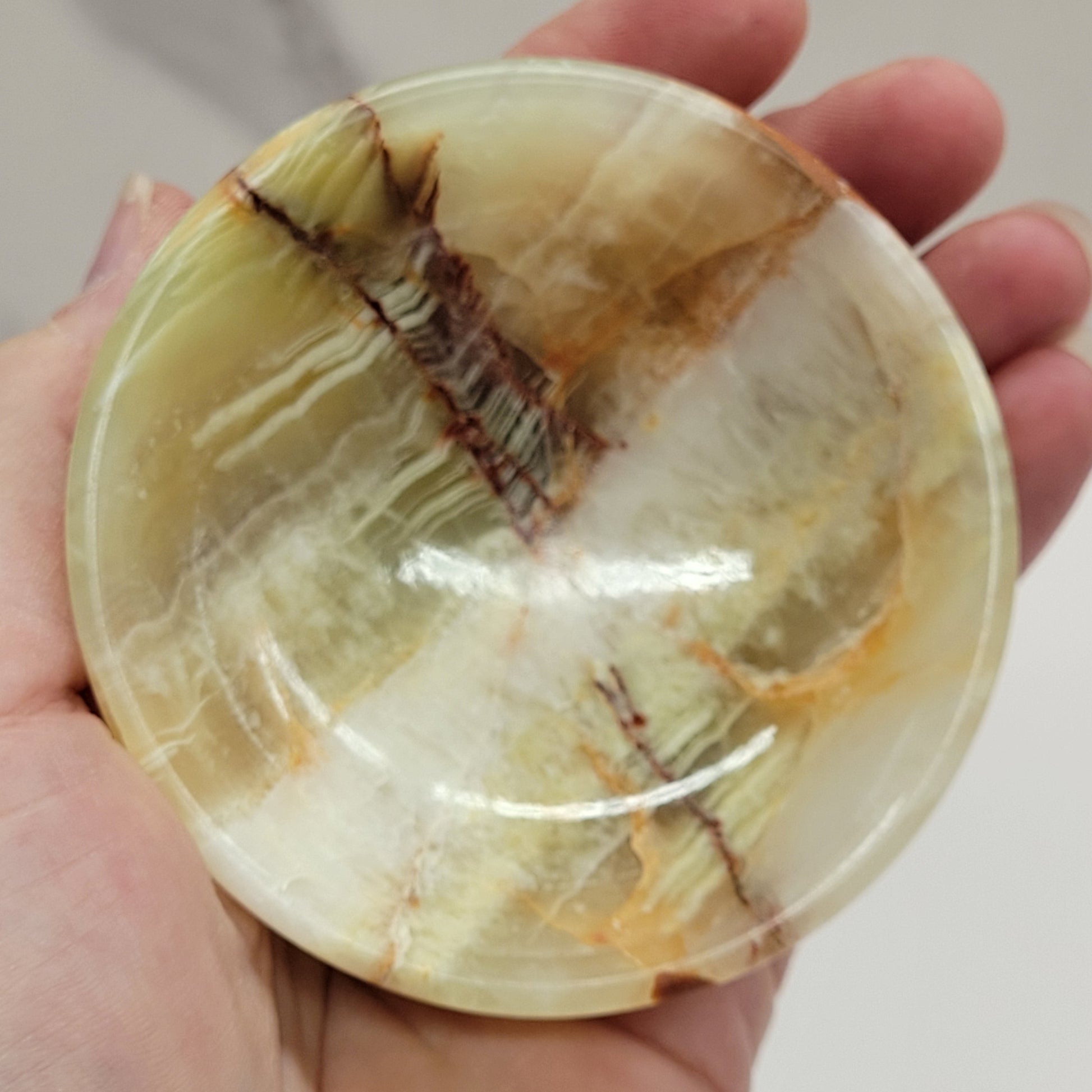 Commonly known by the trade names Afghanistan Green Onyx or Afghanistan Jade Onyx, this beautiful green-and-brown banded stone is not technically onyx but is actually travertine, a variety of aragonite.