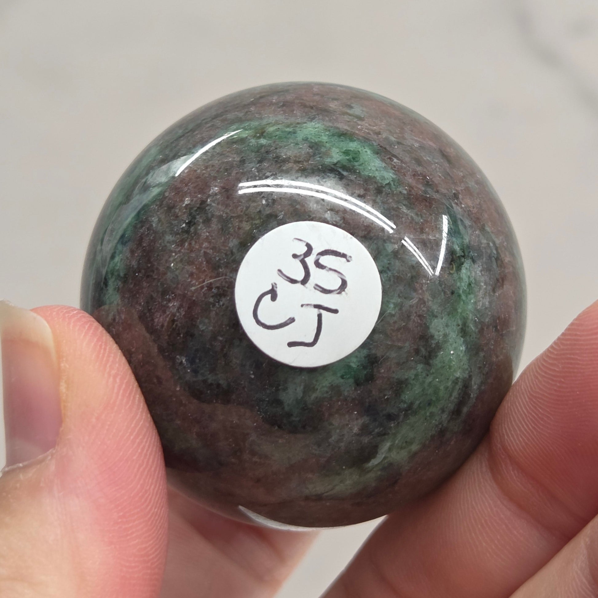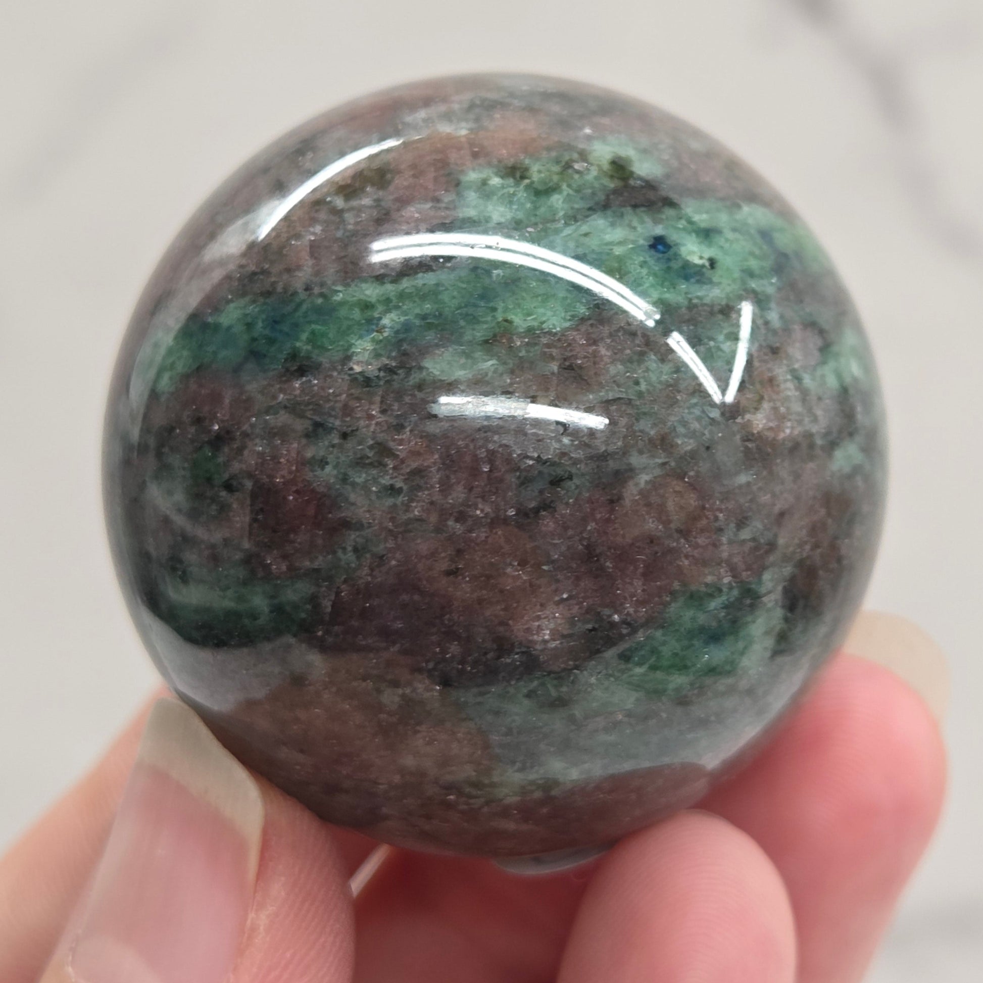 Unique sphere with both Red Aventurine and Green Aventurine. Sphere measures 44mm