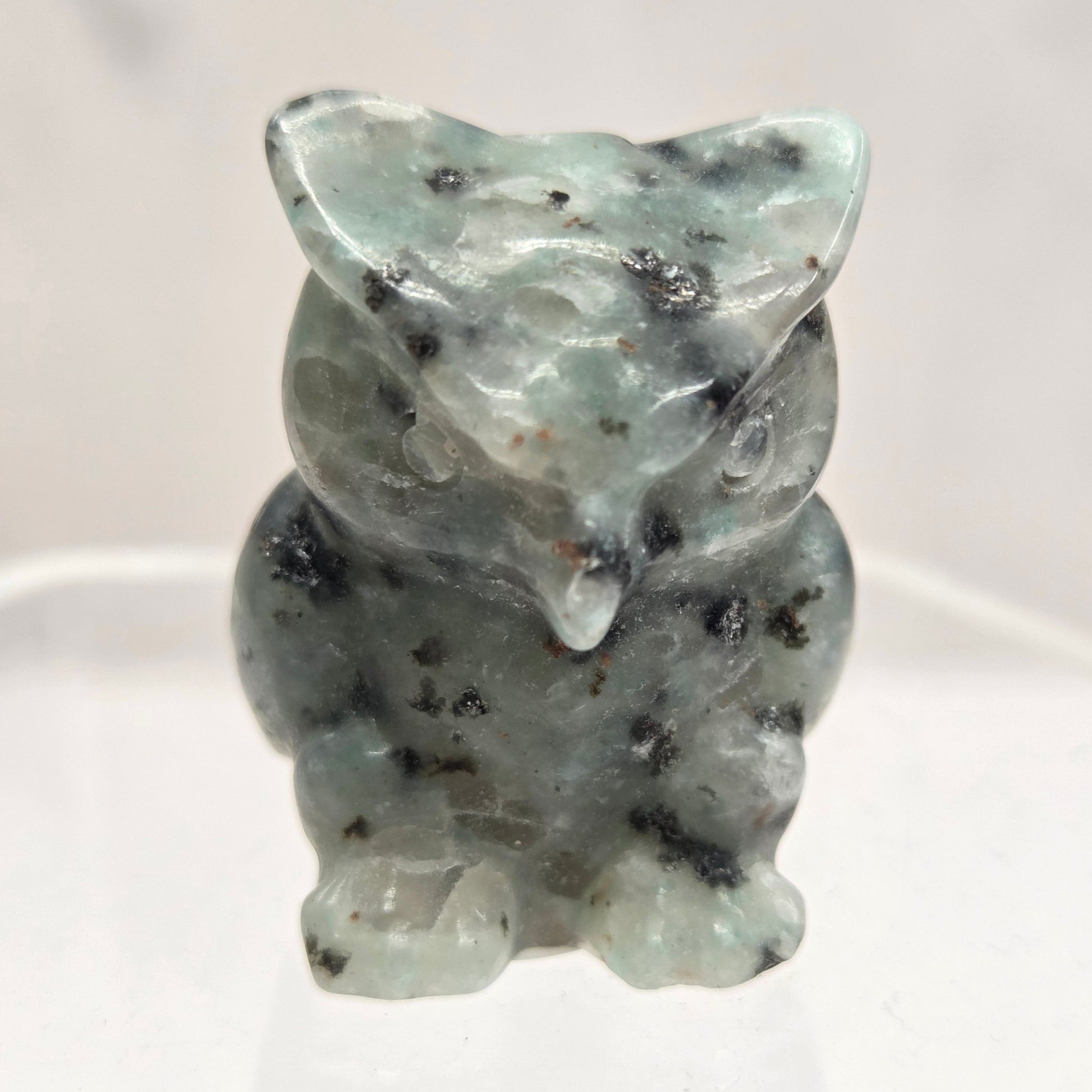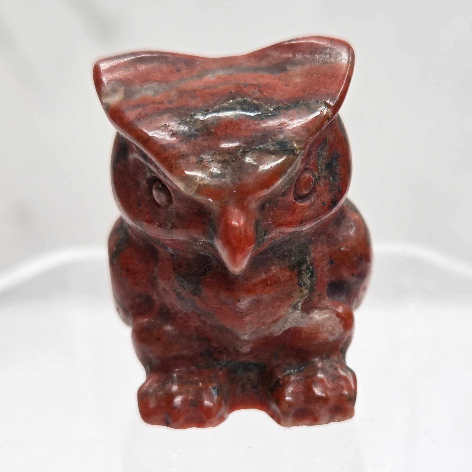 Grumpy owl carvings in a variety of materials. Each carving measures approx. 1.25"