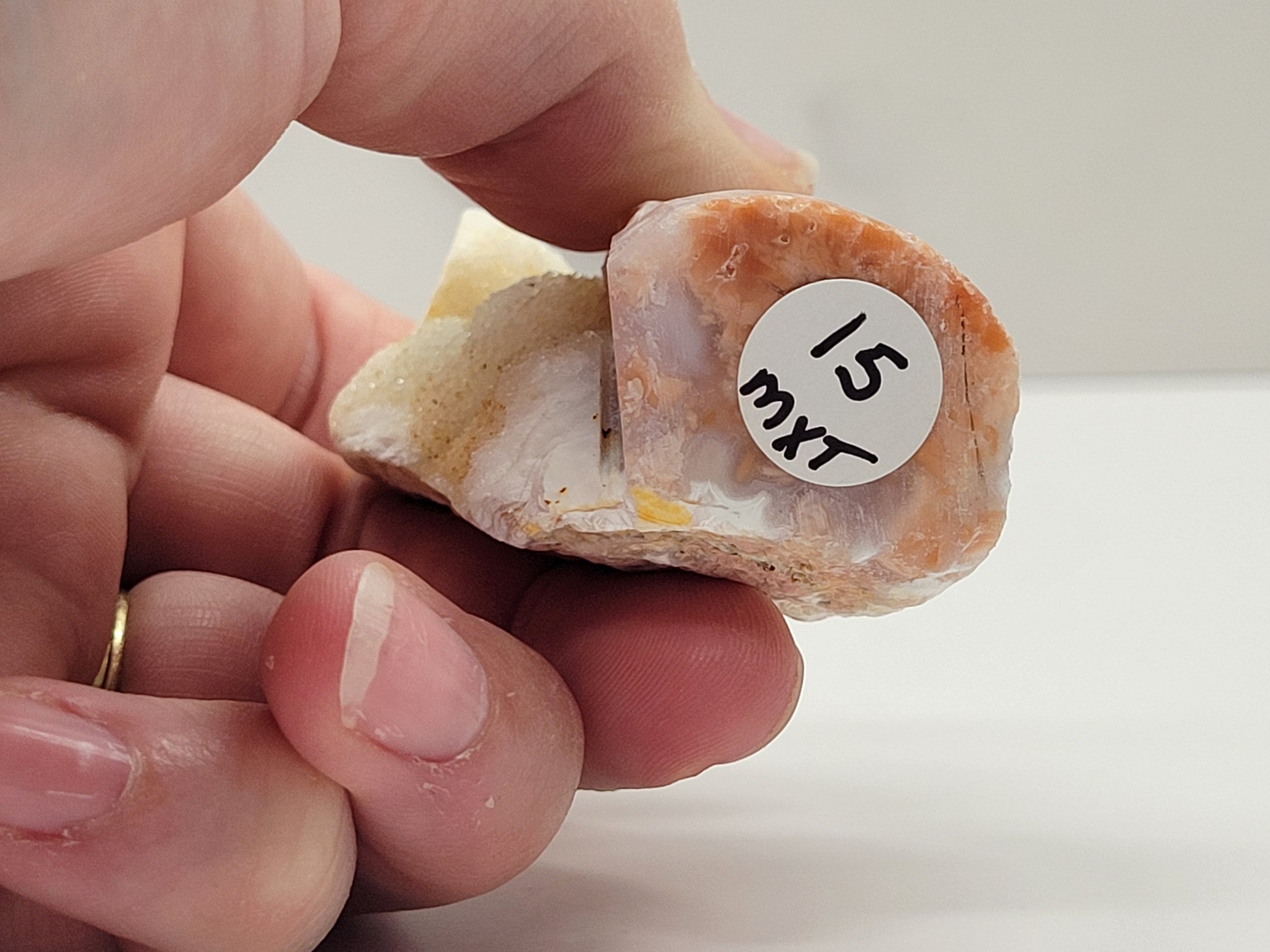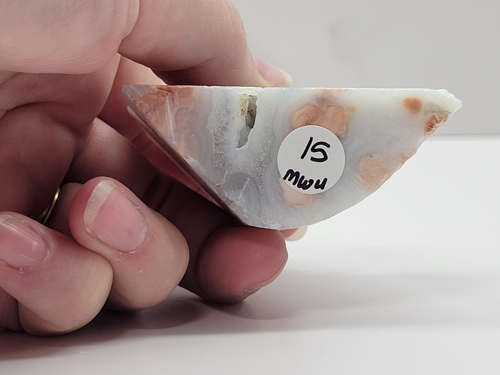 Cotton Candy agate is a recently discovered material collected from Mexico. It is named for its confectionary appearance, with multiple shades of pink brecciated jasper surrounded by fluffy bands of whitish agate and drusy quartz.