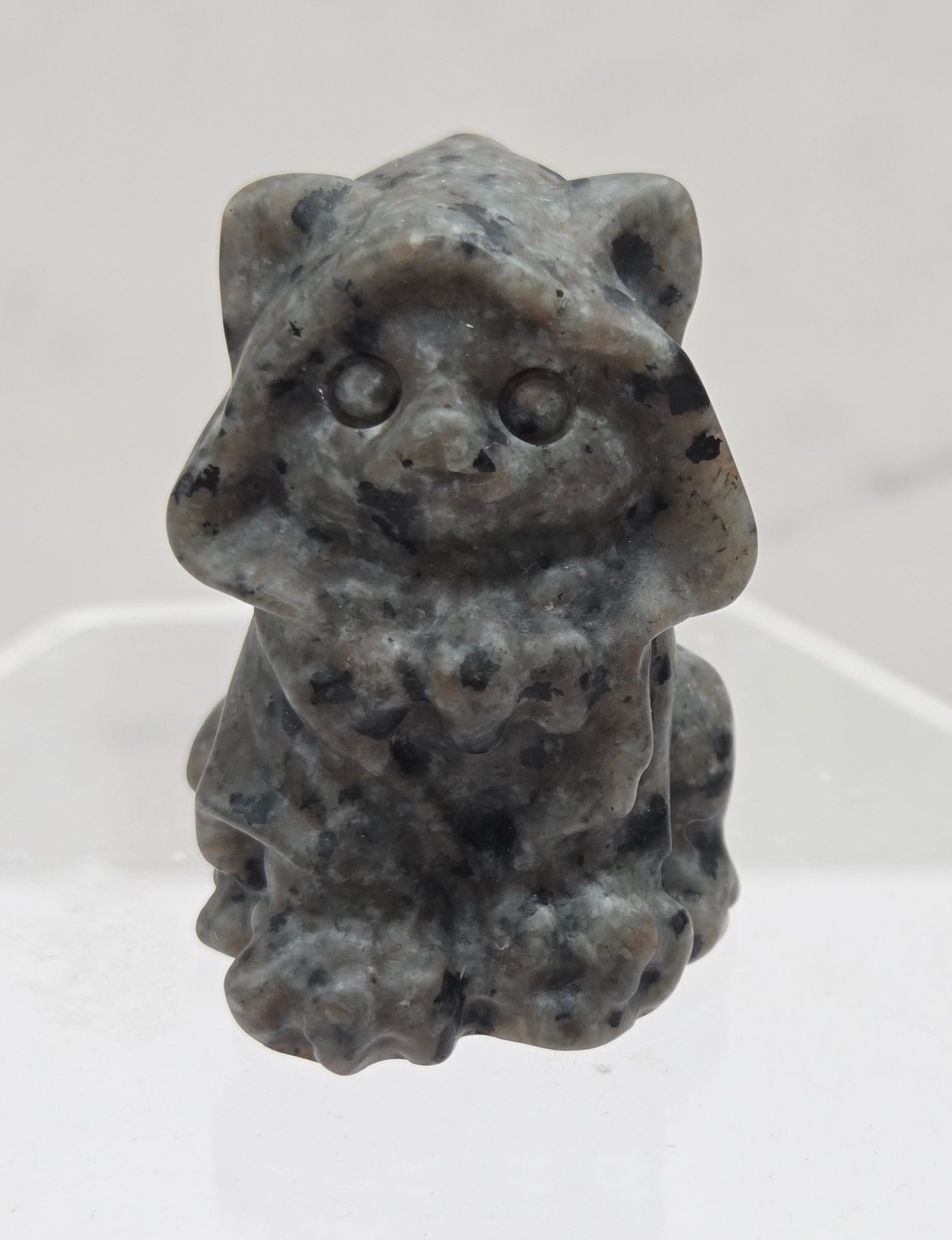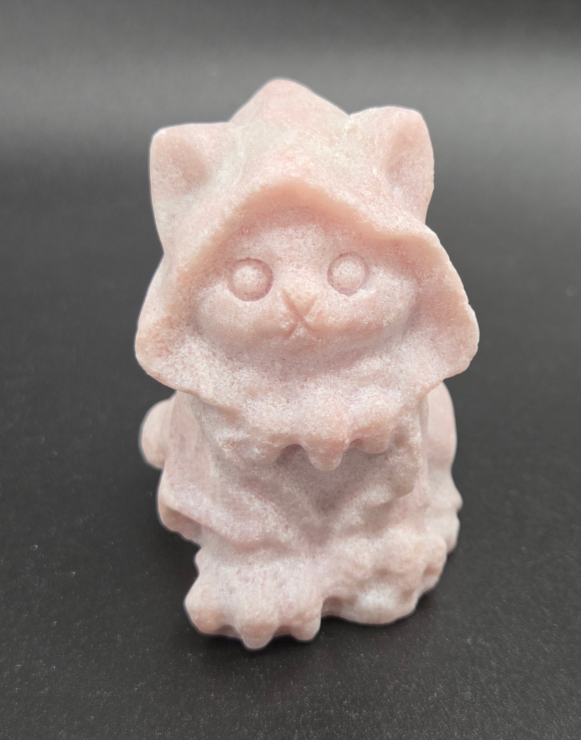 Adorable cat carvings wearing cloaks/hoods in a variety of materials. Medium cats measure approx. 2" x 1.5"