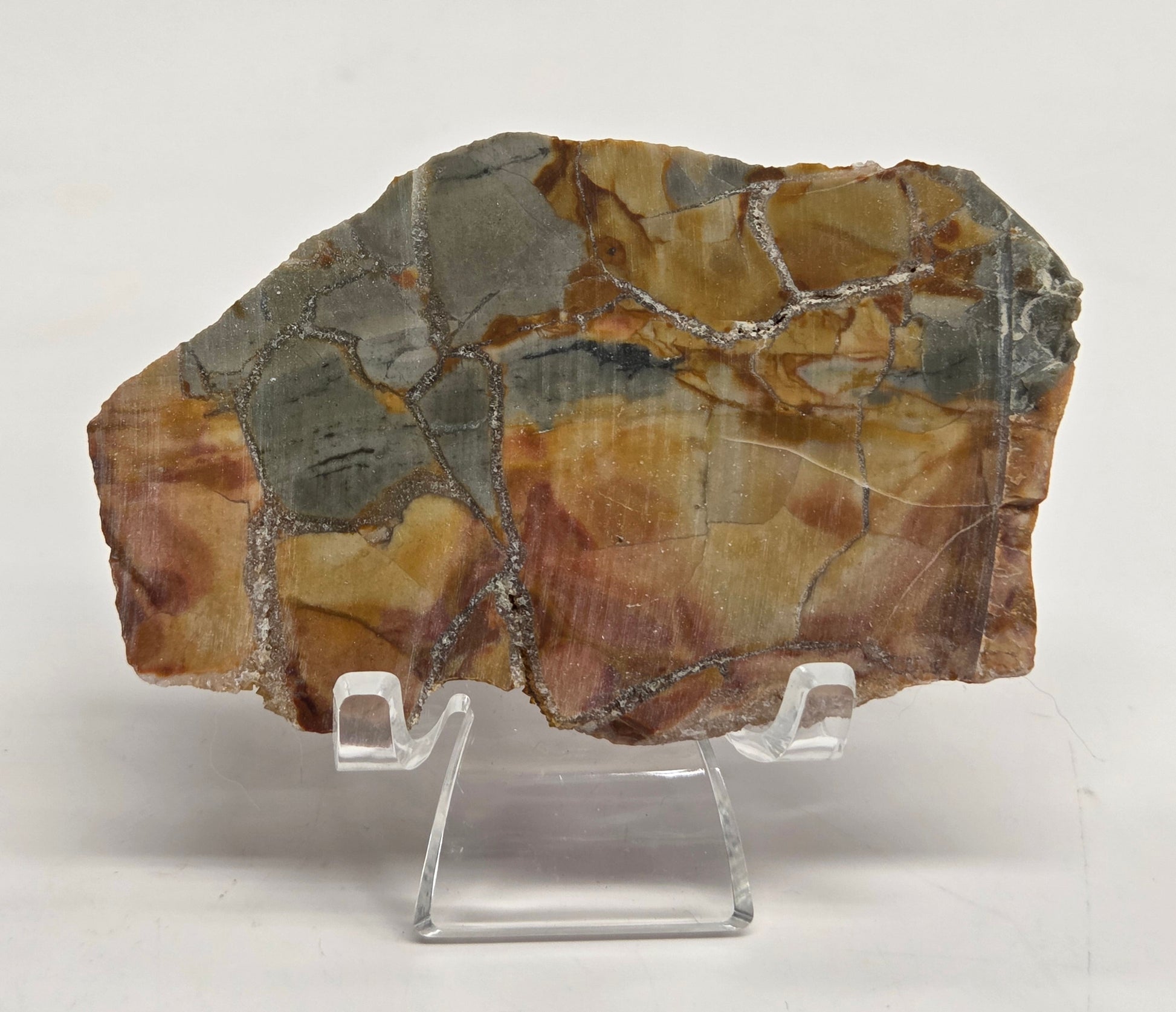 Ibis Jasper is a type of brecciated Jasper known for its unique, colorful patterns. It's named after the Ibis bird, and the stone's formation mirrors the process of breaking and reforming,