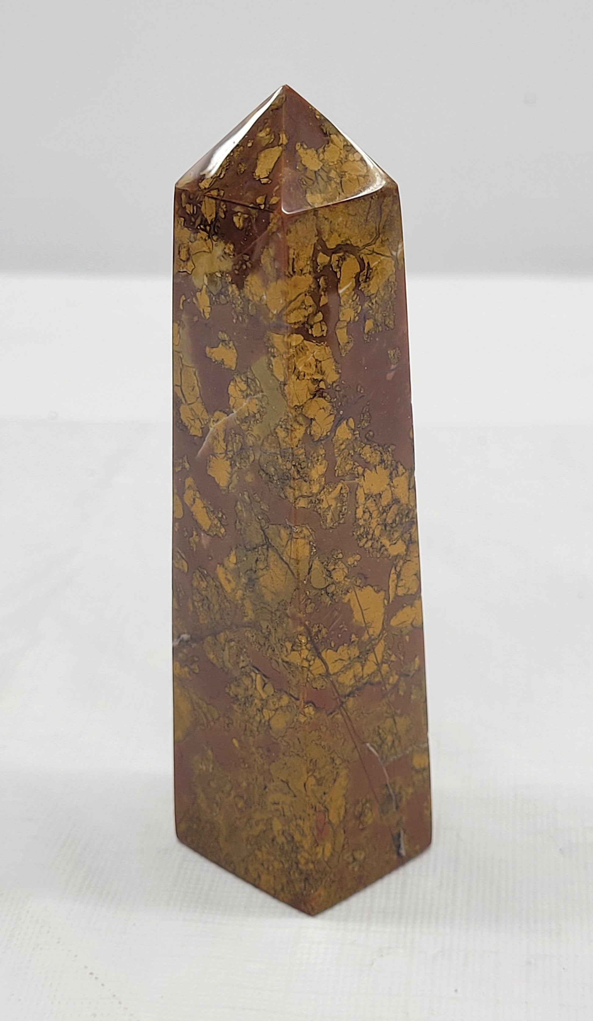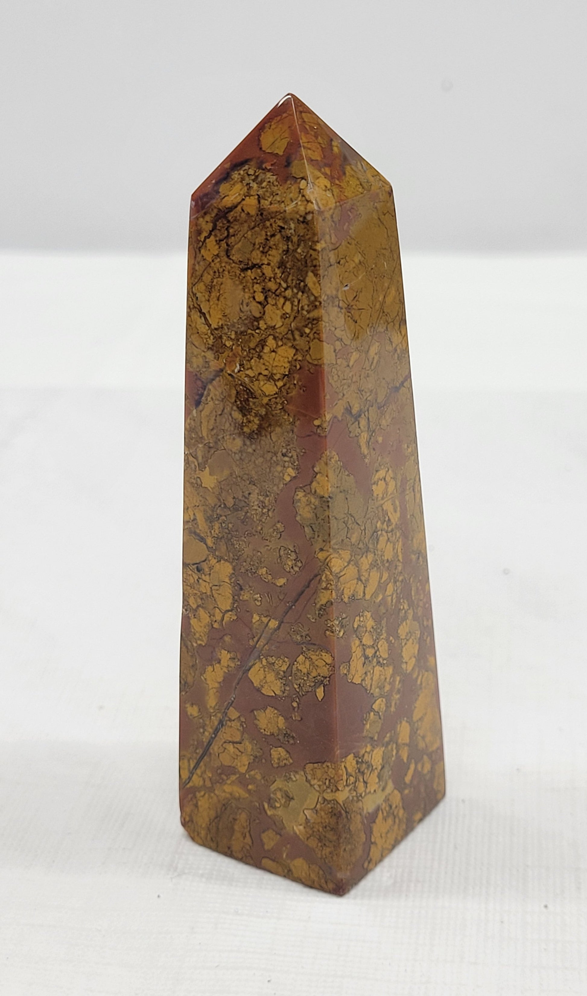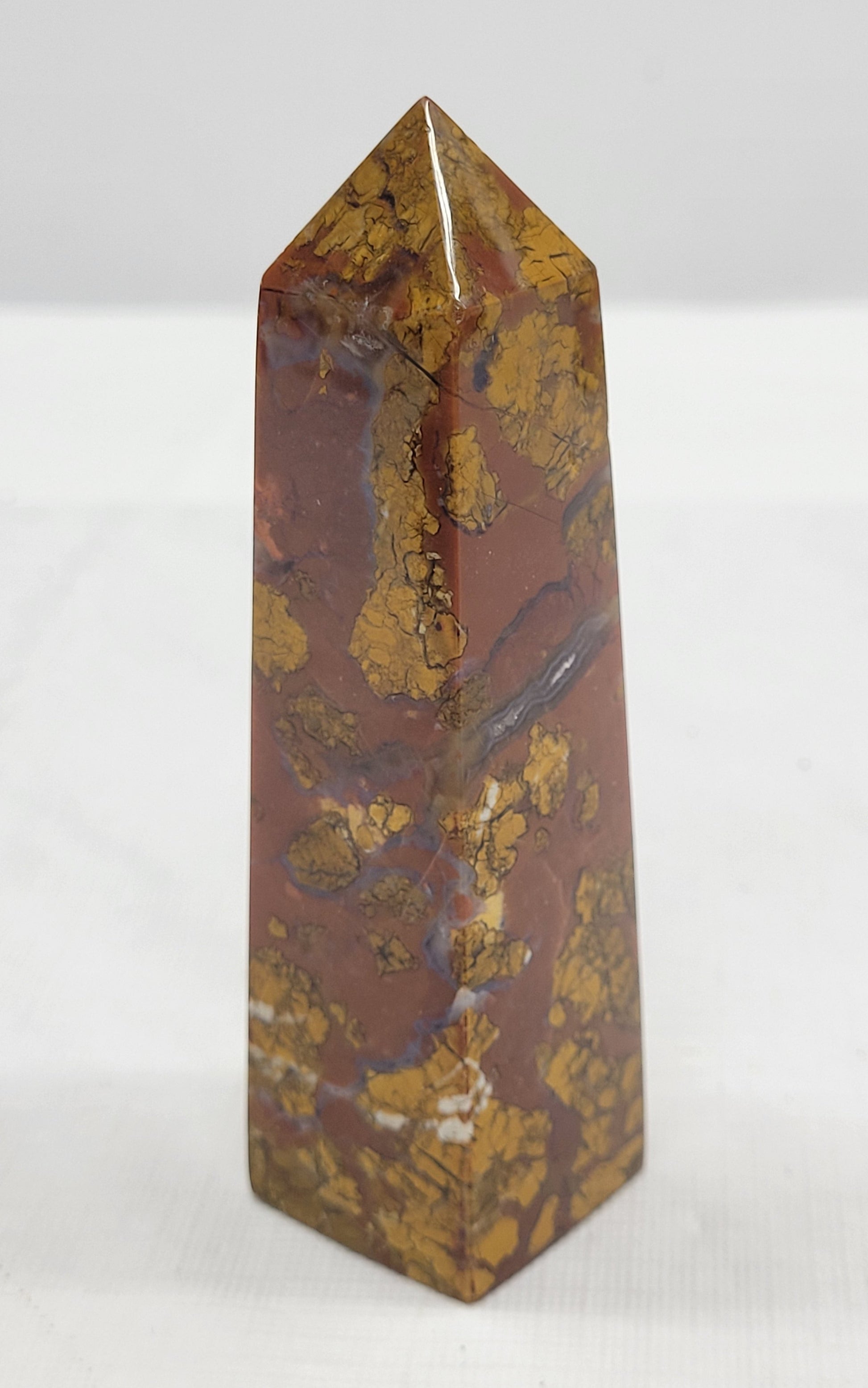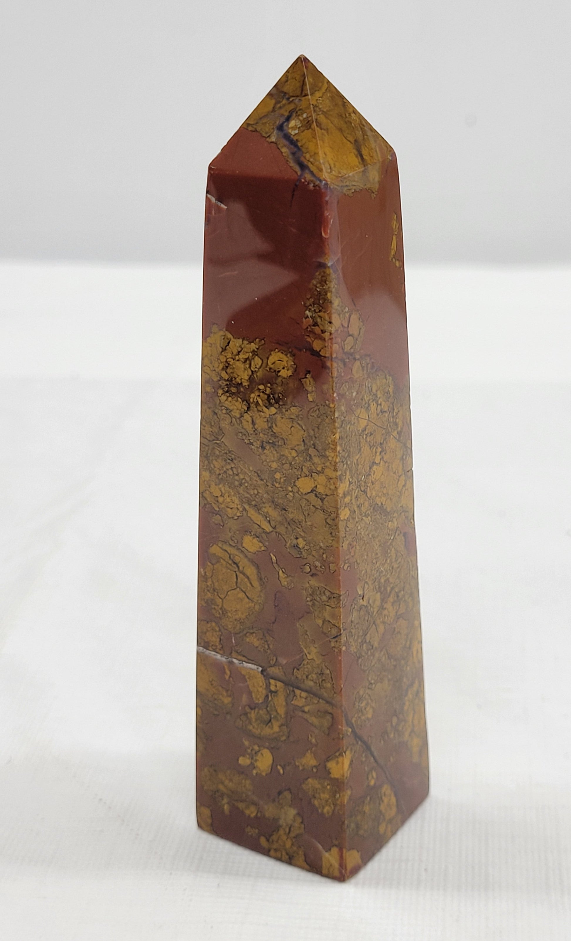 This type of jasper is originally one solid stone, eventually broken up into different pieces by earth's movements, water flow, or other natural occurrences- it is then glued back together over time by heat, pressure, and minerals, recreating a solid stone.