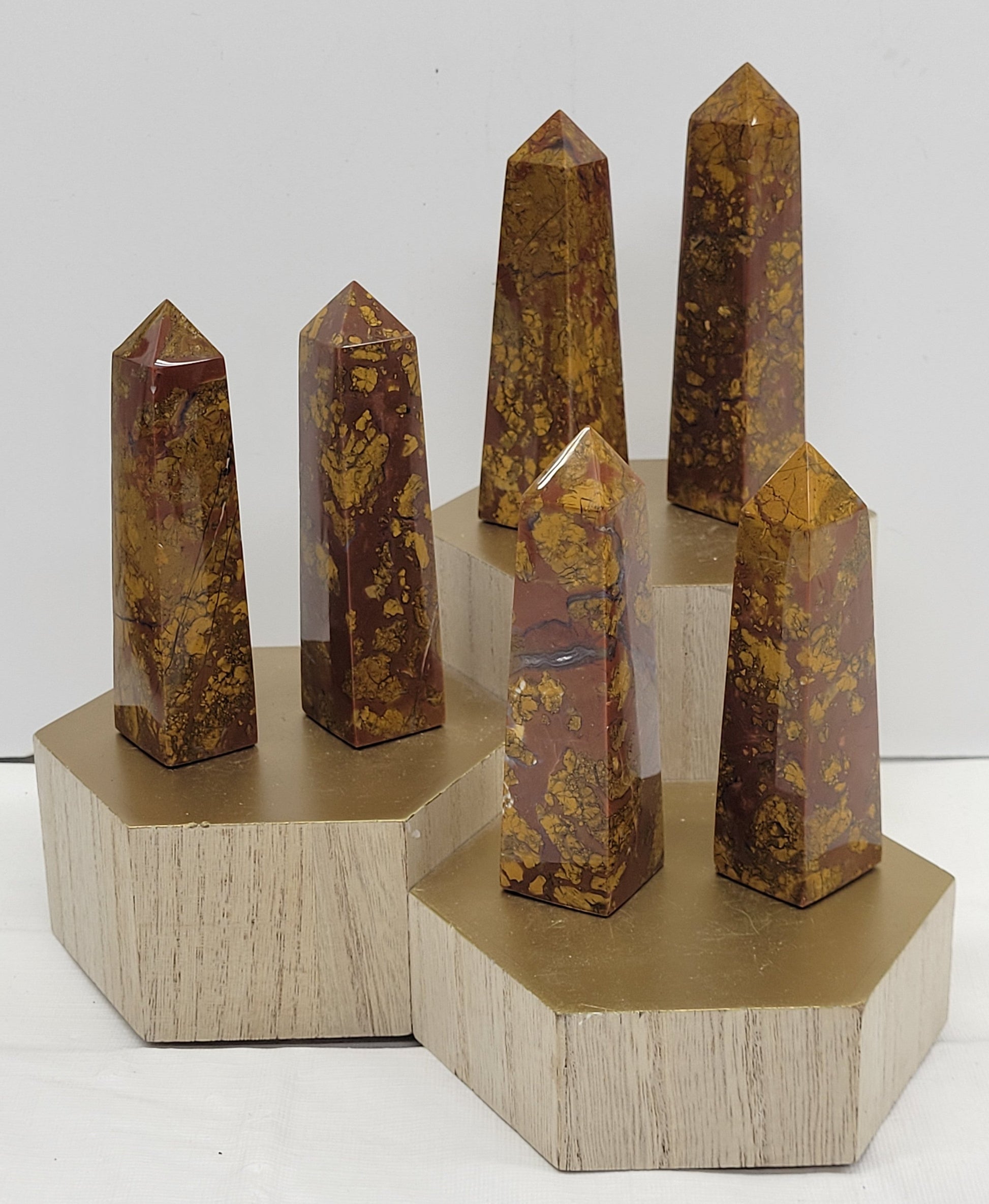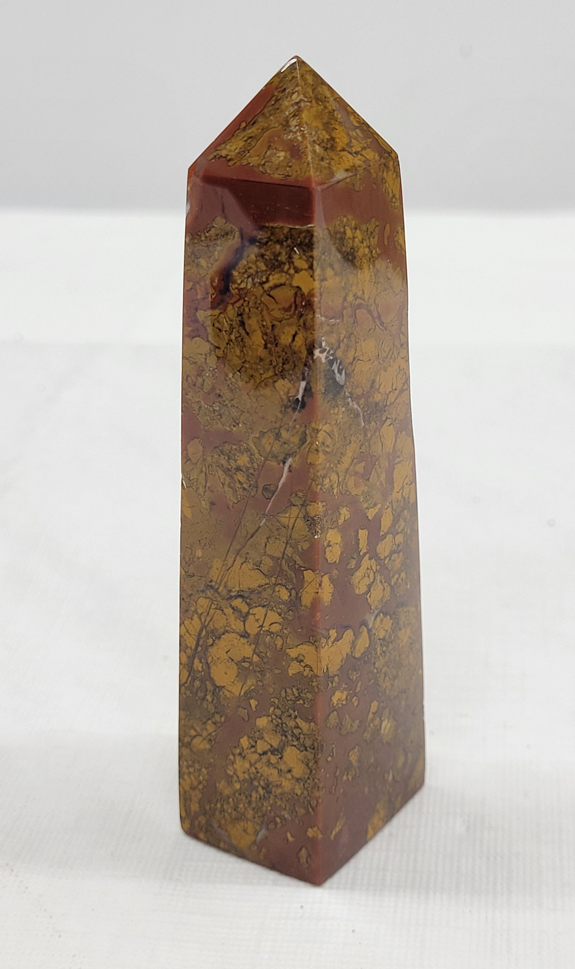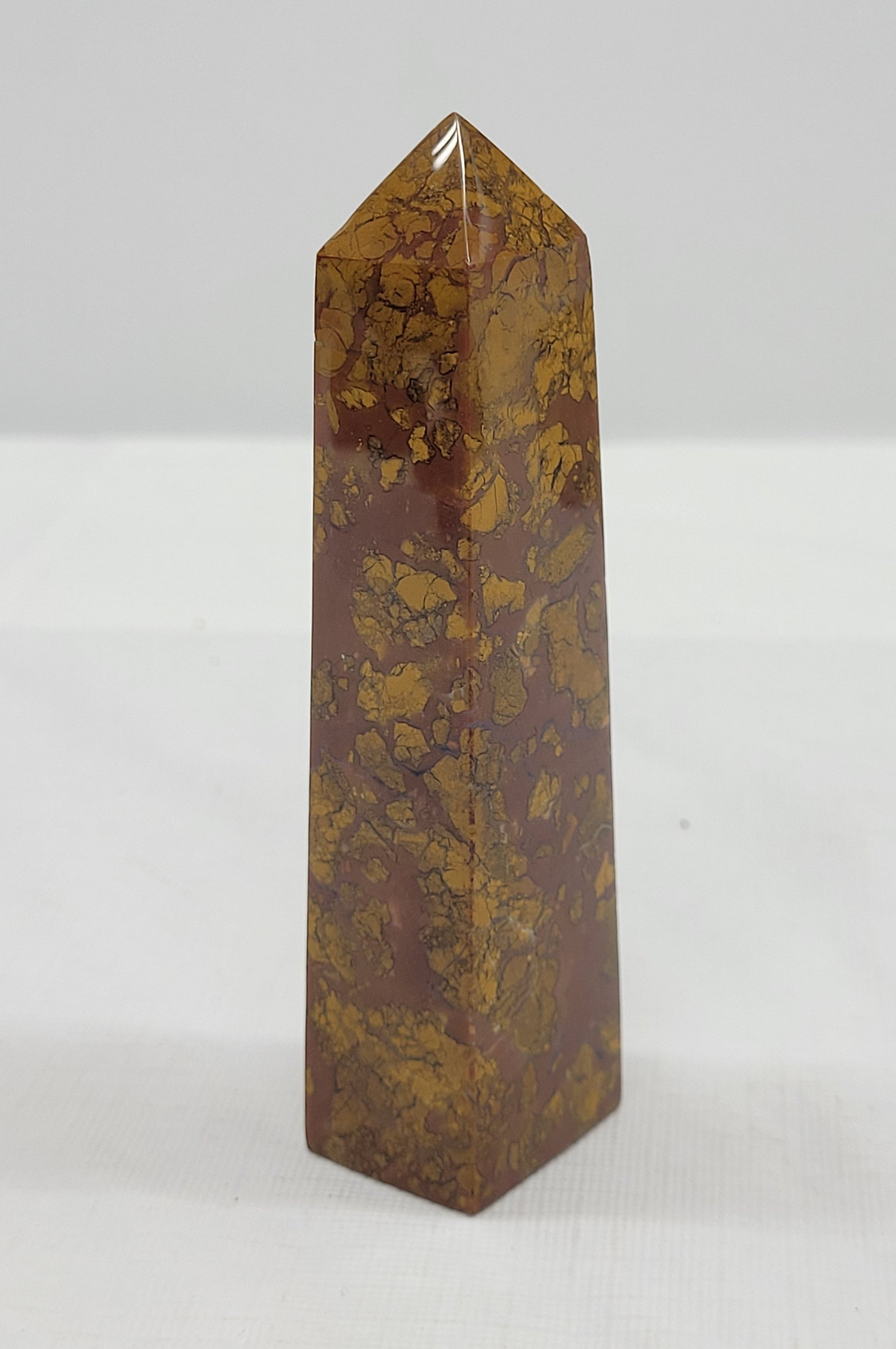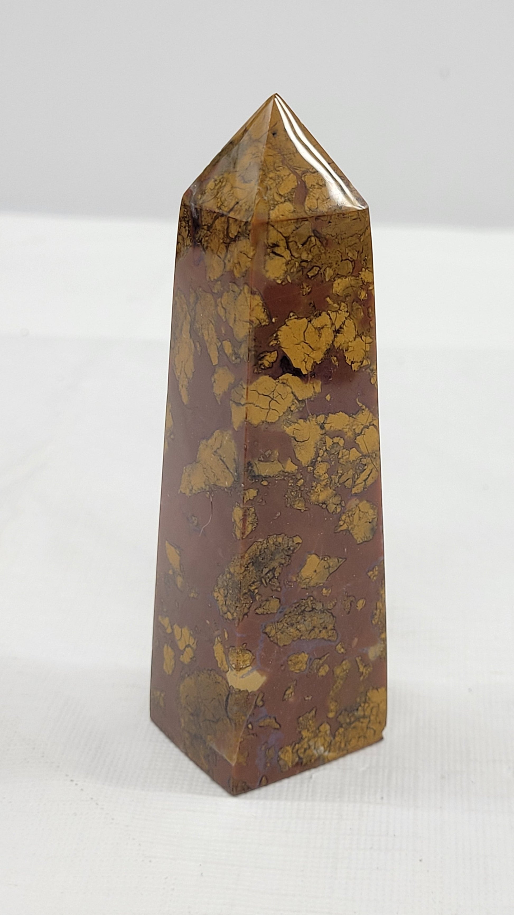 This type of jasper is originally one solid stone, eventually broken up into different pieces by earth's movements, water flow, or other natural occurrences- it is then glued back together over time by heat, pressure, and minerals, recreating a solid stone.