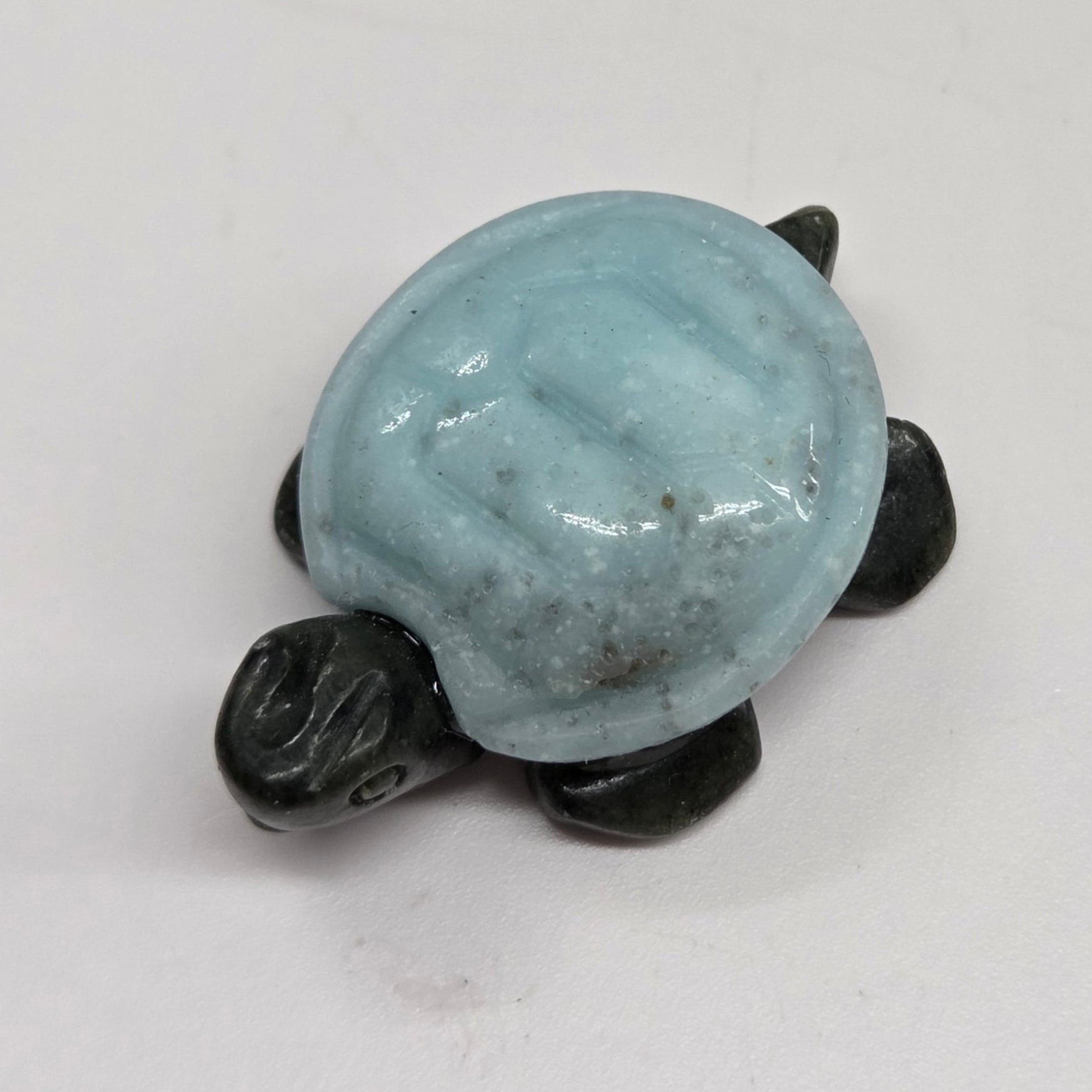 Adorable turtles with Green Jade bodies and Caribbean Calcite shells. Natural materials.