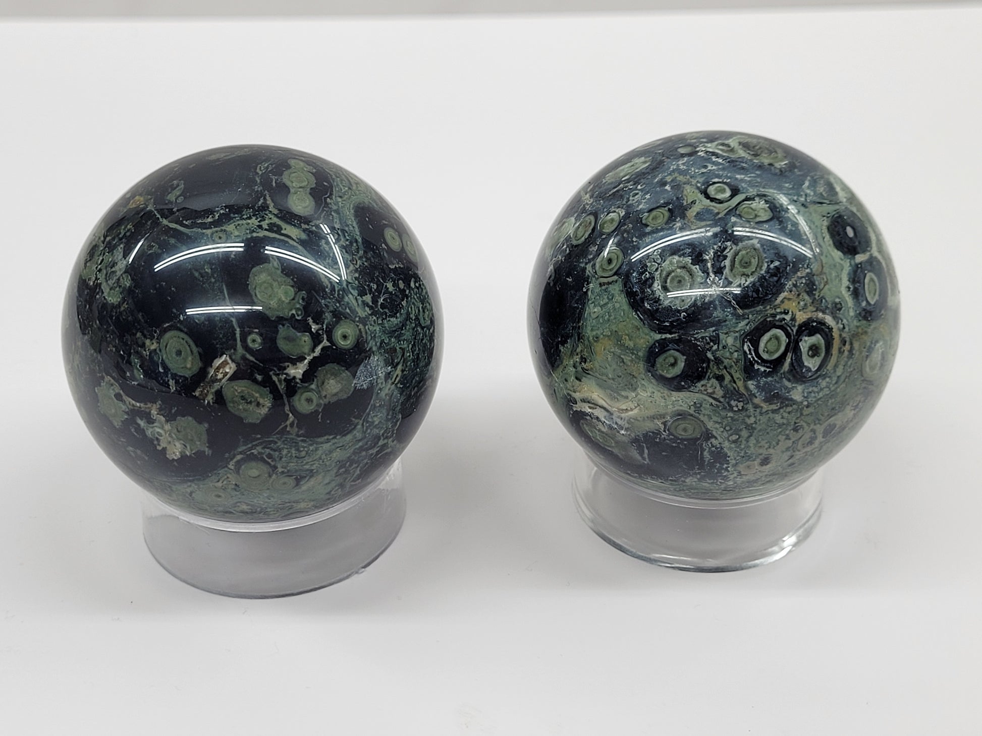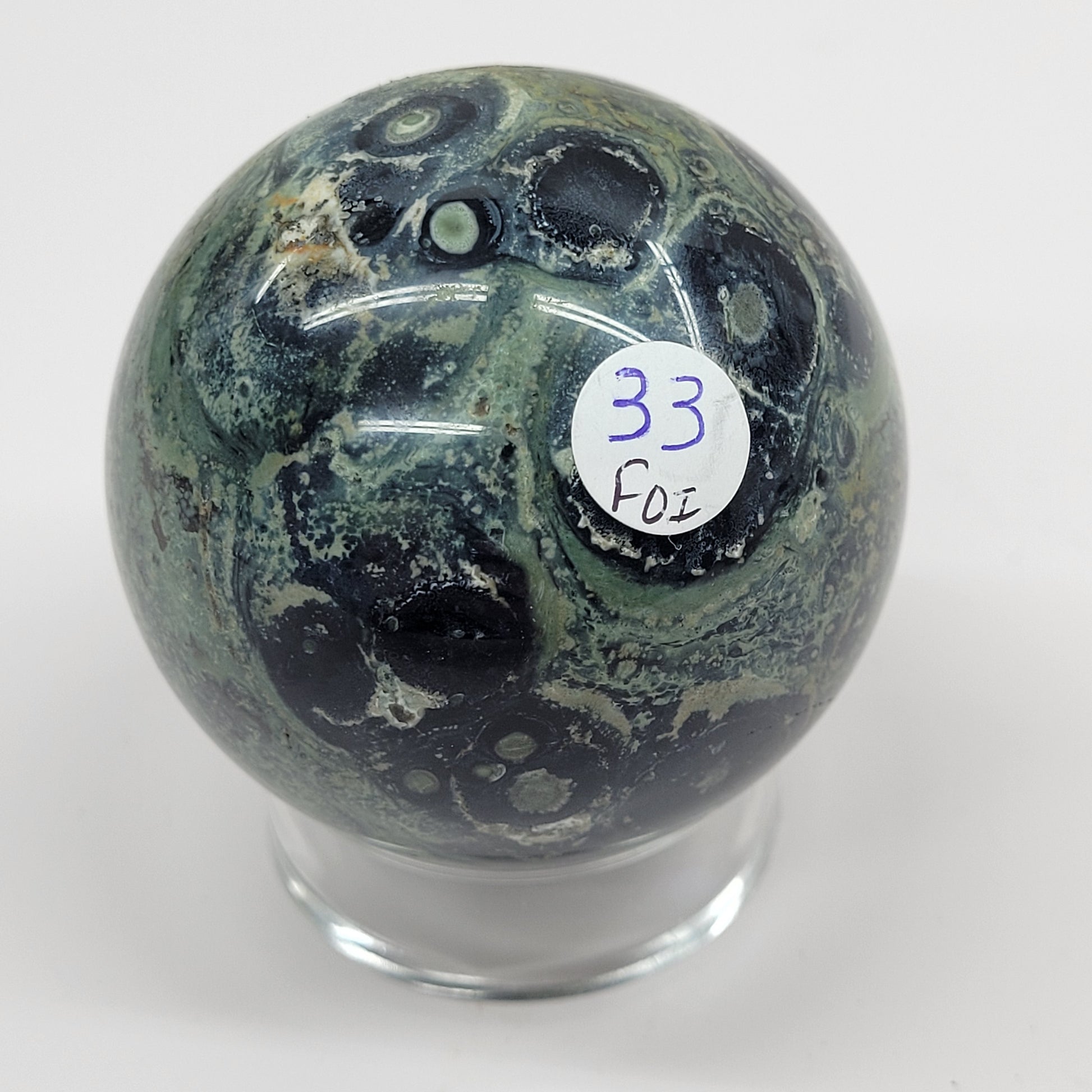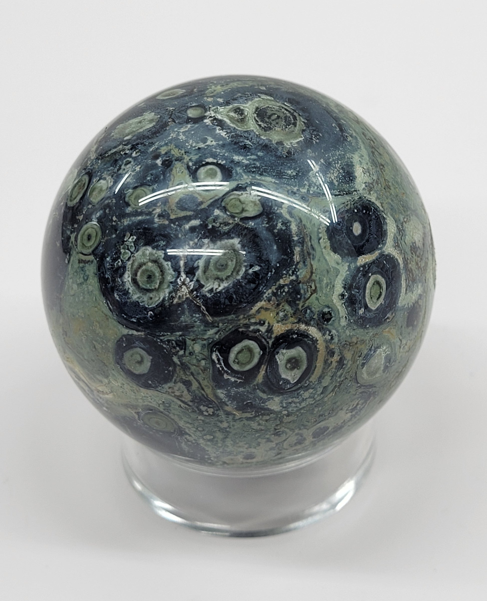 Kambaba Jasper, also known as Kambaba Stone or Green Stromatolite Jasper, is an extremely old stone dating back to 3 billion years ago. Kambaba Jasper is actually not a Jasper, but rather a fossil. This stone is classified as a stromatolite, which refers to the clump of fossilized algae that created this mineral. One of the special fossils within Kambaba Jasper is actually Cyanobacteria, which is believed to have helped create the first oxygen atmosphere here on earth many moons ago. Other minerals within this special combination of stones are usually Quartz, Feldspar, Cristobalite, and Albite.