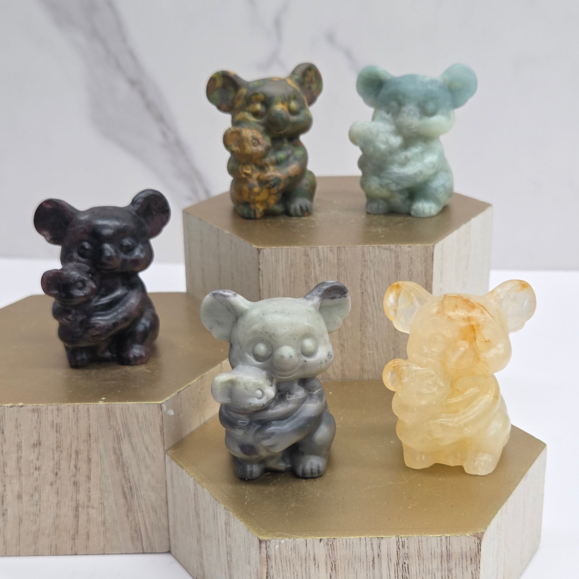 Cute Koala holding a baby in a variety of materials. Each koala measures 2.1"
