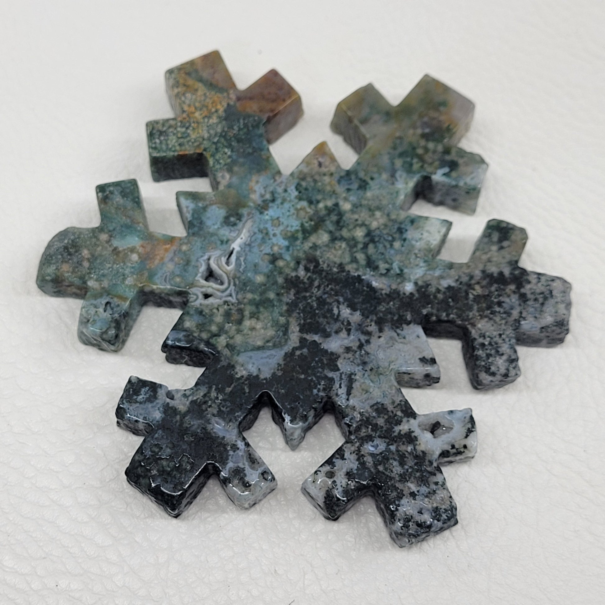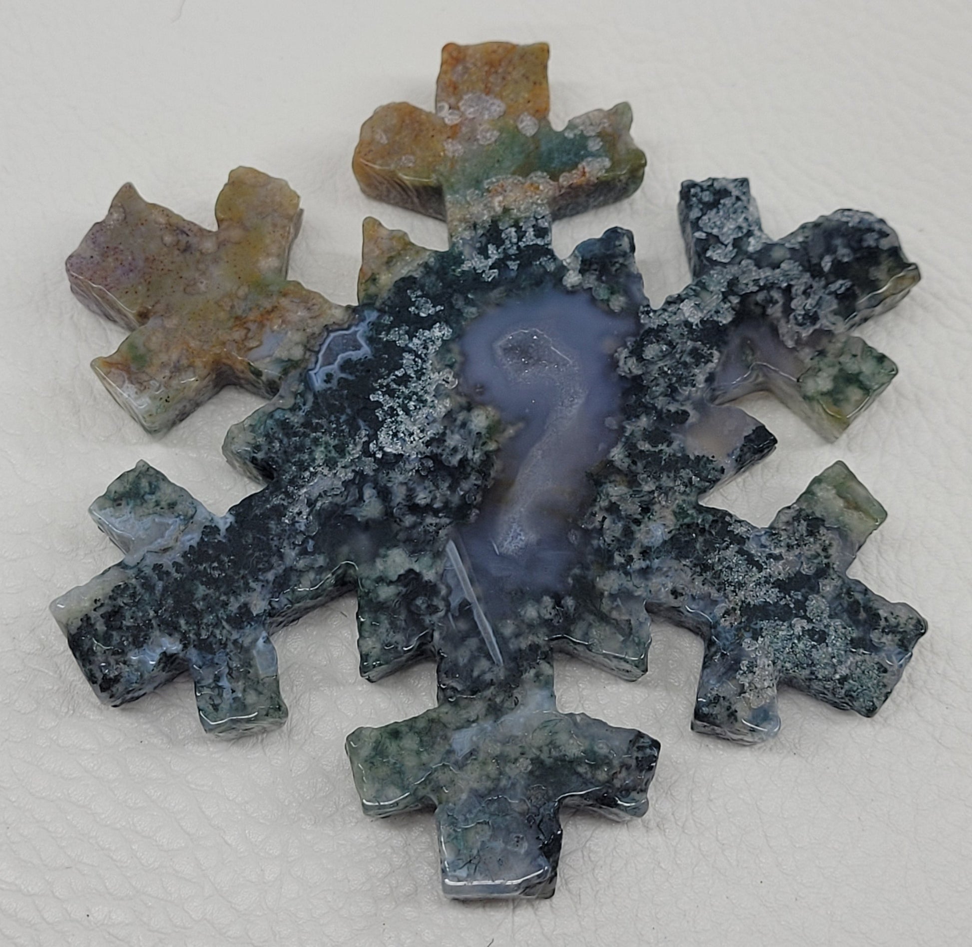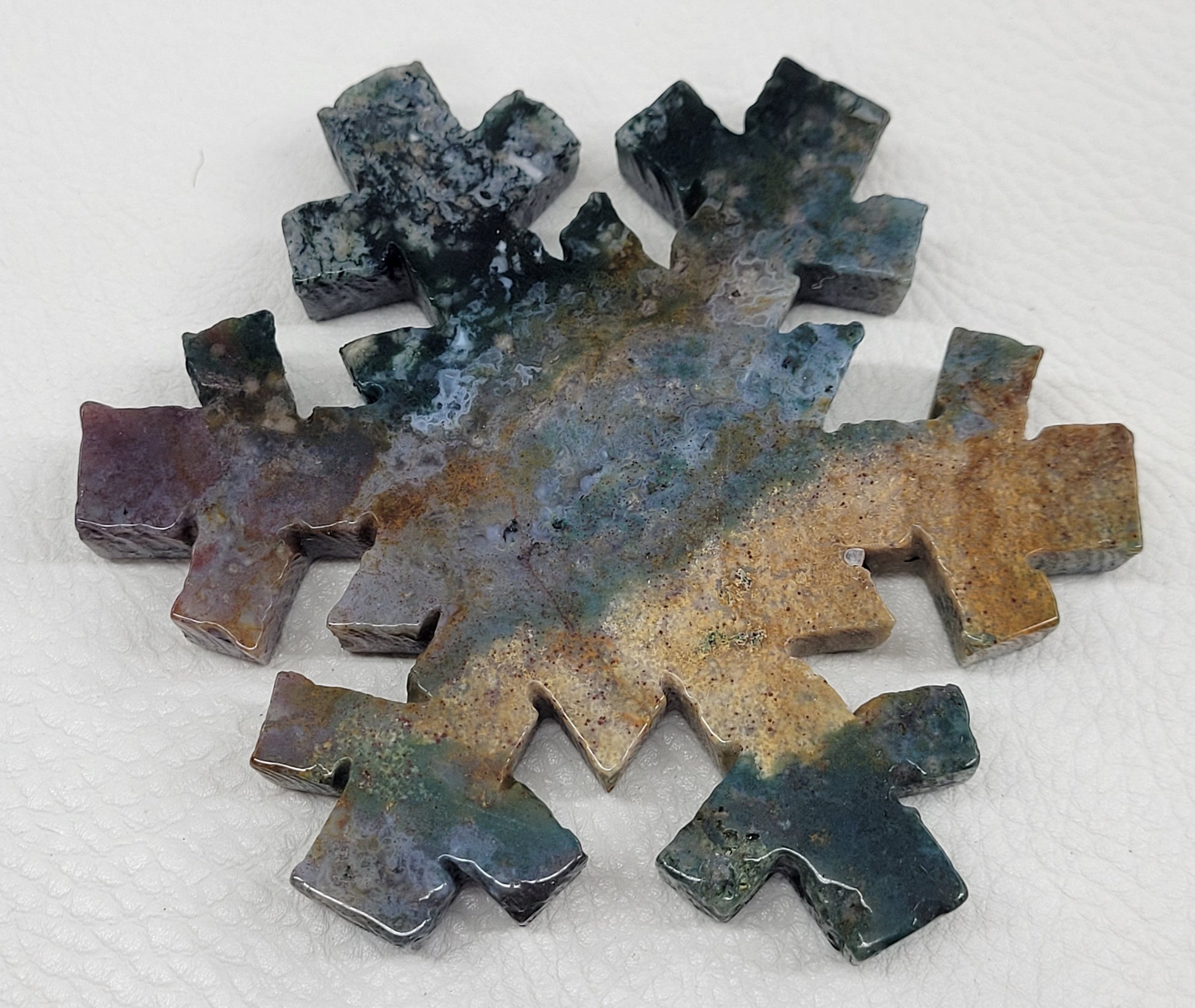 Moss Agate/OJ: 3.5" x 3" x .5"
