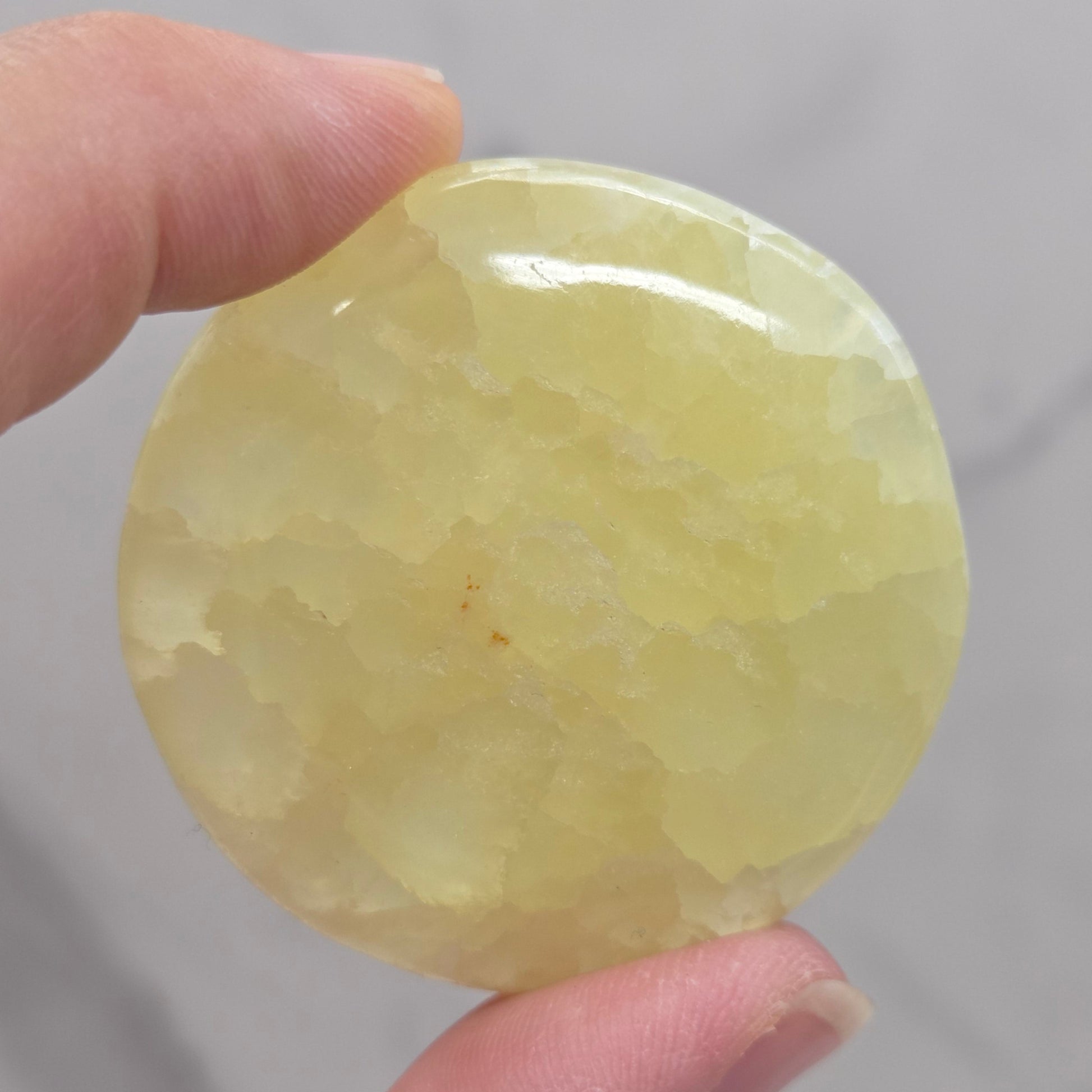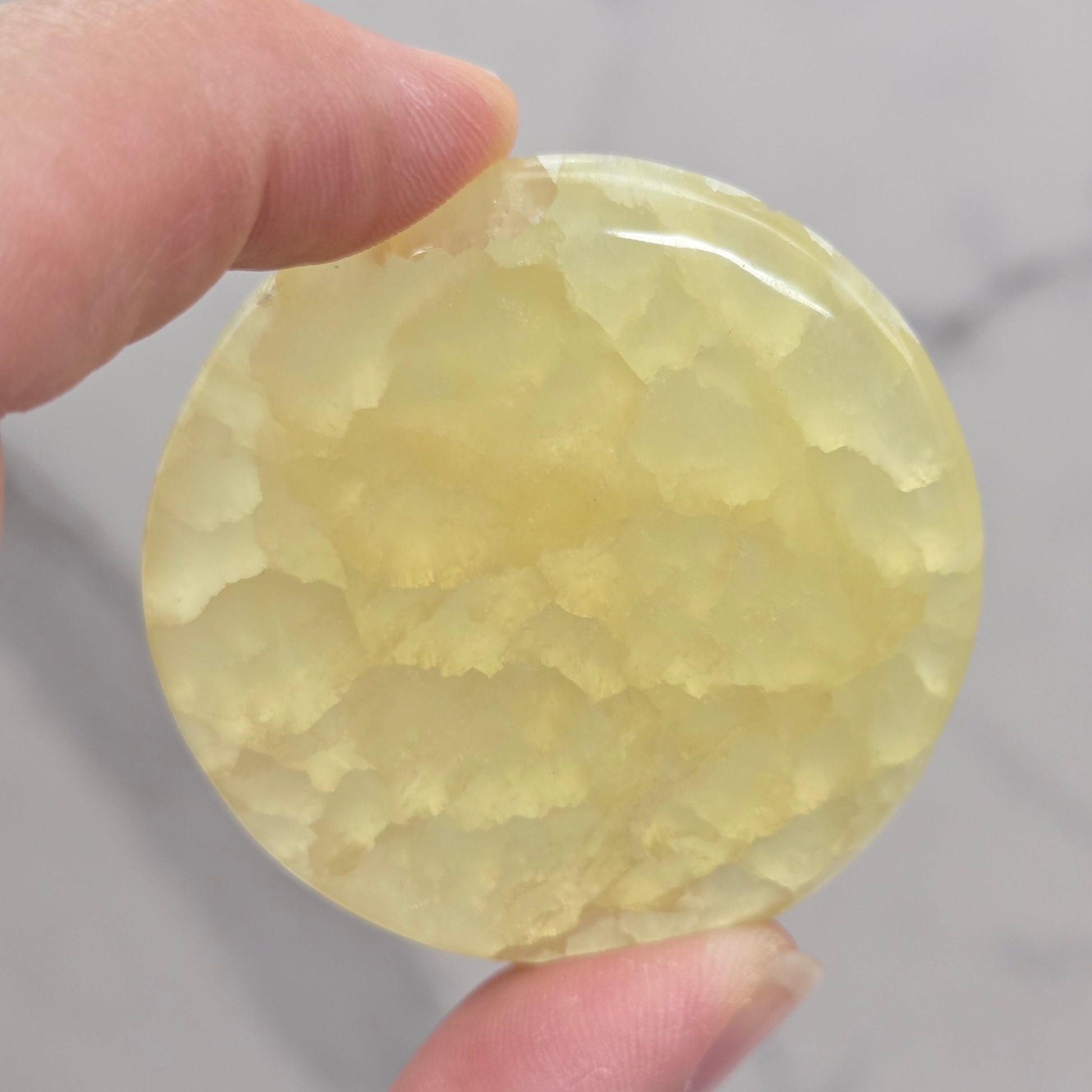 Lemon Calcite is a new variety of Calcite. It is a calcium carbonate mineral that was recently discovered in Pakistan and its color can range in just about every shade of yellow and even a full bodied gold. The range of colors are due to the amount of iron impurities within each stone.