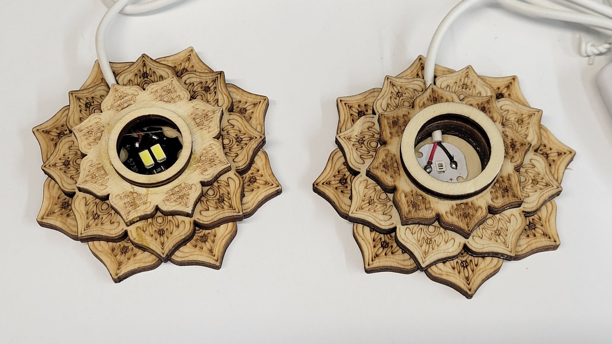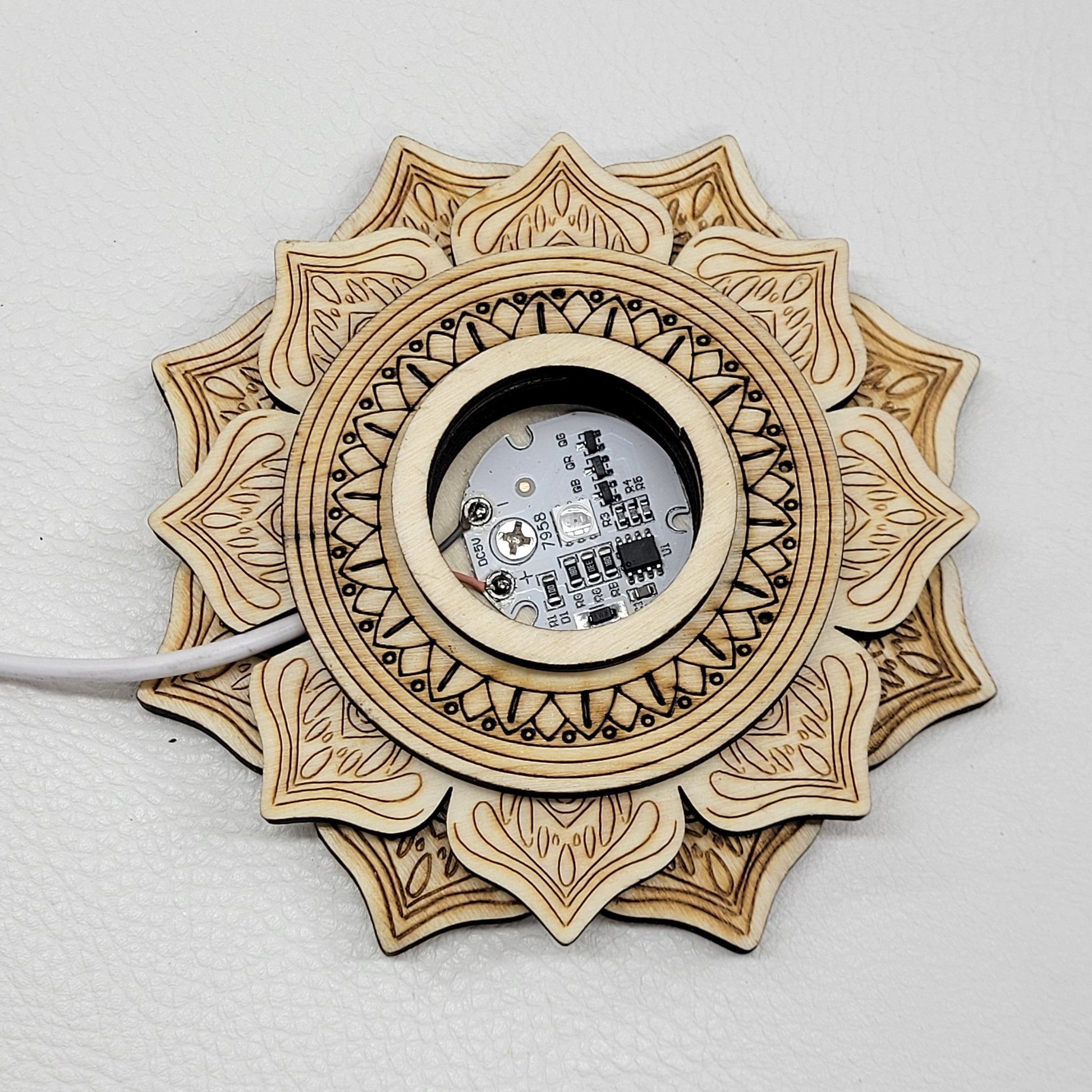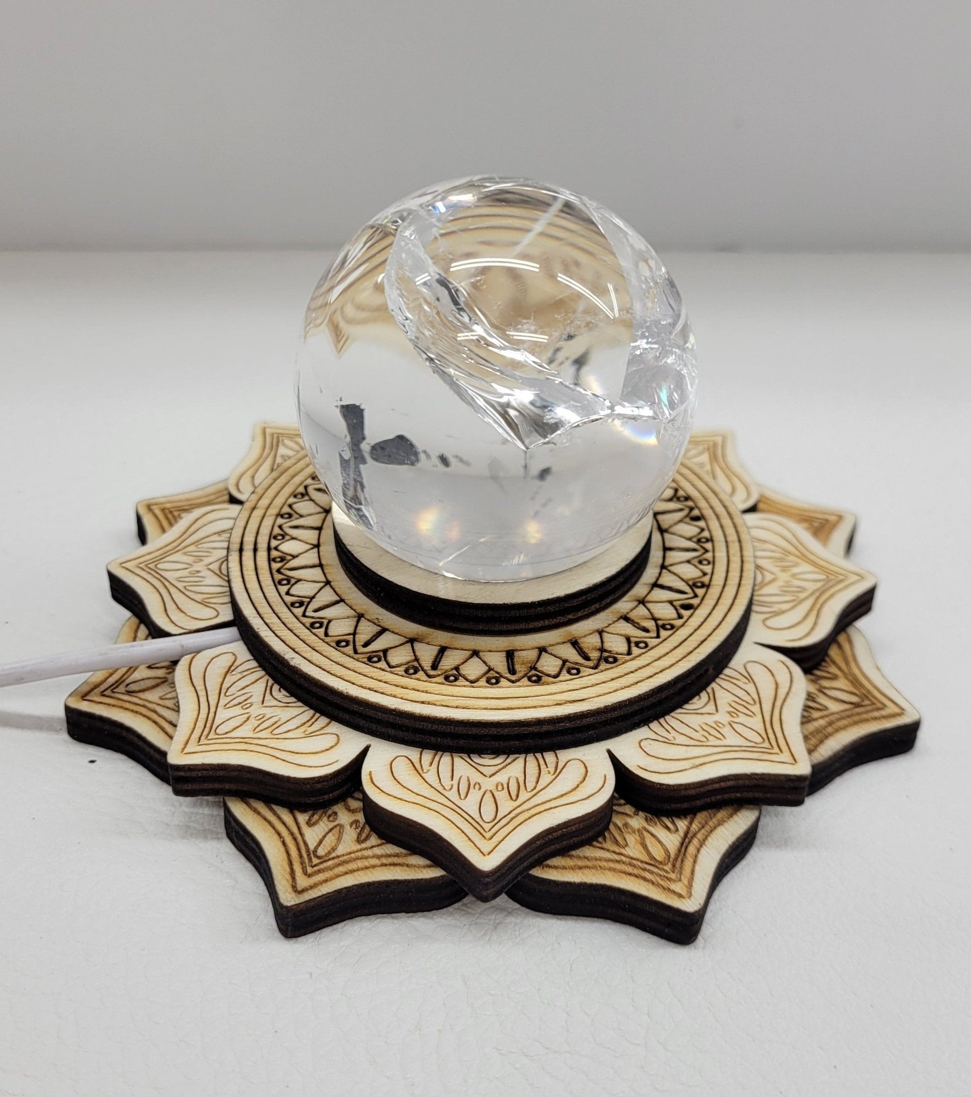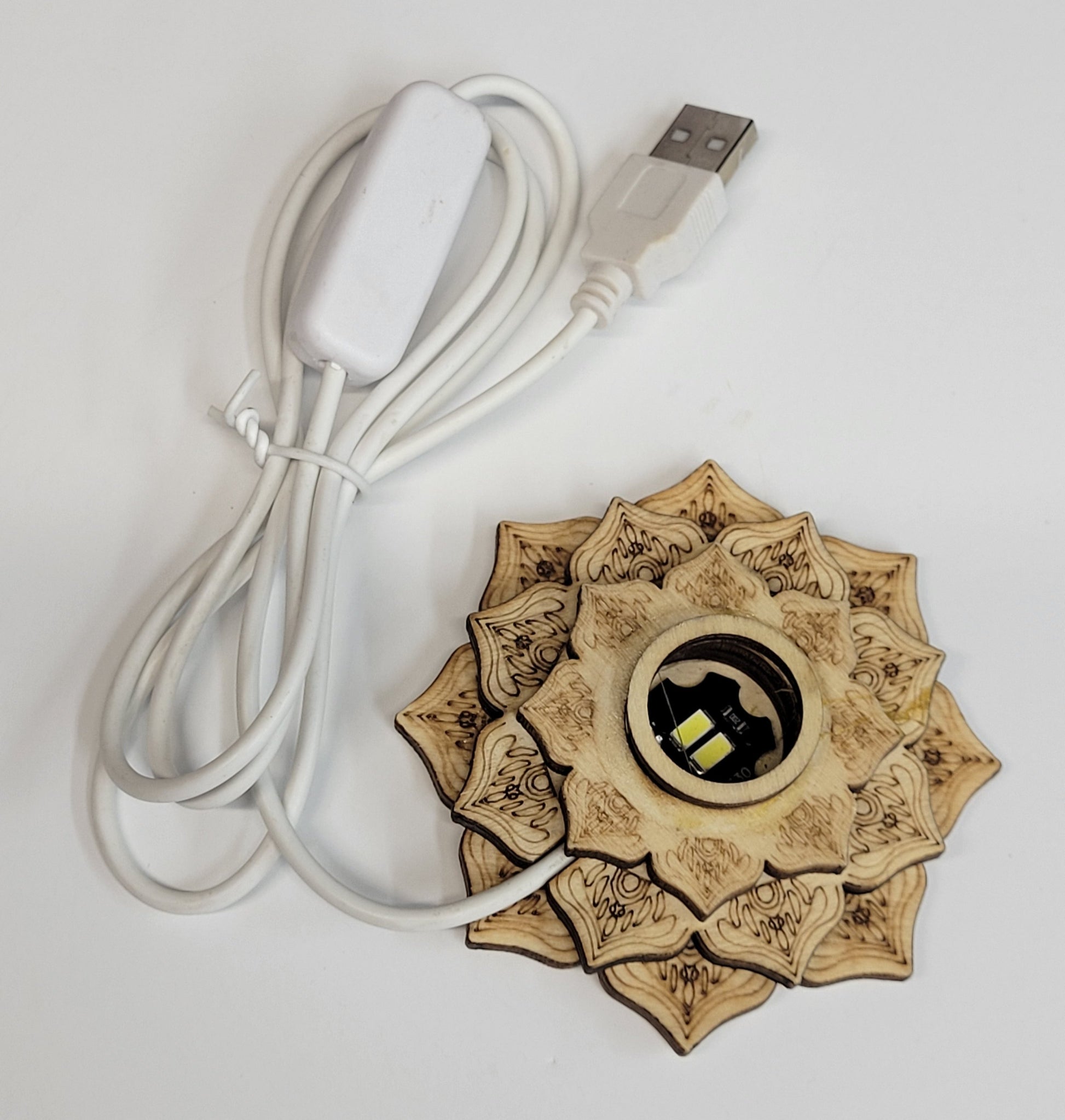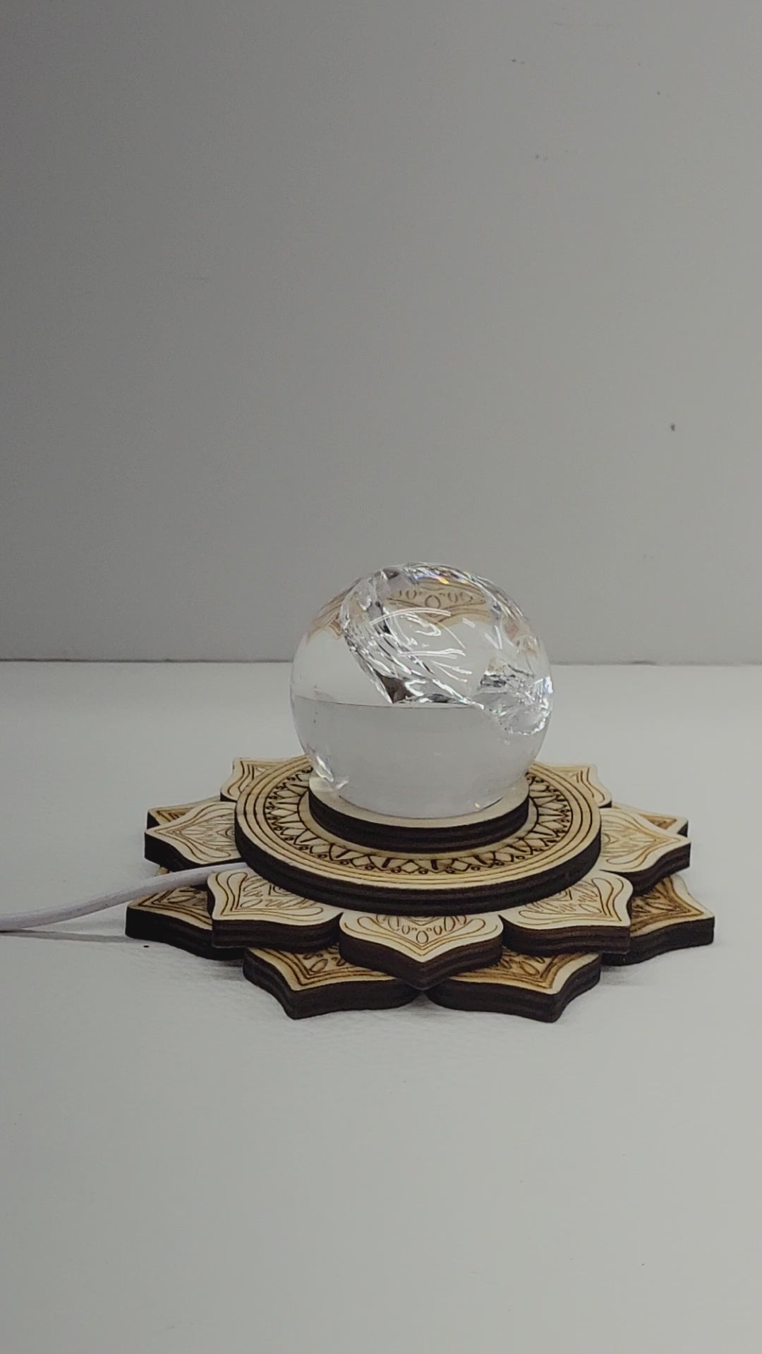 Lighted sphere stand in the shape of a Lotus flower. USB plug.
