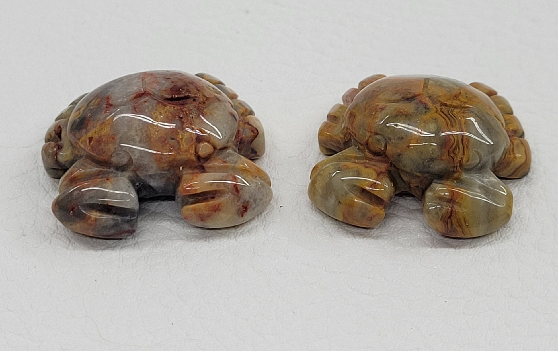 Mini/small crab carvings in a variety of materials. Each crab measures 1"x1".