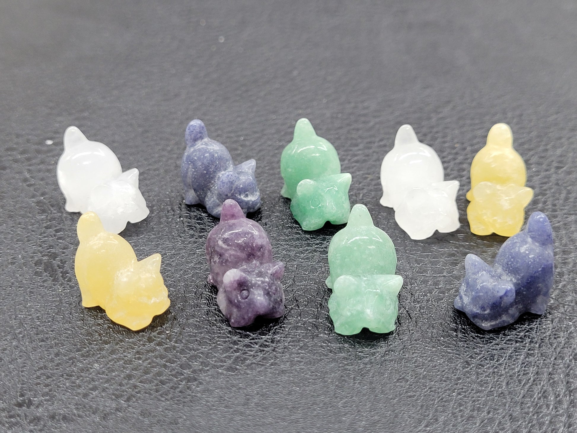 Colorful mini playful cat will be randomly chosen and similar to the picture. Choose from Blue Aventurine, Green Aventurine, Orange Calcite, Lepidolite or Rose Quartz