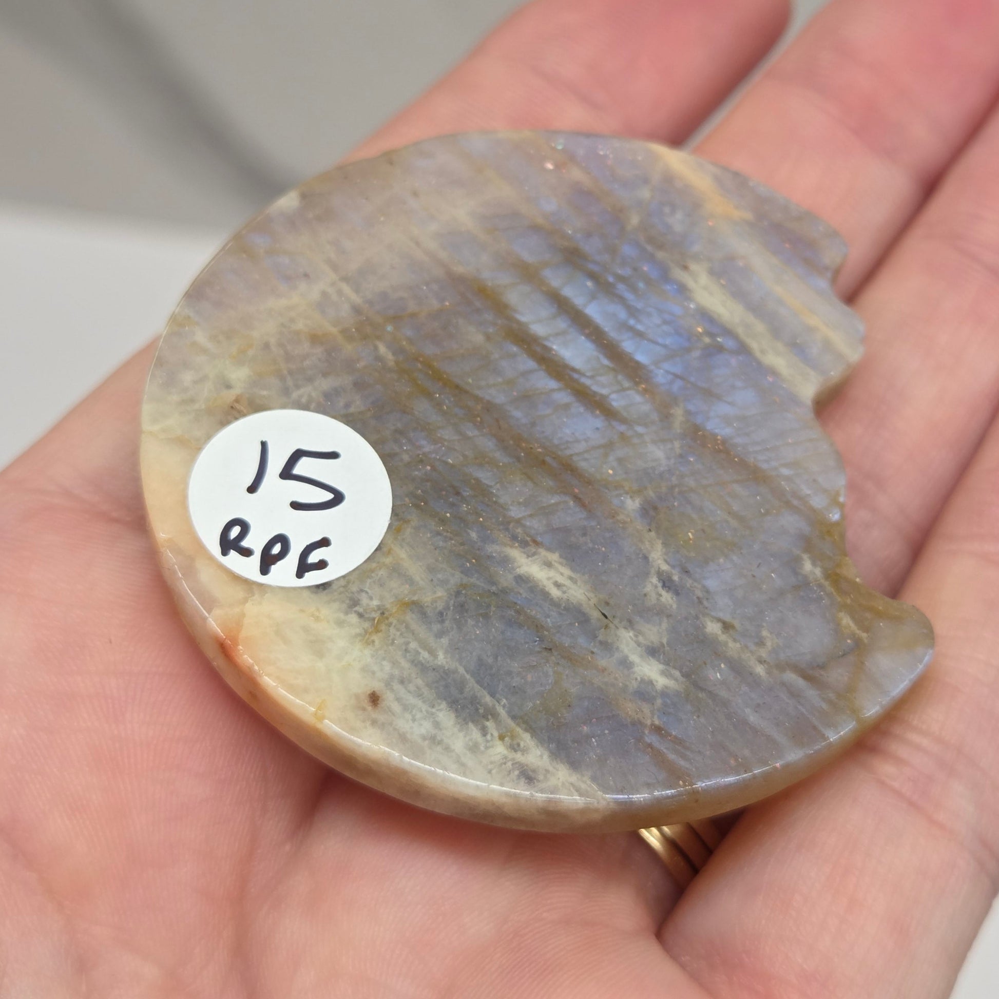 Moonstone, also known as Hecatolite (from goddess Hecate), is an aluminum, potassium, sodium, silicate (alkali), feldspar mineral. The body color can range from colorless to gray, brown, yellow, green, or pink. The clarity ranges from transparent to translucent.