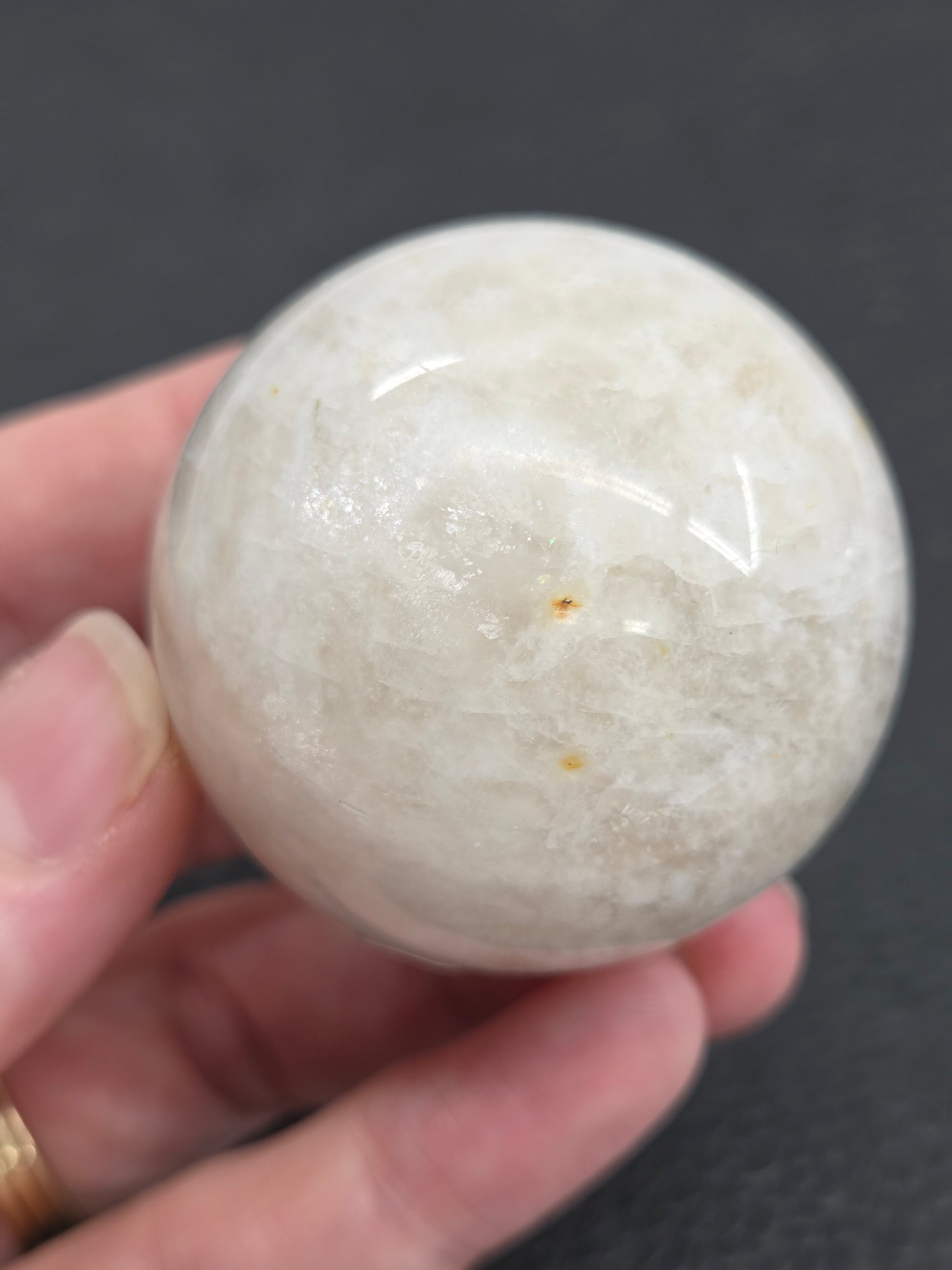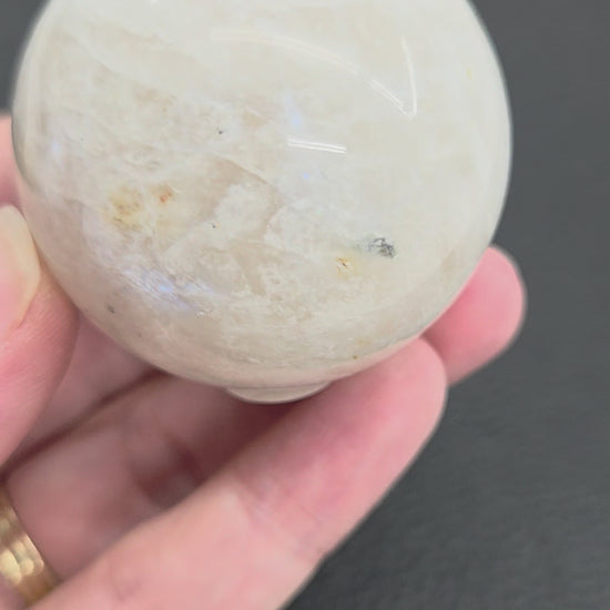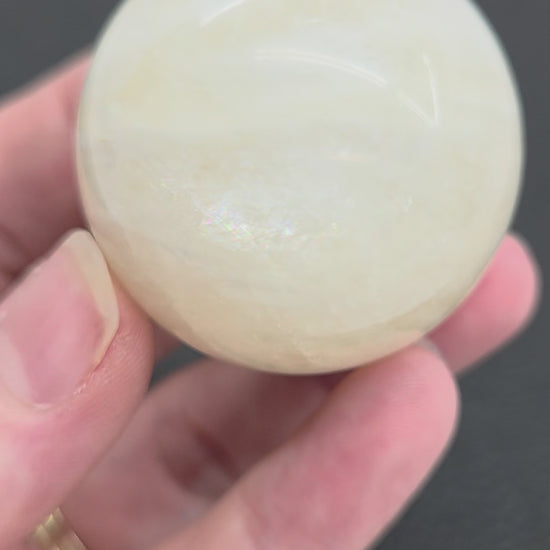 Moonstone is a type of feldspar that comes in several varieties. All moonstone varieties show adularescence, which creates a soft, flowing sheen that moves across the stone's surface. This effect results from light interference caused by alternating internal layers of albite and orthoclase feldspar.