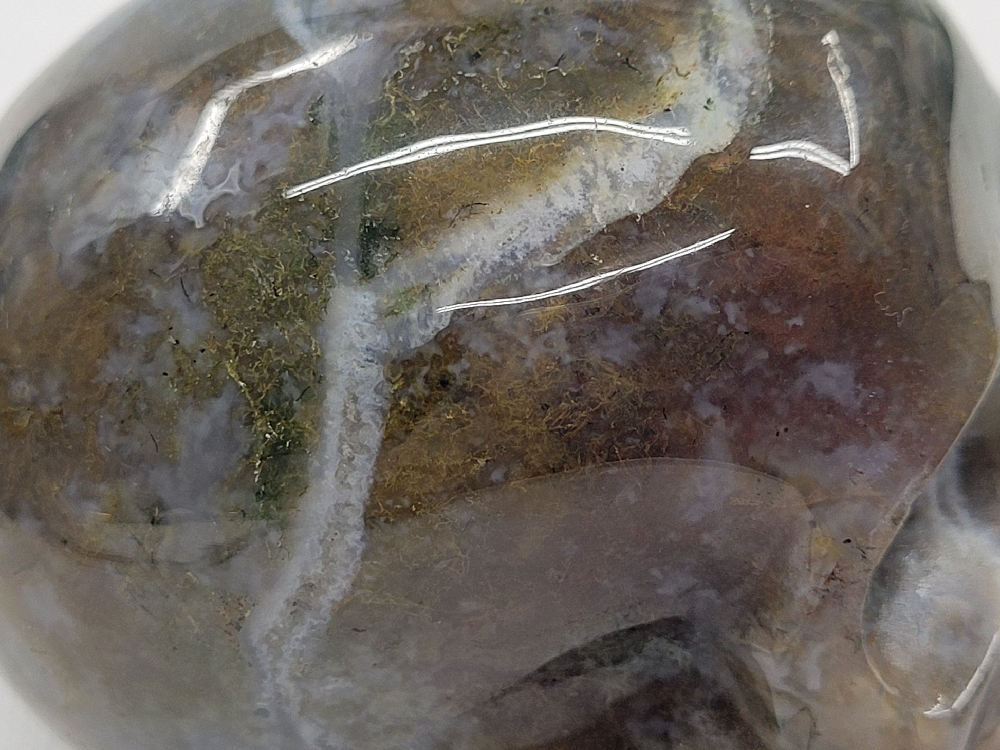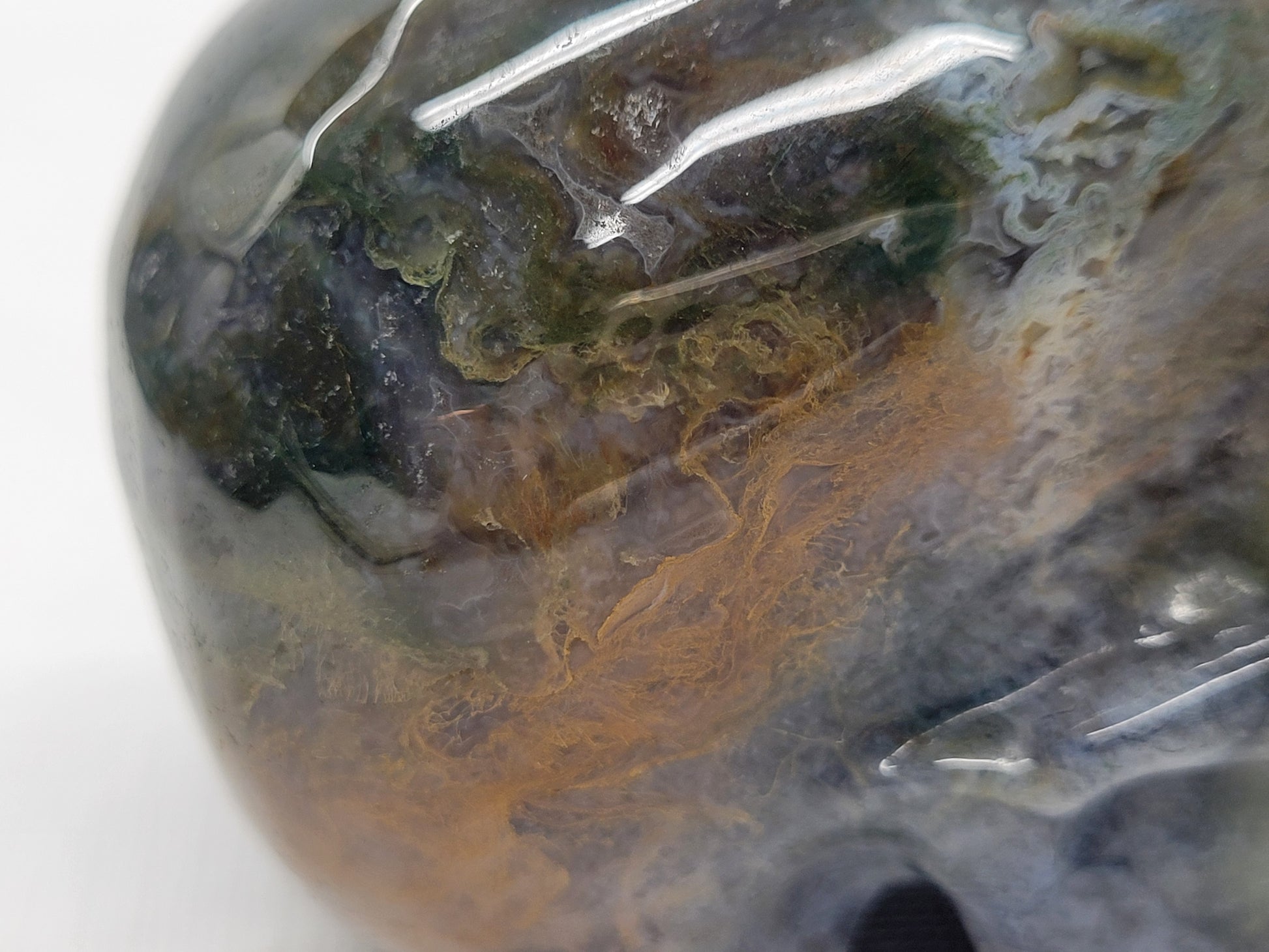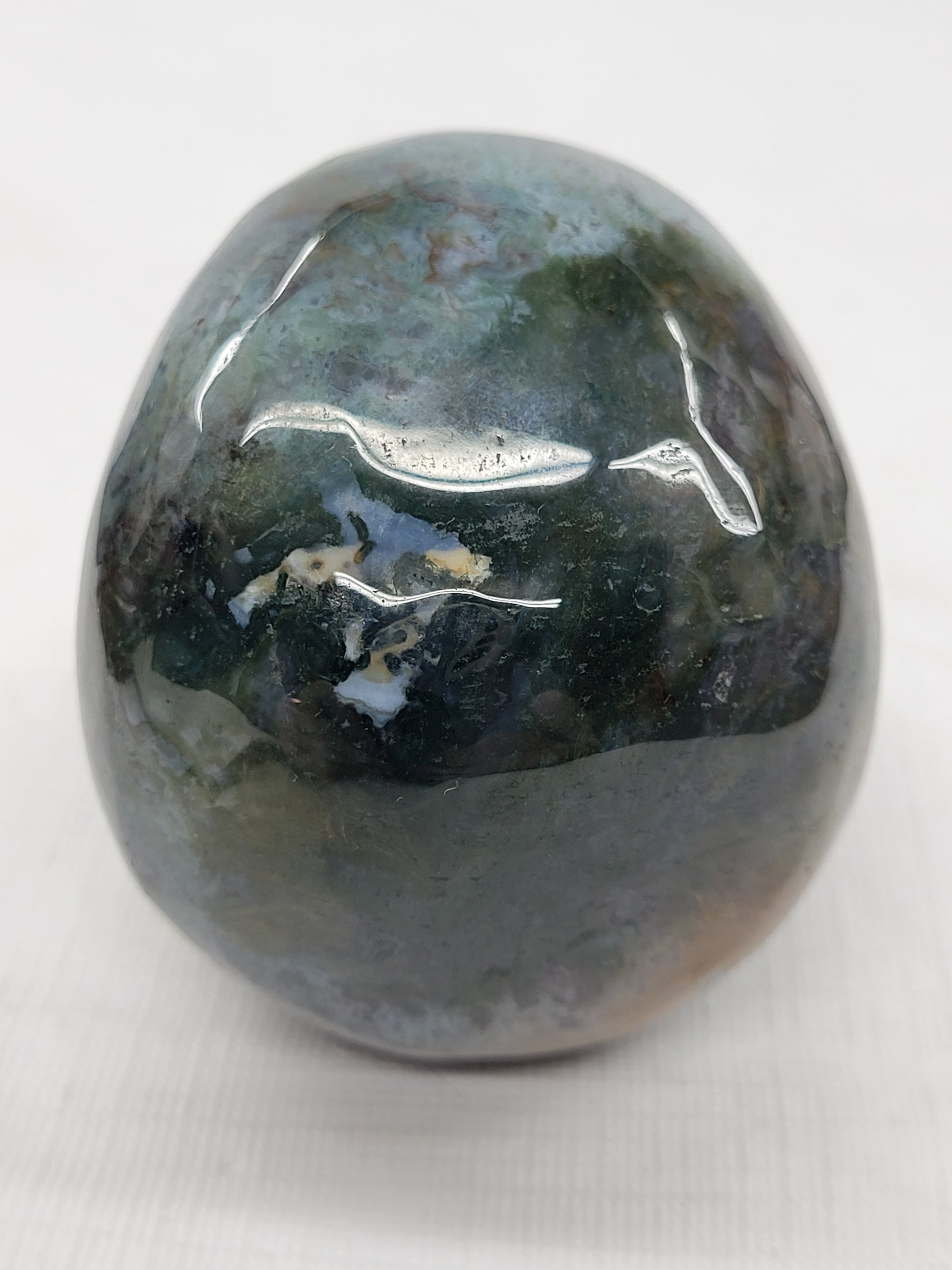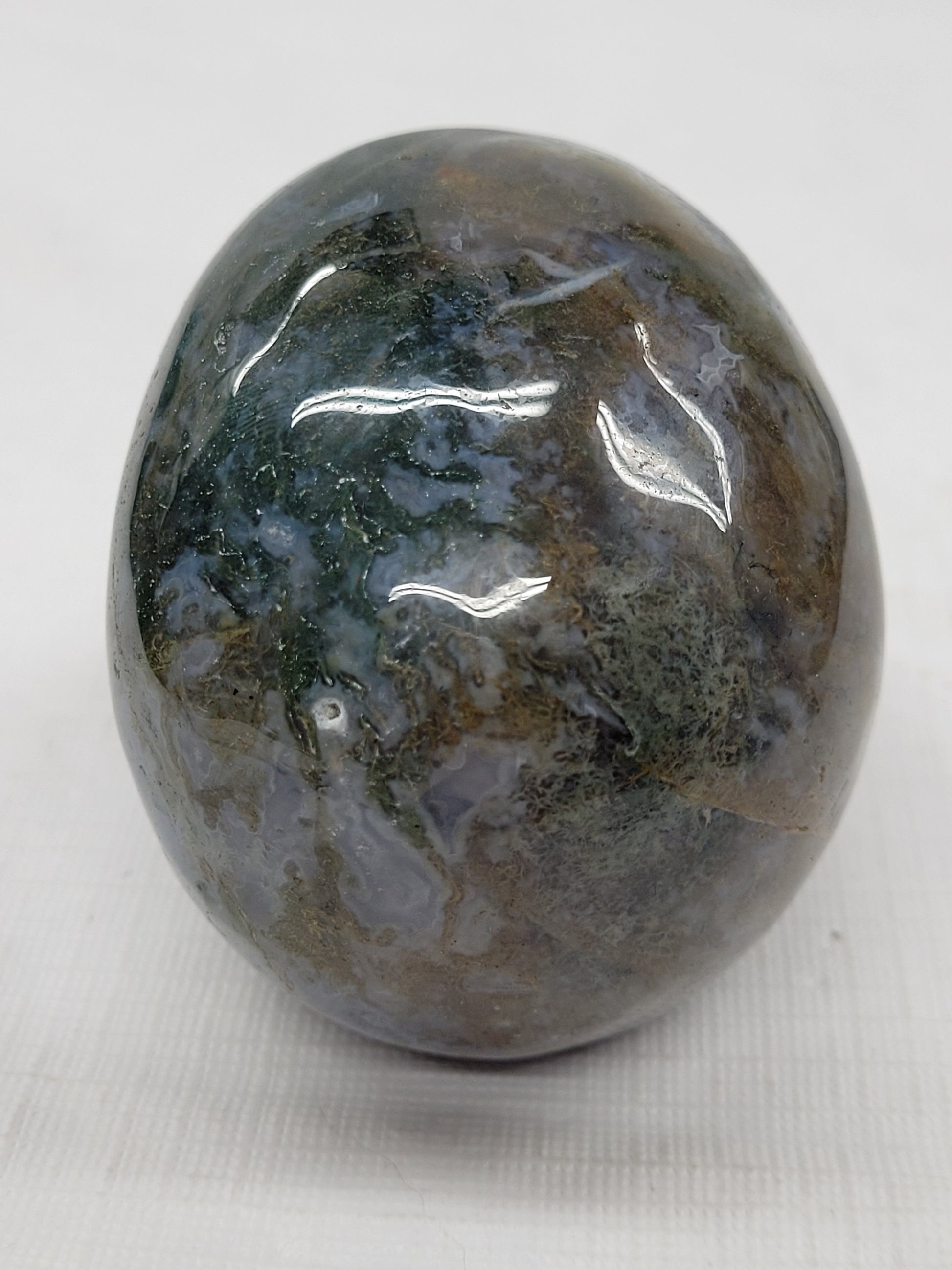 Moss agate isn't actually moss or technically an agate. It is a variety of chalcedony, belonging to the quartz family. The spreading moss-like dendritic inclusions you see in moss agate are mostly oxides of manganese or iron.