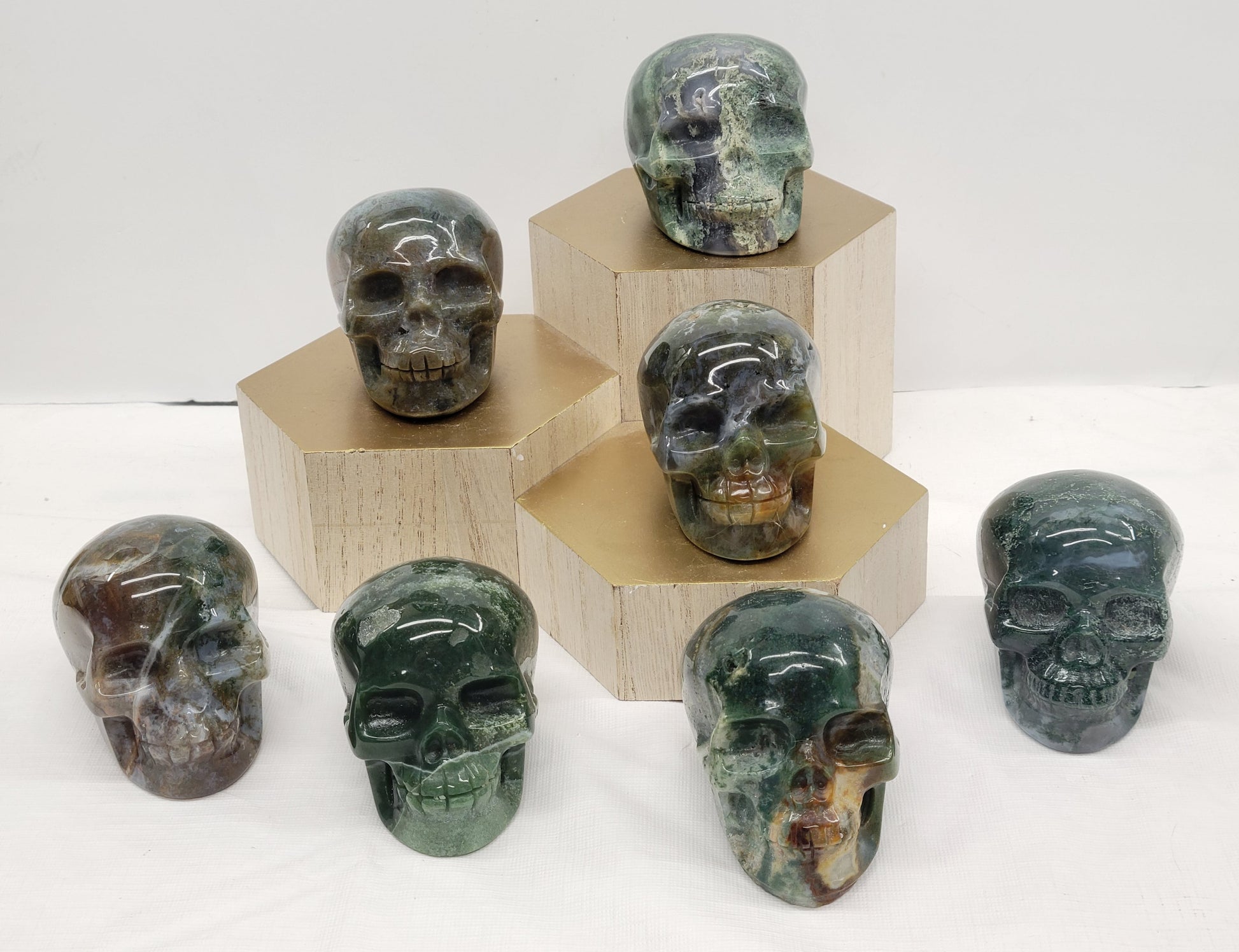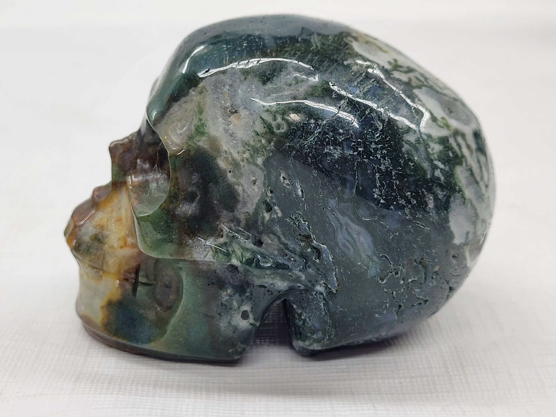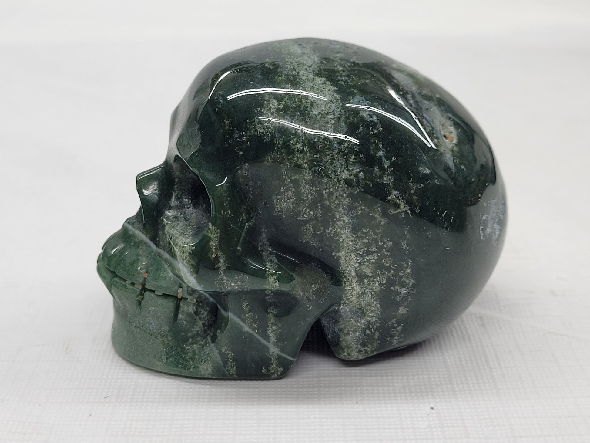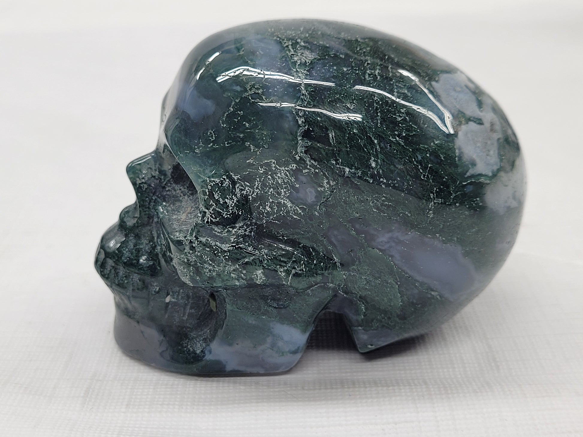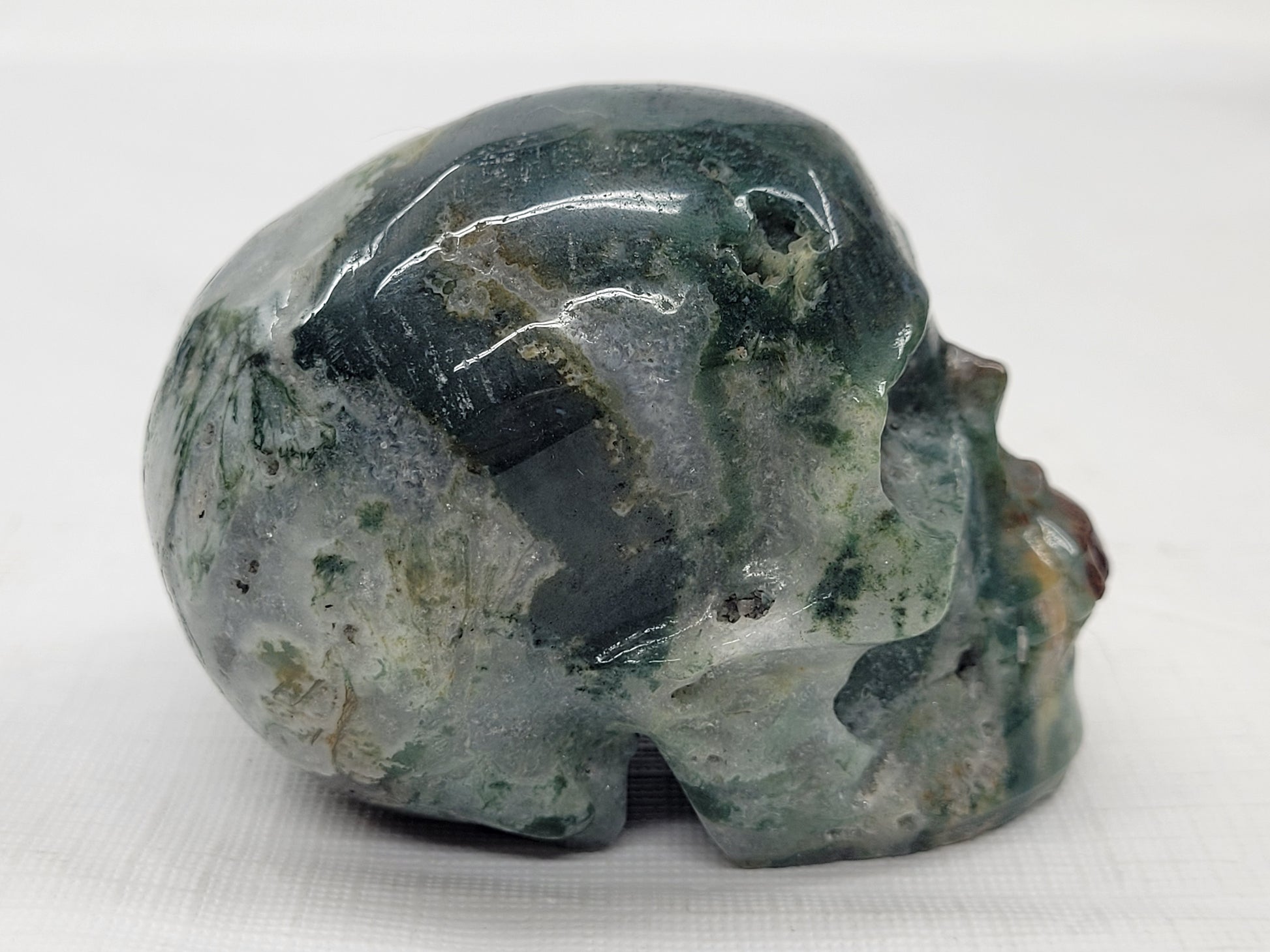 Moss agate isn't actually moss or technically an agate. It is a variety of chalcedony, belonging to the quartz family. The spreading moss-like dendritic inclusions you see in moss agate are mostly oxides of manganese or iron.