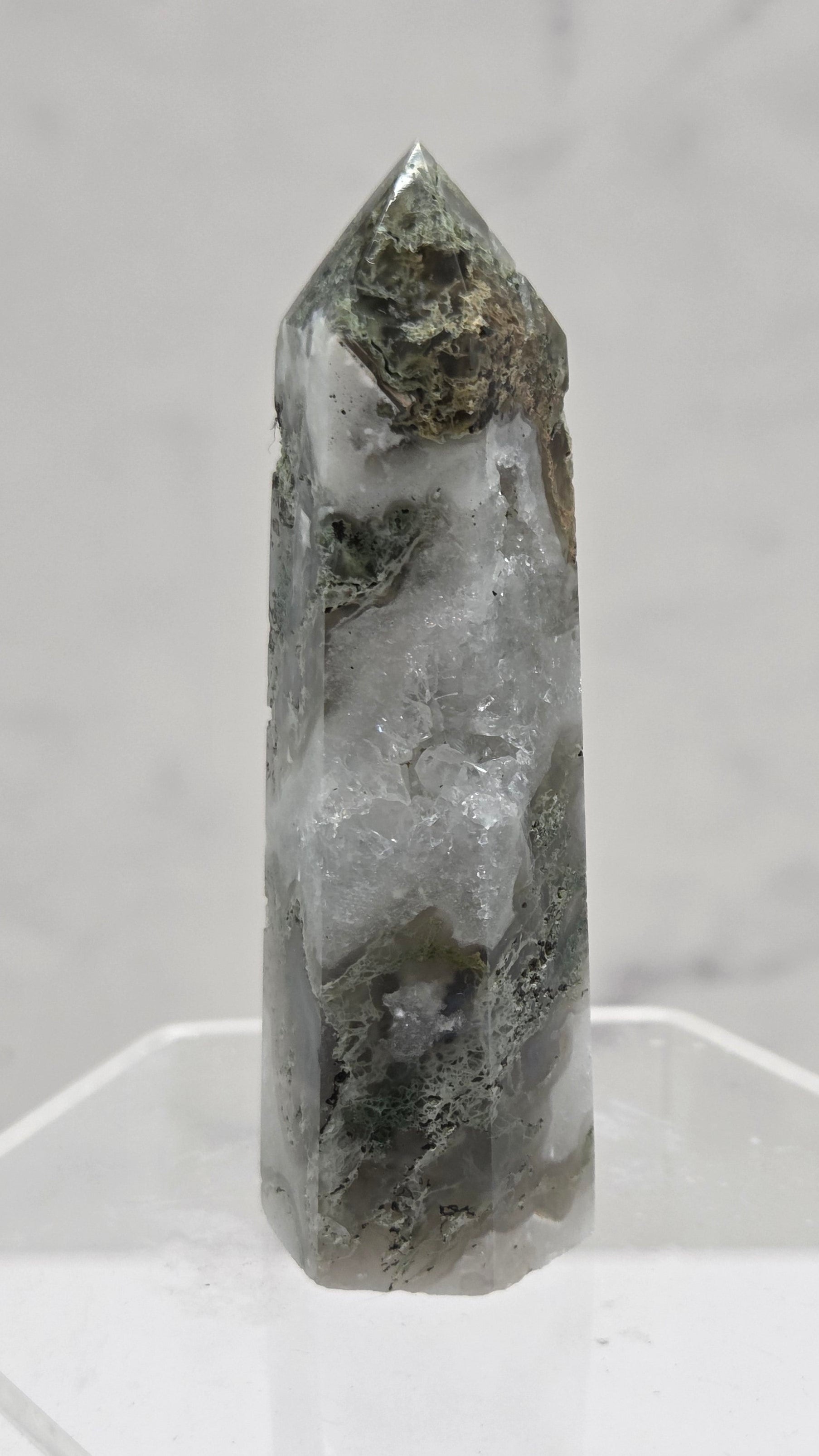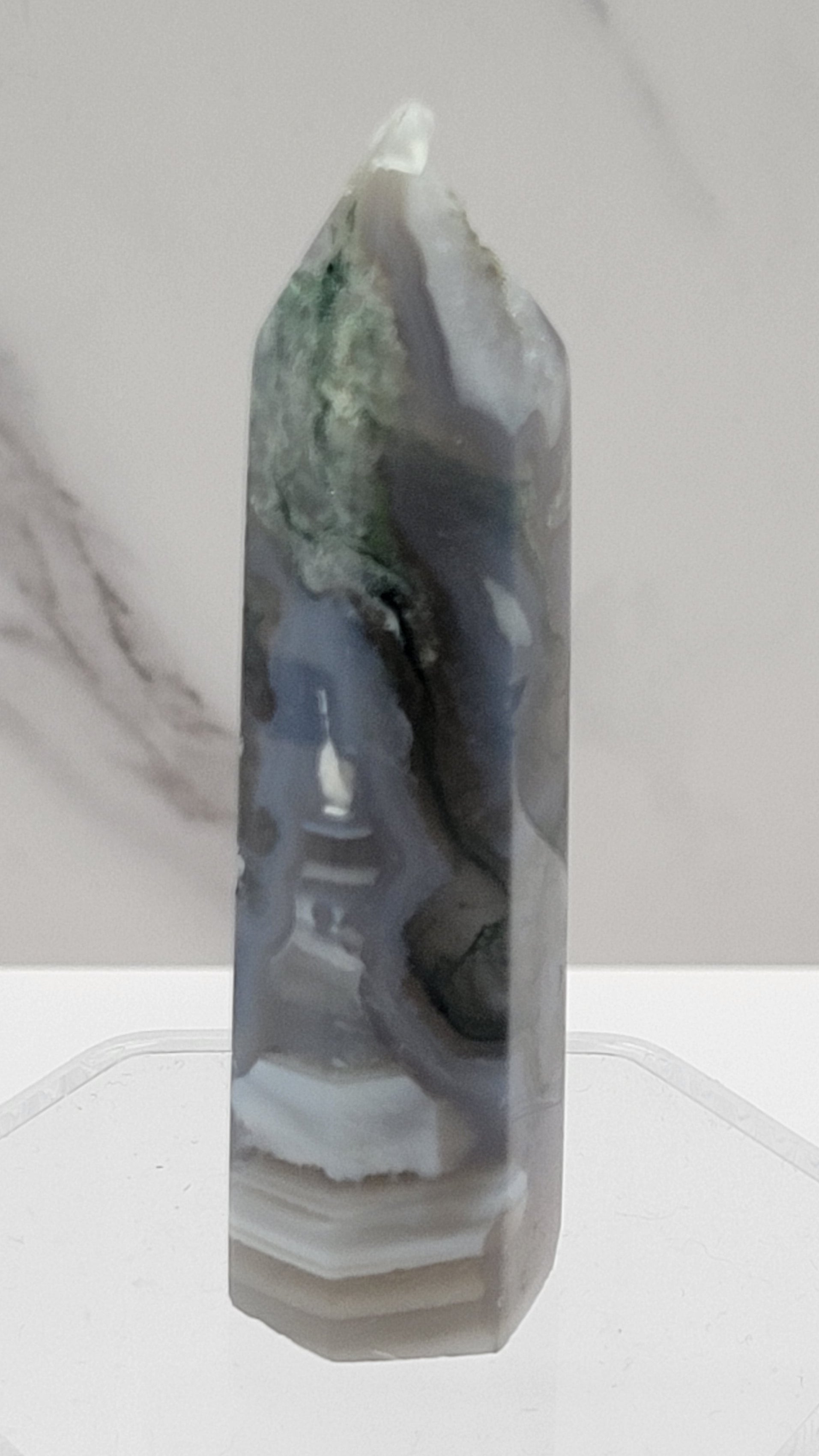 Moss agate isn't actually moss or technically an agate. It is a variety of chalcedony, belonging to the quartz family. The spreading moss-like dendritic inclusions you see in moss agate are mostly oxides of manganese or iron.