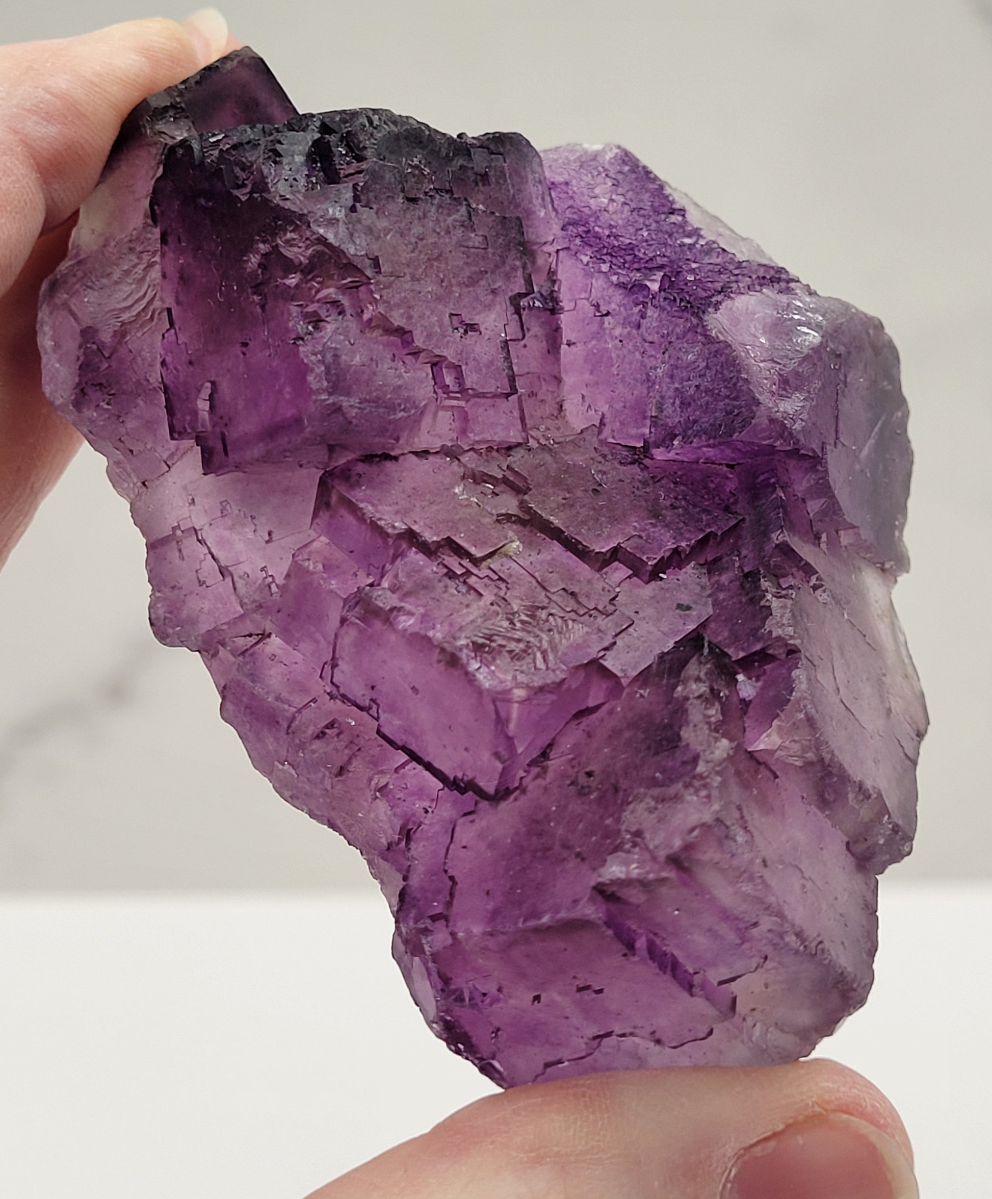 Muzquiz fluorite crystals display a distinctive "stepped" or "cityscape" growth pattern on their faces, The unique appearance and rarity of Muzquiz fluorite make it a prized specimen among mineral collectors.