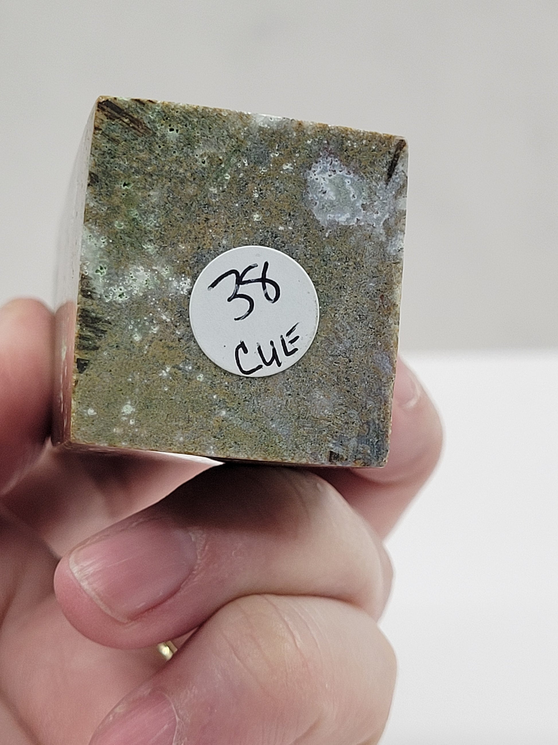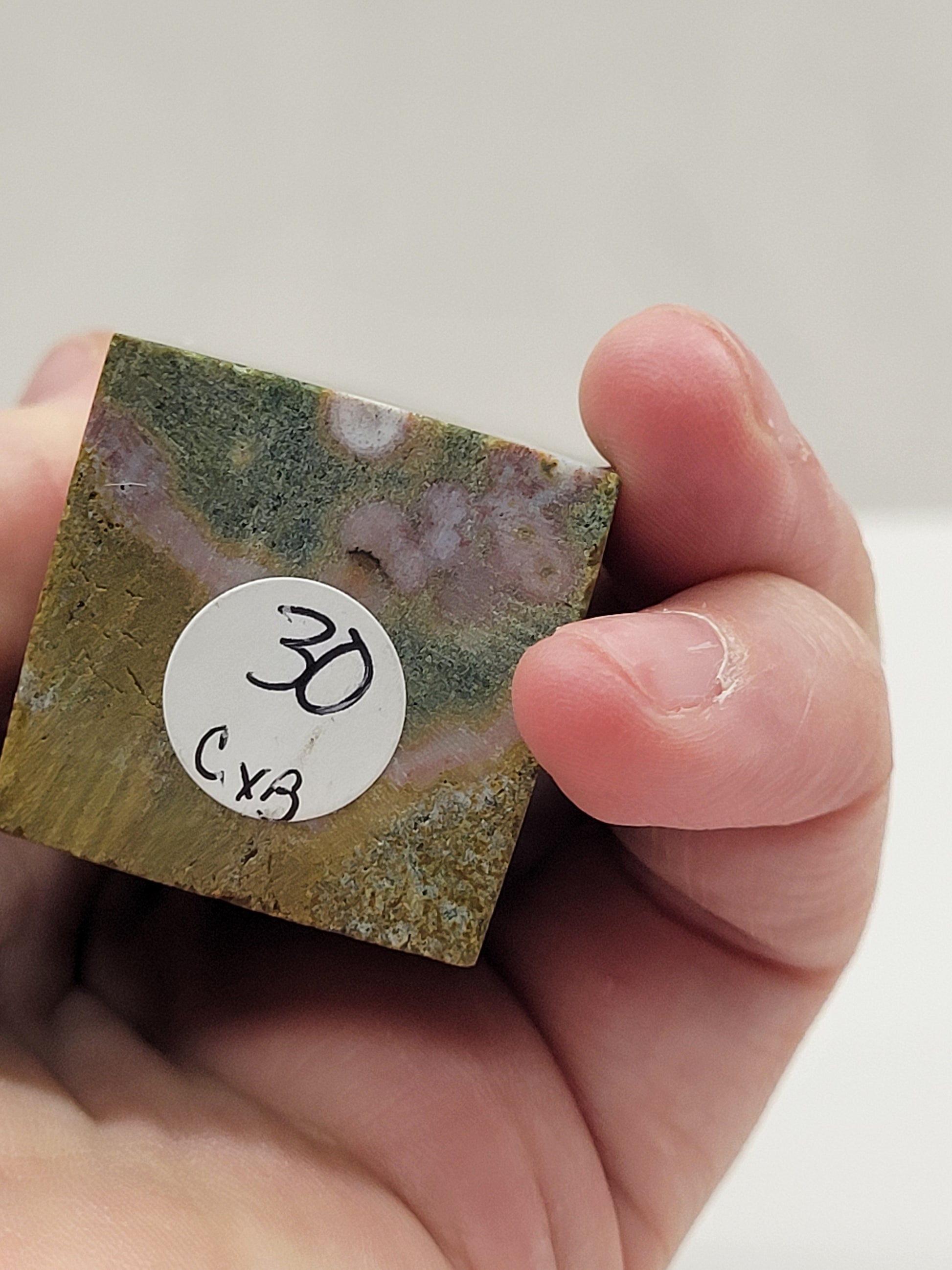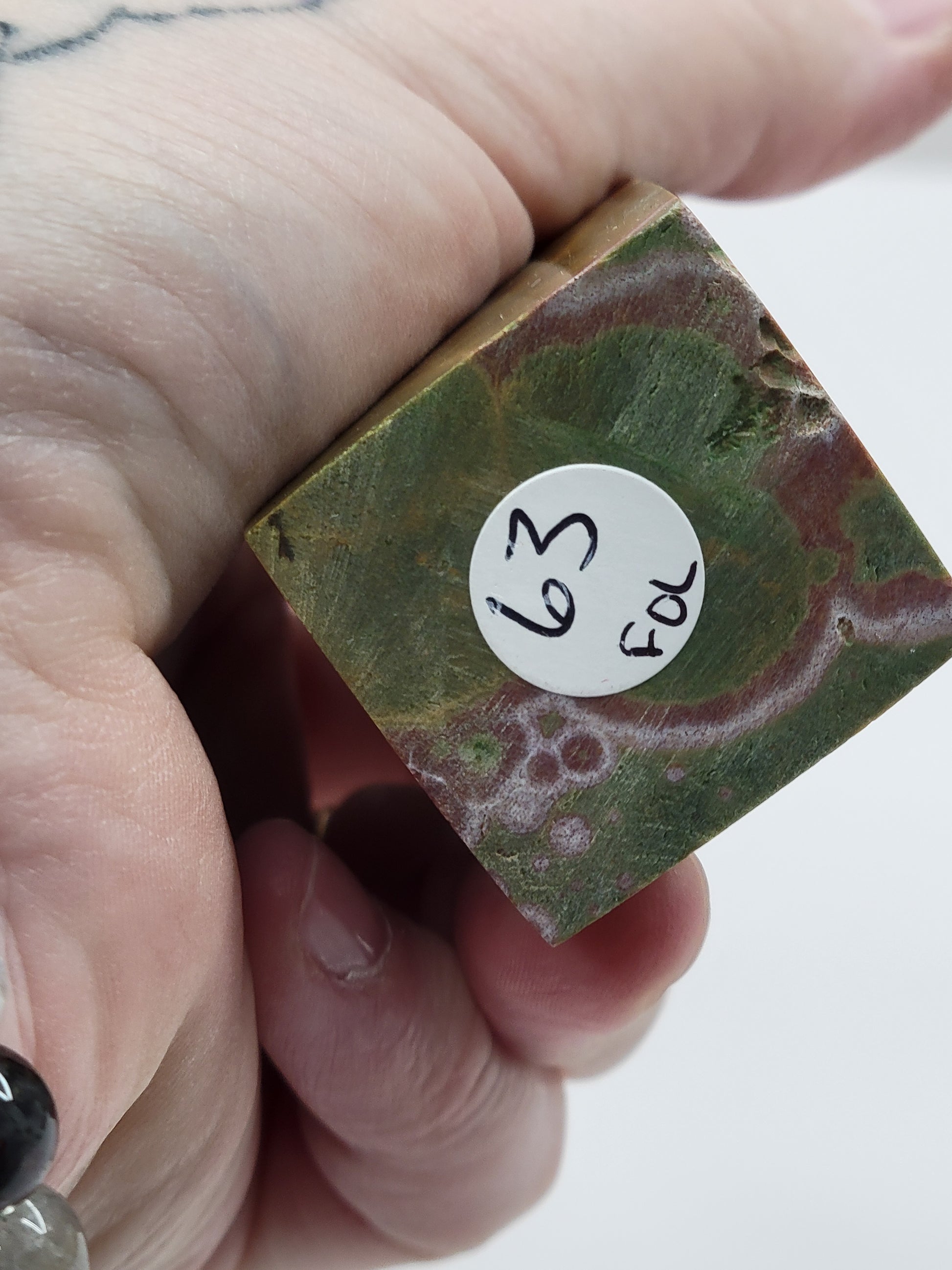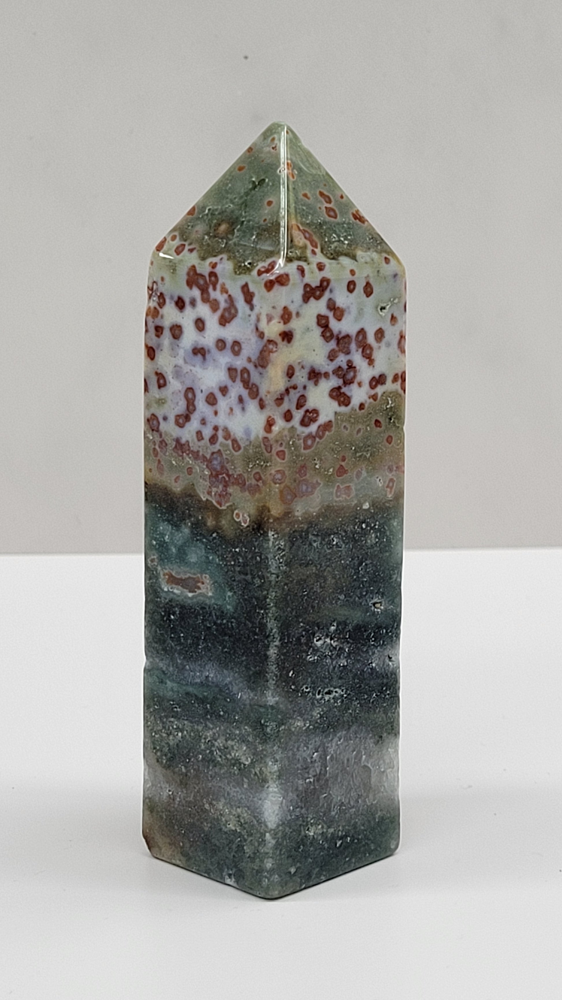 Ocean Jasper, rare variety of Jasper, a silicon dioxide mineral, and a member of the Quartz family. Its defined by circular “orb” like patterns that can be seen as green, brown, blue, yellow, grey, white, pink or red.