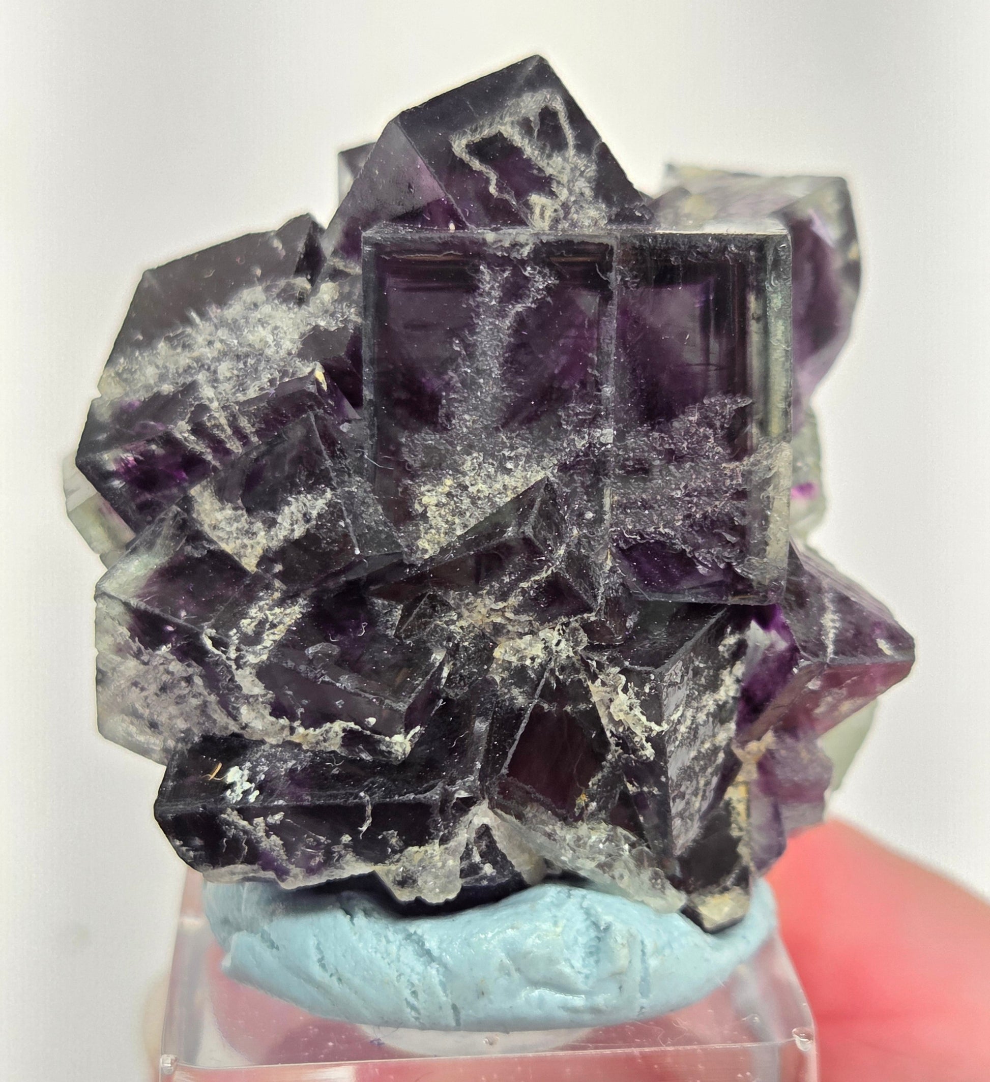 Red Vein pocket - Okorusu fluorite is a type of fluorite mineral from the famous Okorusu Mine in Namibia, renowned for its vibrant and complex colors, sharp cubic crystals, and striking internal phantoms. The specimens often feature a vivid combination of colors, such as purple, green, and colorless, with a translucent quality that can make them glow under backlighting. These minerals are highly sought after by collectors for their aesthetic appeal, especially the "ghostly" layered phantoms visible within the crystals