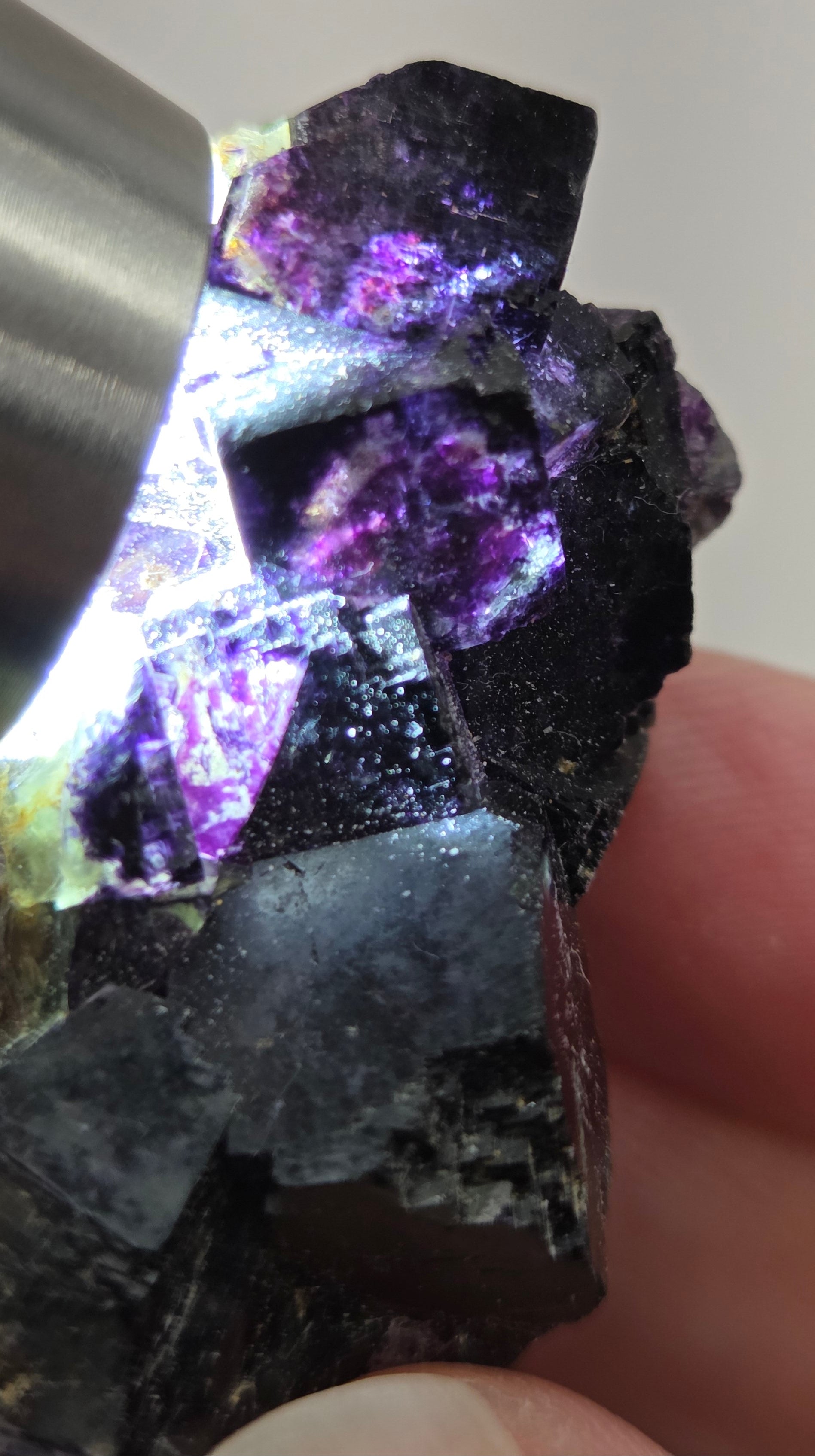 Okorusu fluorite is a type of fluorite mineral from the famous Okorusu Mine in Namibia, renowned for its vibrant and complex colors, sharp cubic crystals, and striking internal phantoms. The specimens often feature a vivid combination of colors, such as purple, green, and colorless, with a translucent quality that can make them glow under backlighting. These minerals are highly sought after by collectors for their aesthetic appeal, especially the "ghostly" layered phantoms visible within the crystals