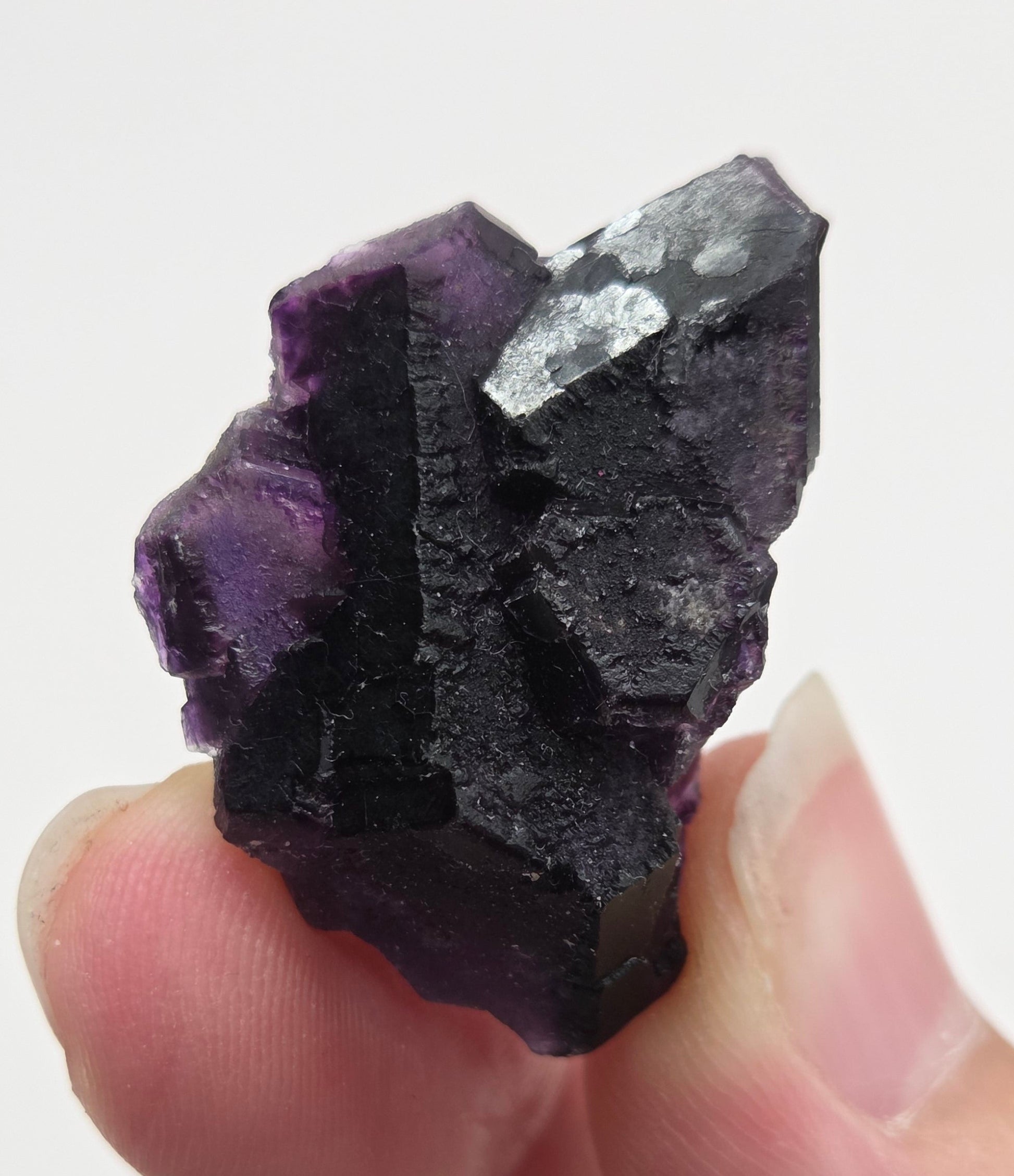 Okorusu fluorite is a type of fluorite mineral from the famous Okorusu Mine in Namibia, renowned for its vibrant and complex colors, sharp cubic crystals, and striking internal phantoms. The specimens often feature a vivid combination of colors, such as purple, green, and colorless, with a translucent quality that can make them glow under backlighting. These minerals are highly sought after by collectors for their aesthetic appeal, especially the "ghostly" layered phantoms visible within the crystals