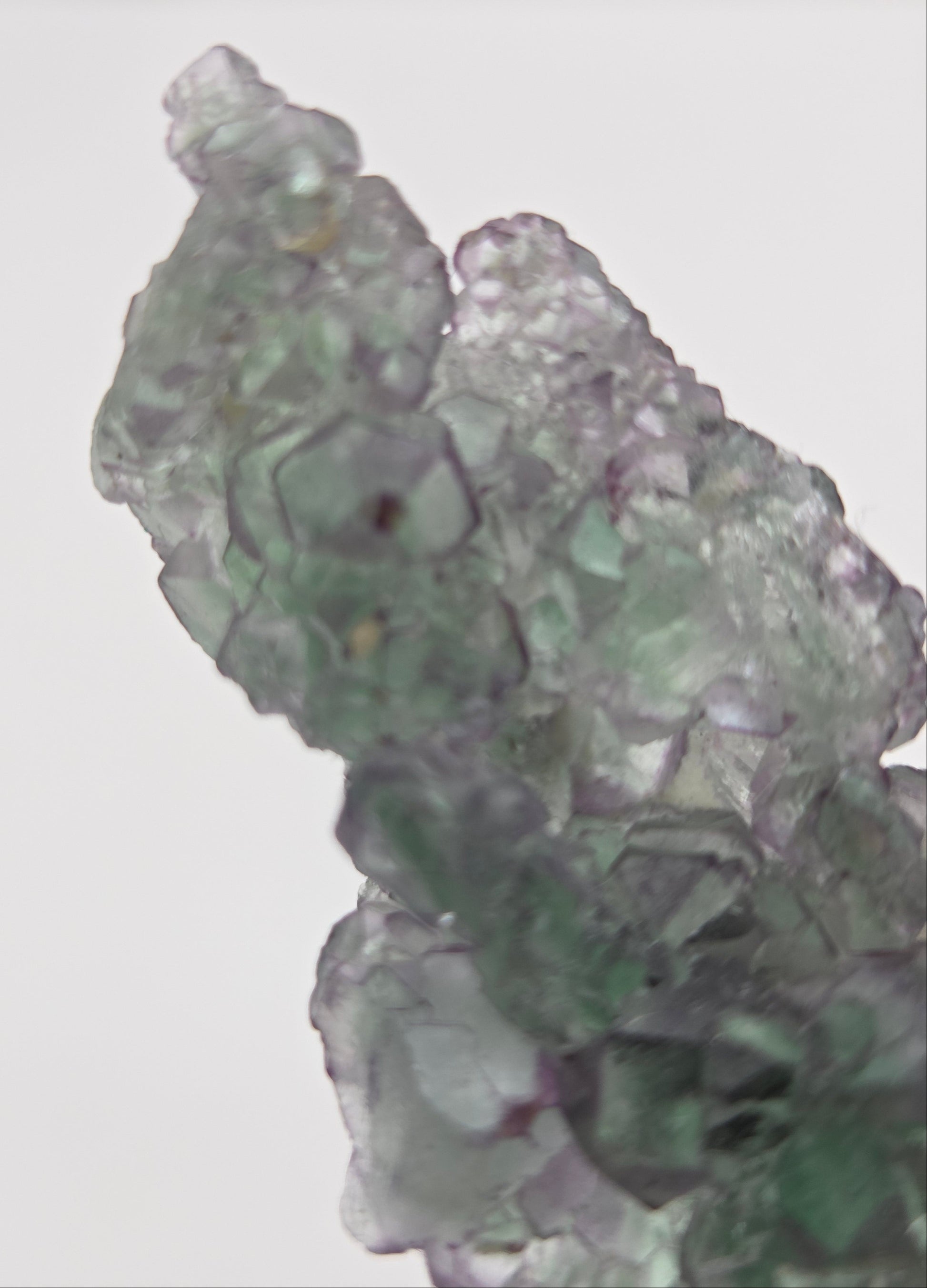 Okorusu fluorite is a type of fluorite mineral from the famous Okorusu Mine in Namibia, renowned for its vibrant and complex colors, sharp cubic crystals, and striking internal phantoms. The specimens often feature a vivid combination of colors, such as purple, green, and colorless, with a translucent quality that can make them glow under backlighting. These minerals are highly sought after by collectors for their aesthetic appeal, especially the "ghostly" layered phantoms visible within the crystals