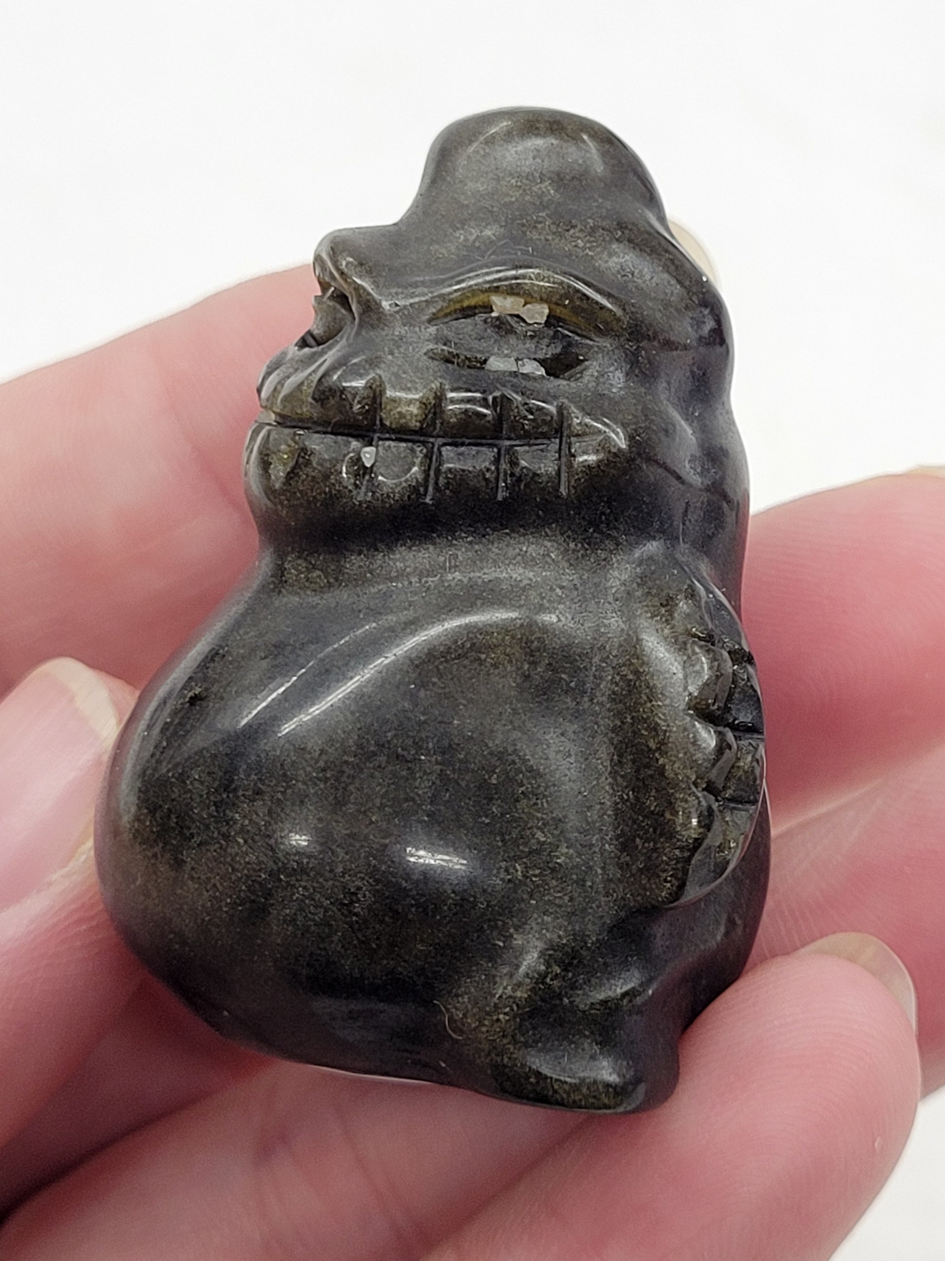 Oogie Boogie carvings in a variety of materials. Each Oogie Boogie measures approx. 1.8" x 1.5"