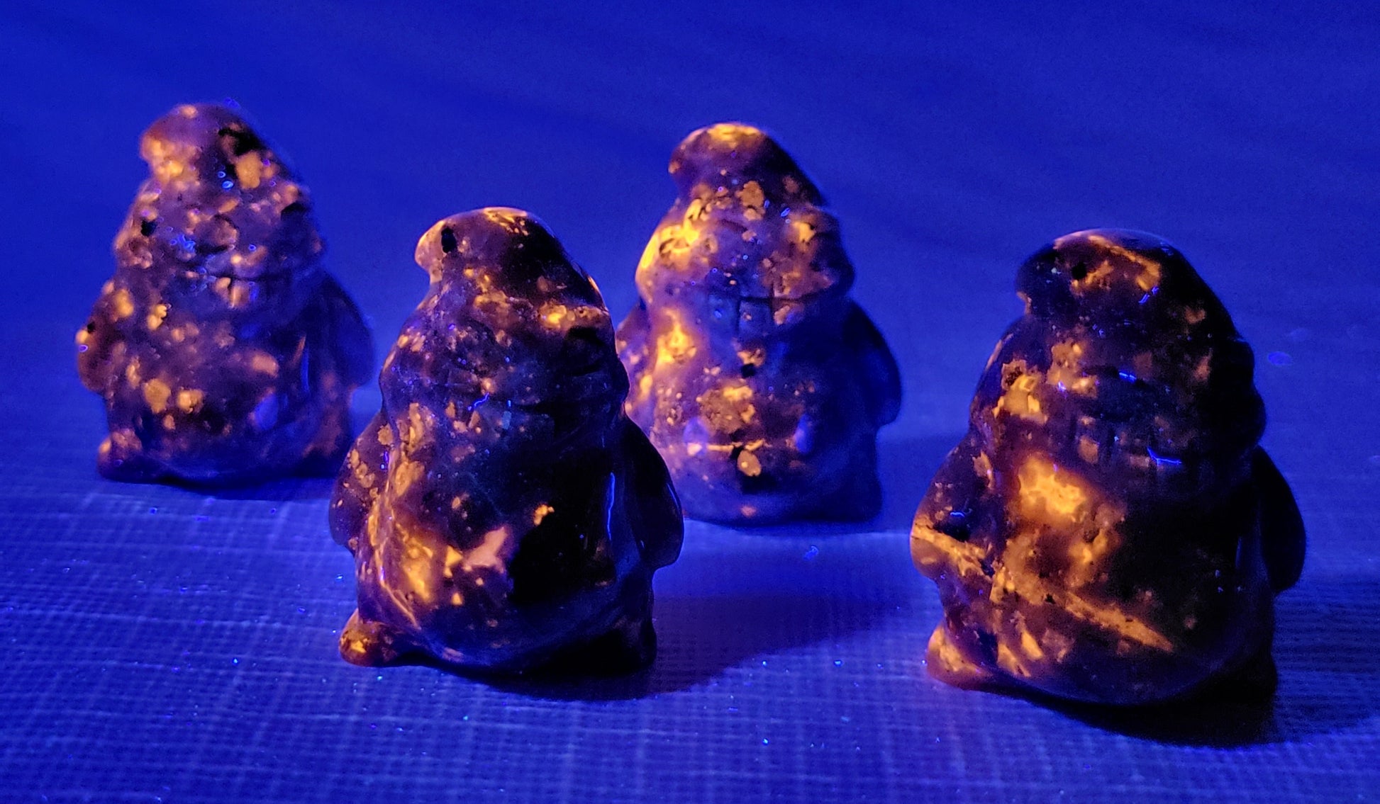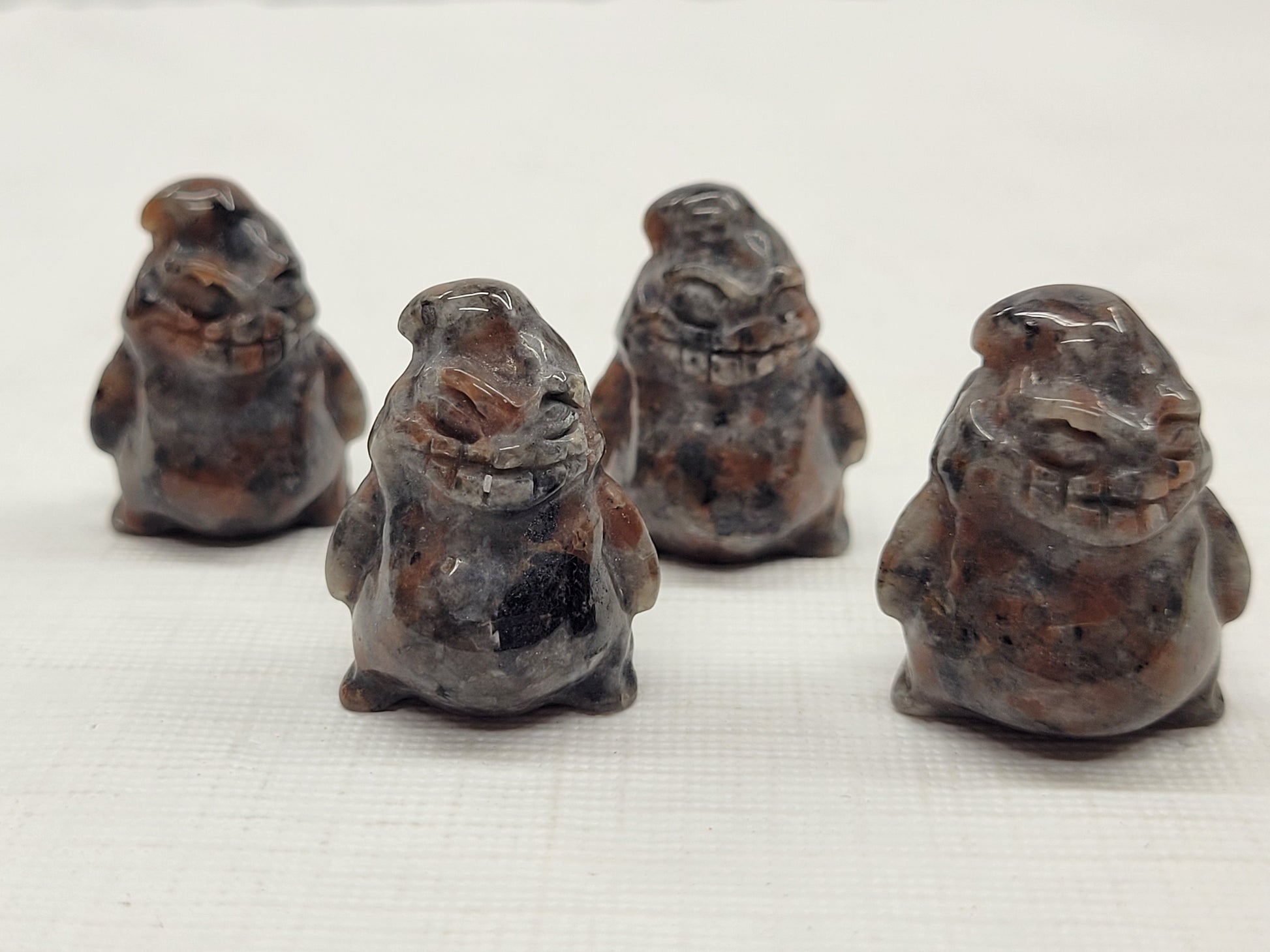 Oogie Boogie carvings in a variety of materials. Each Oogie Boogie measures approx. 1" tall