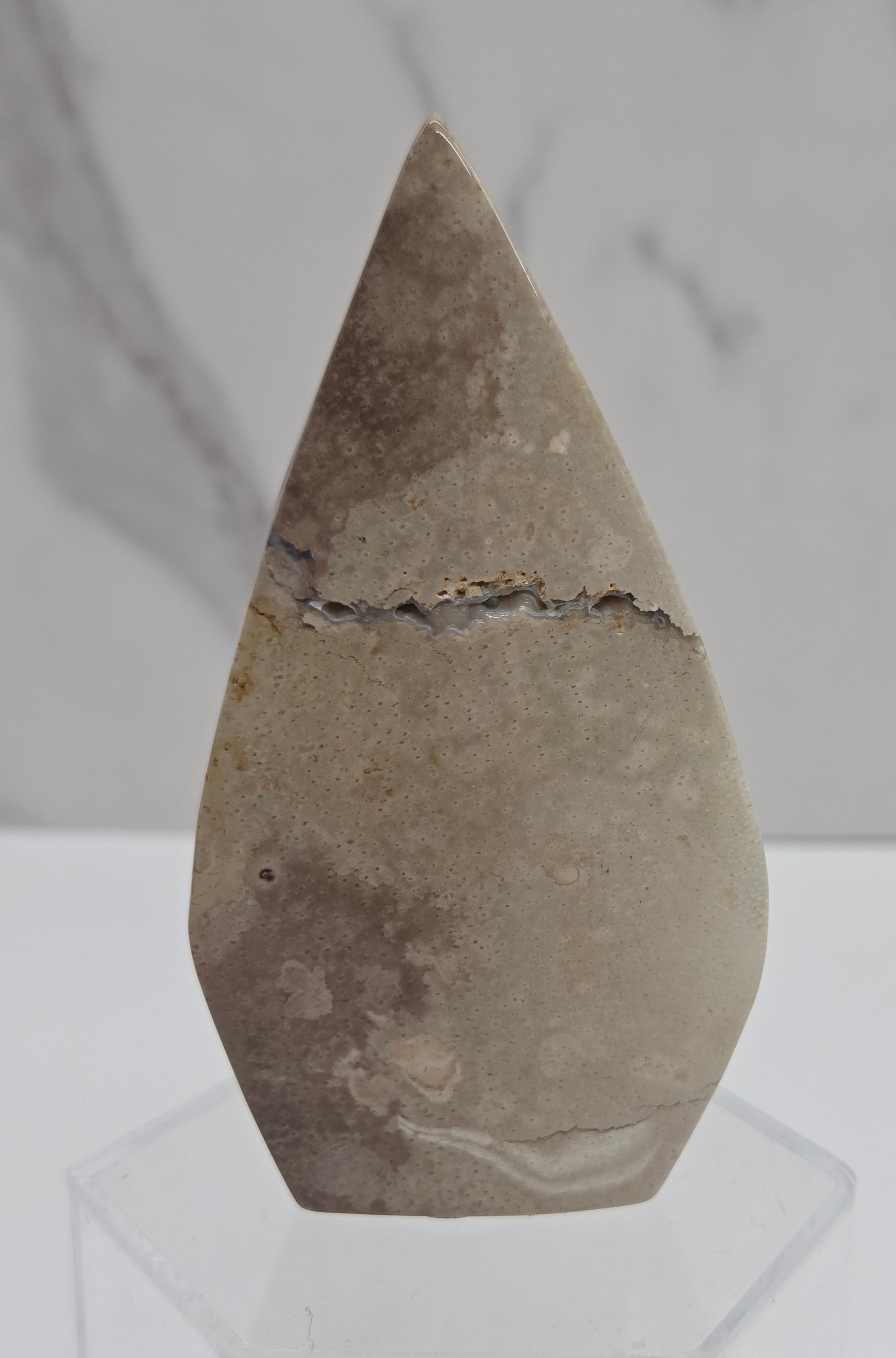 These stones are primarily composed of silica, which over millions of years has replaced the organic matter of the palm roots, resulting in a beautiful and distinctive pattern.
