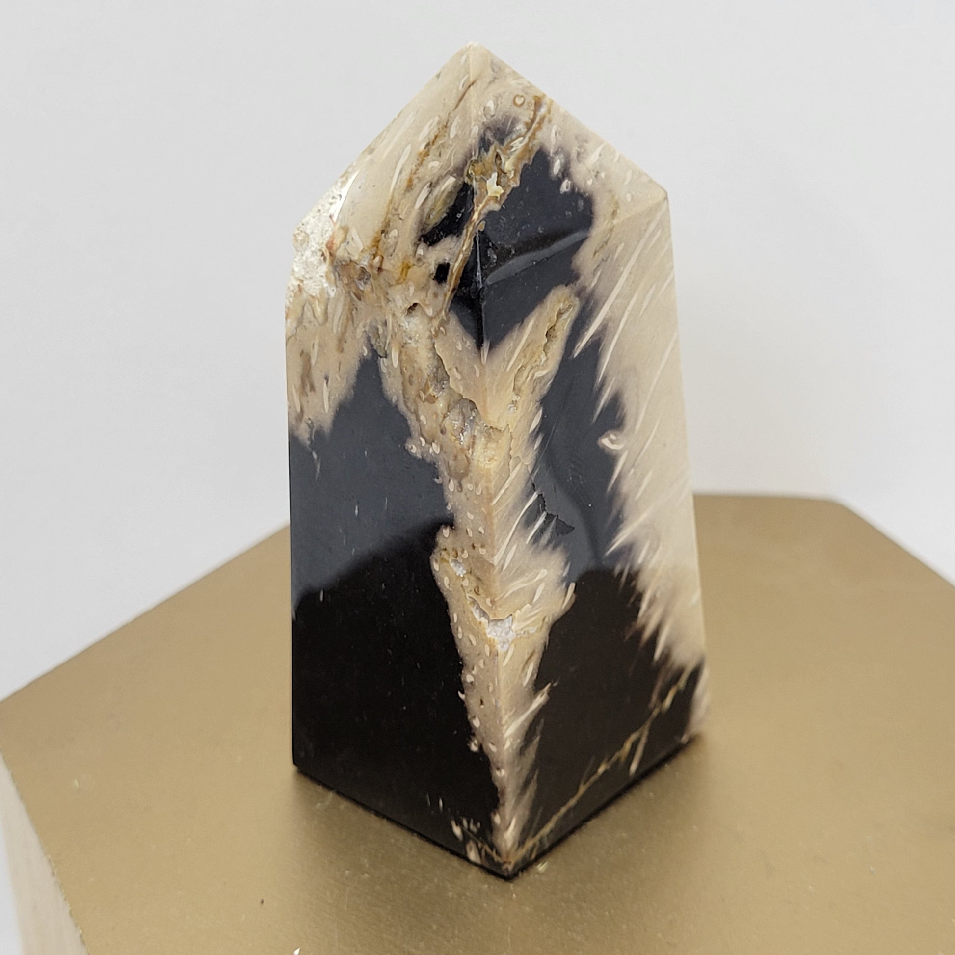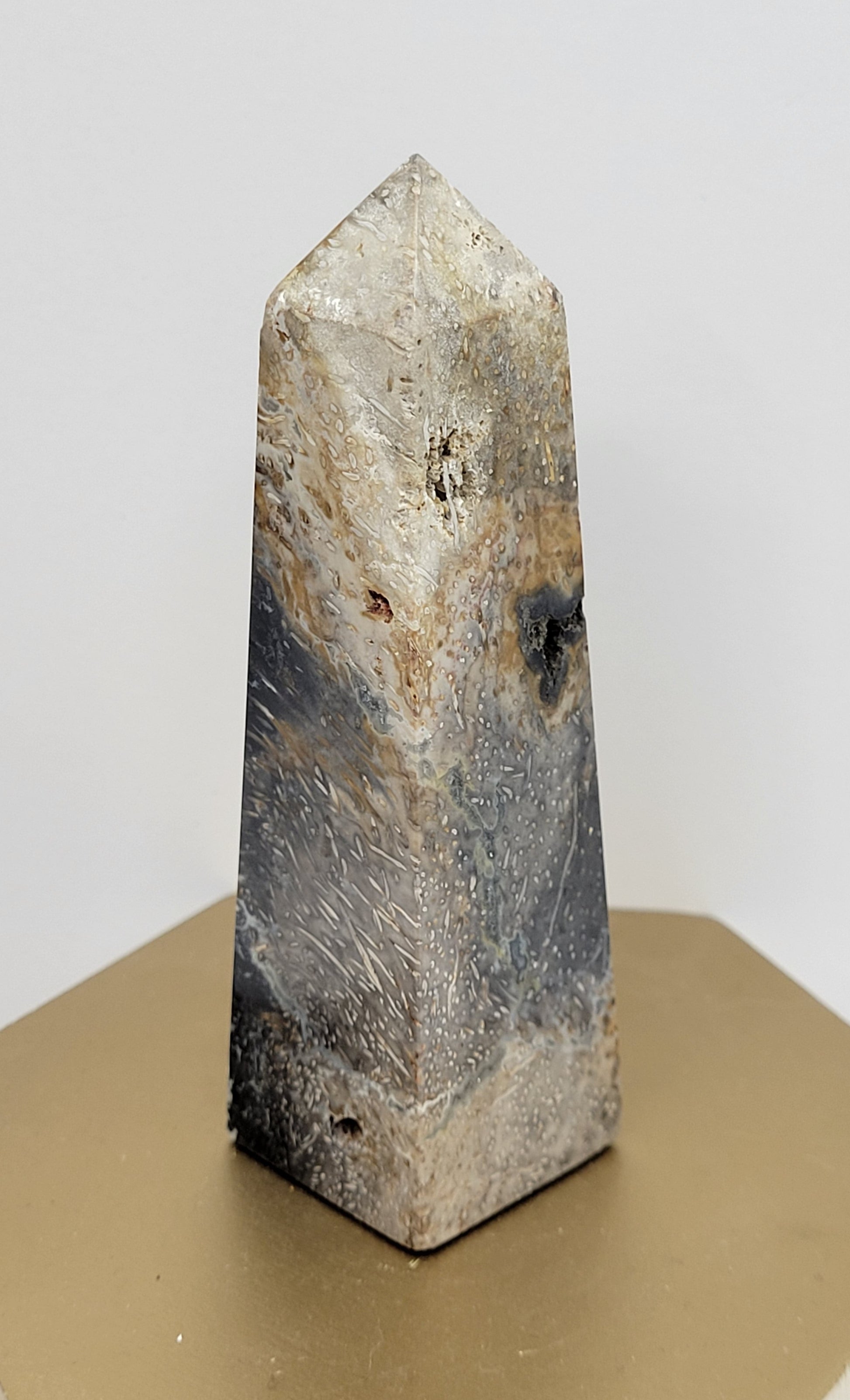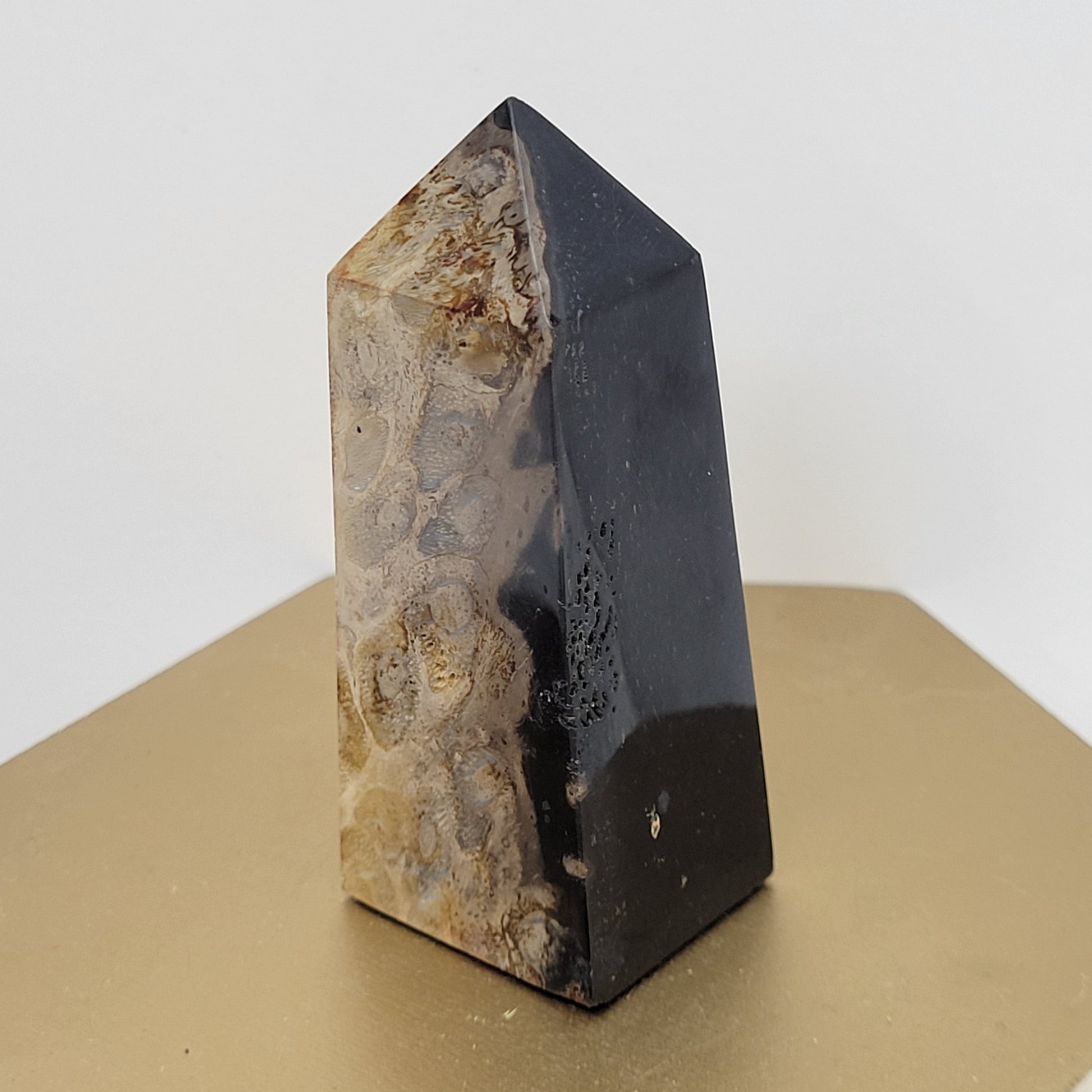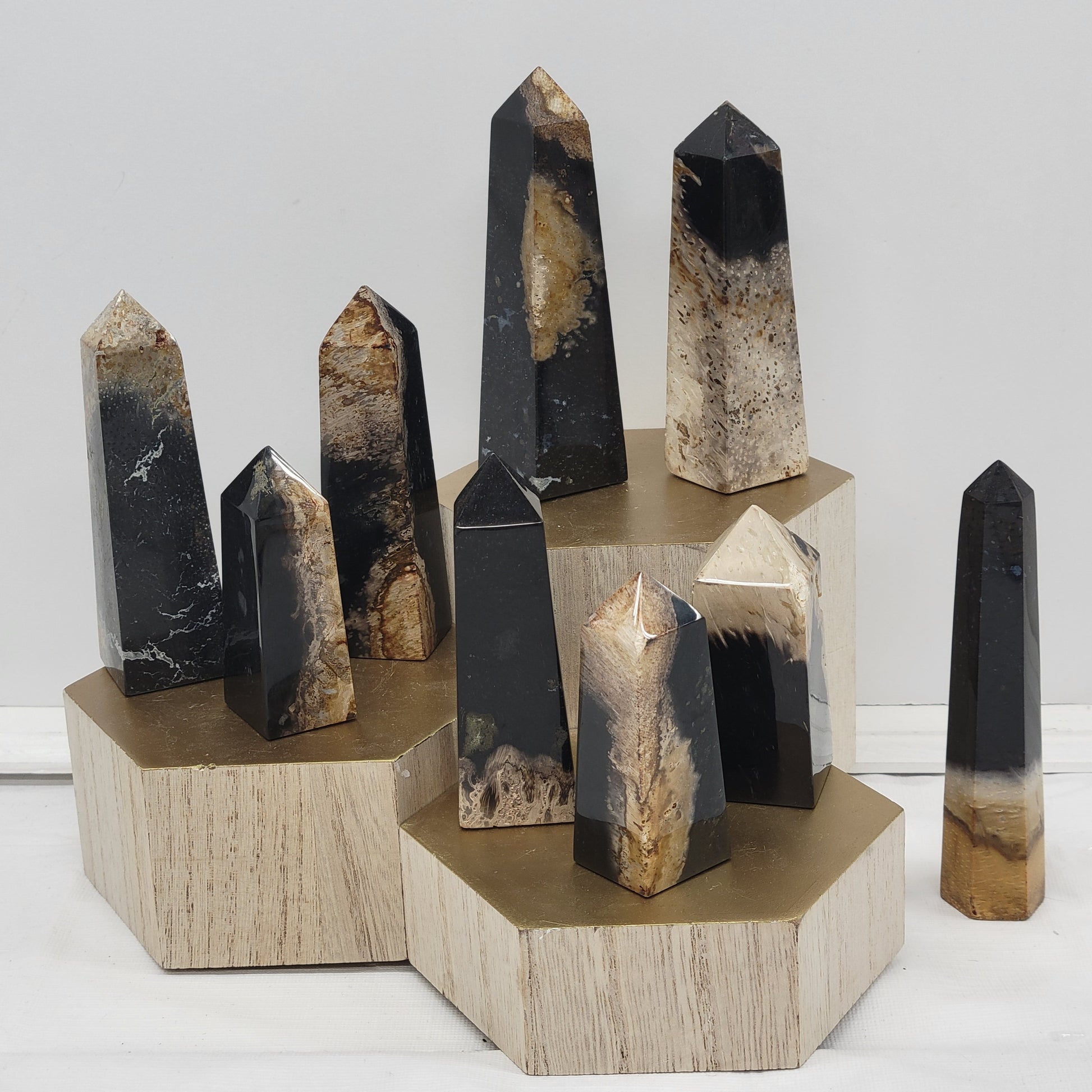 These stones are primarily composed of silica, which over millions of years has replaced the organic matter of the palm roots, resulting in a beautiful and distinctive pattern.