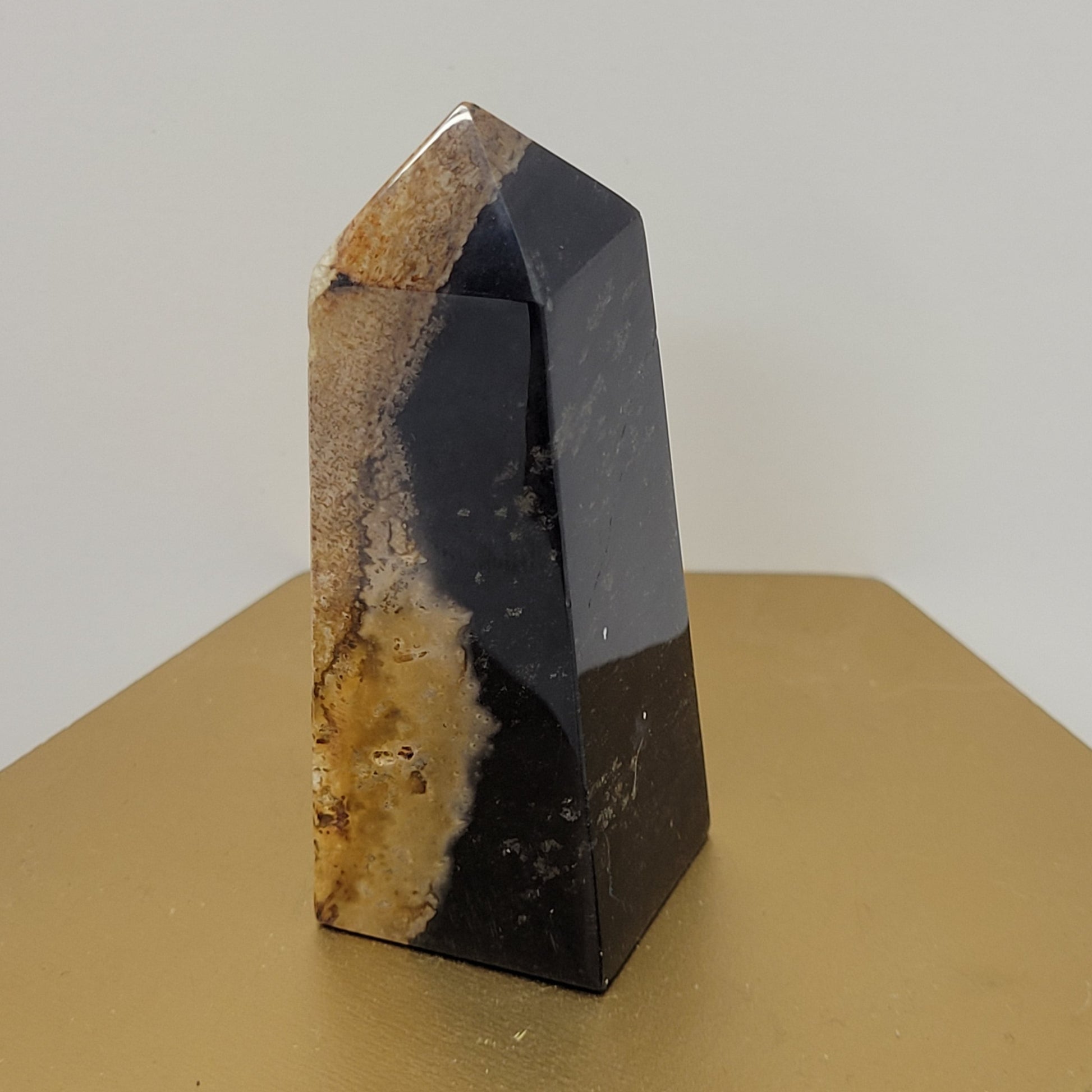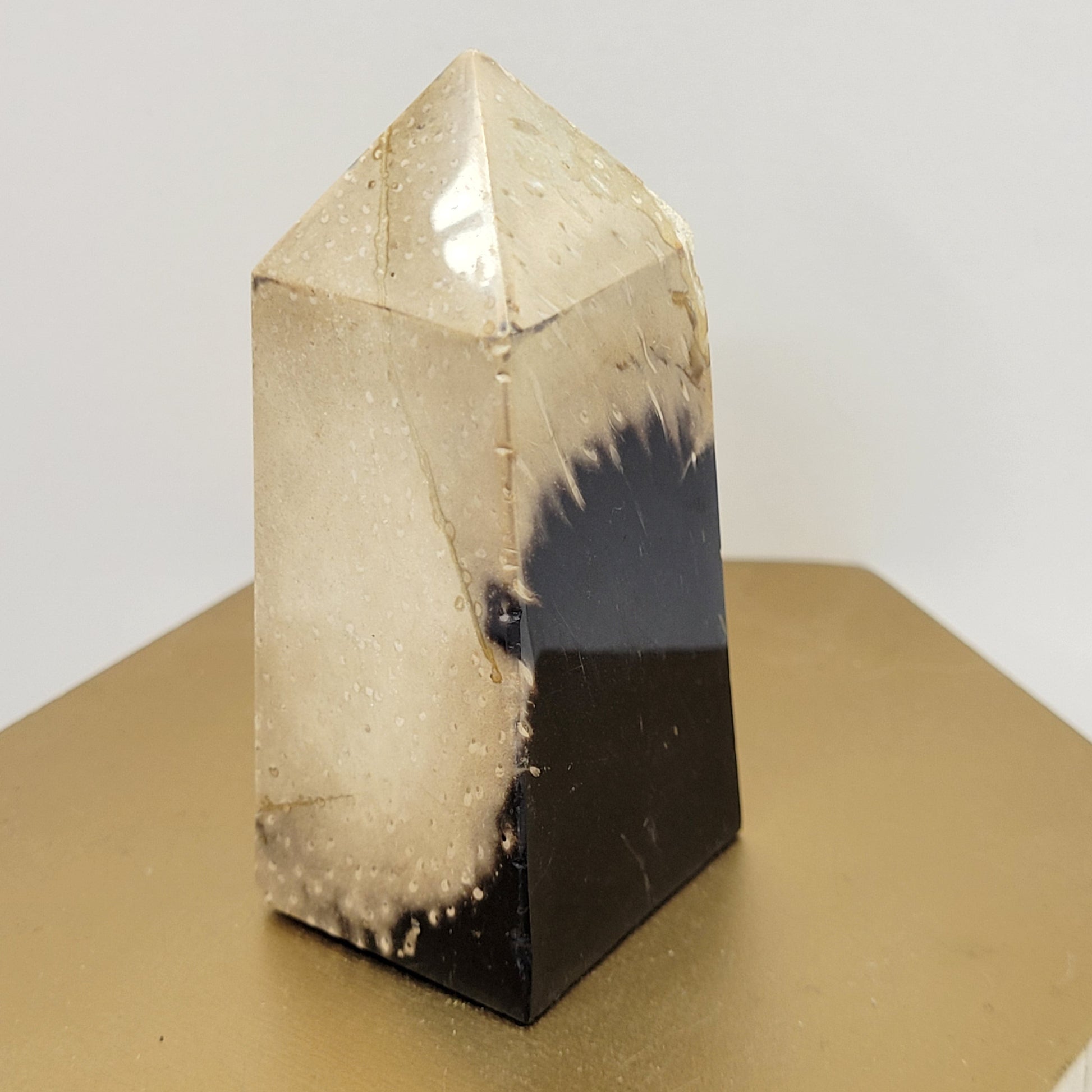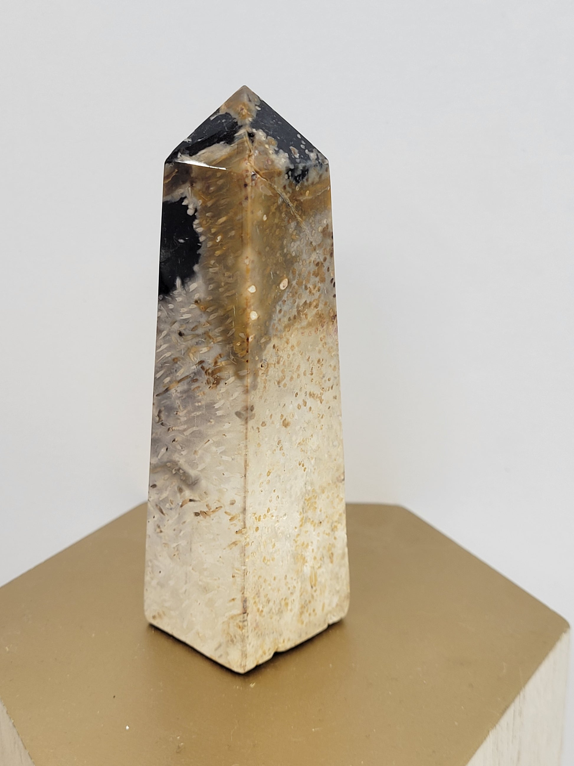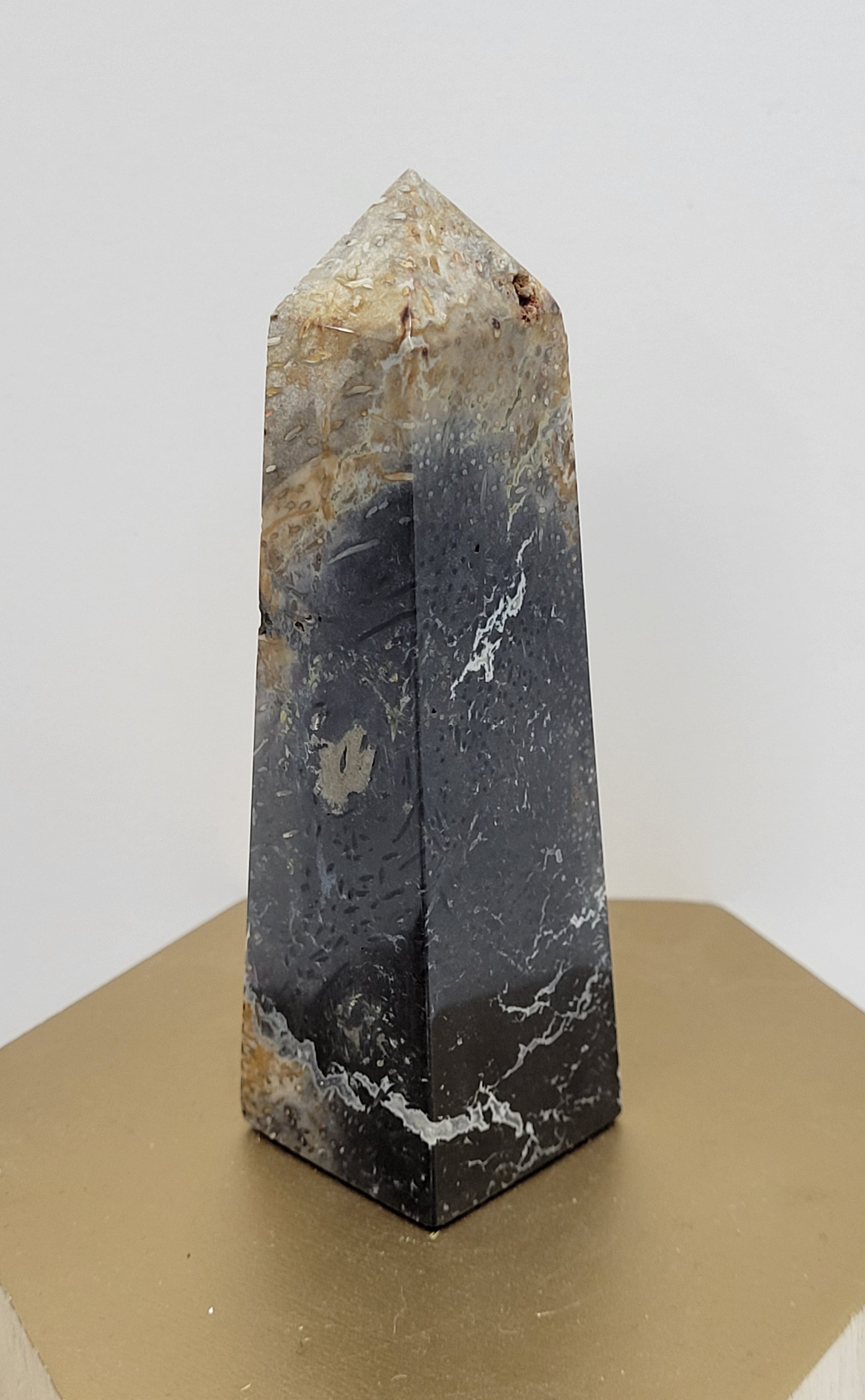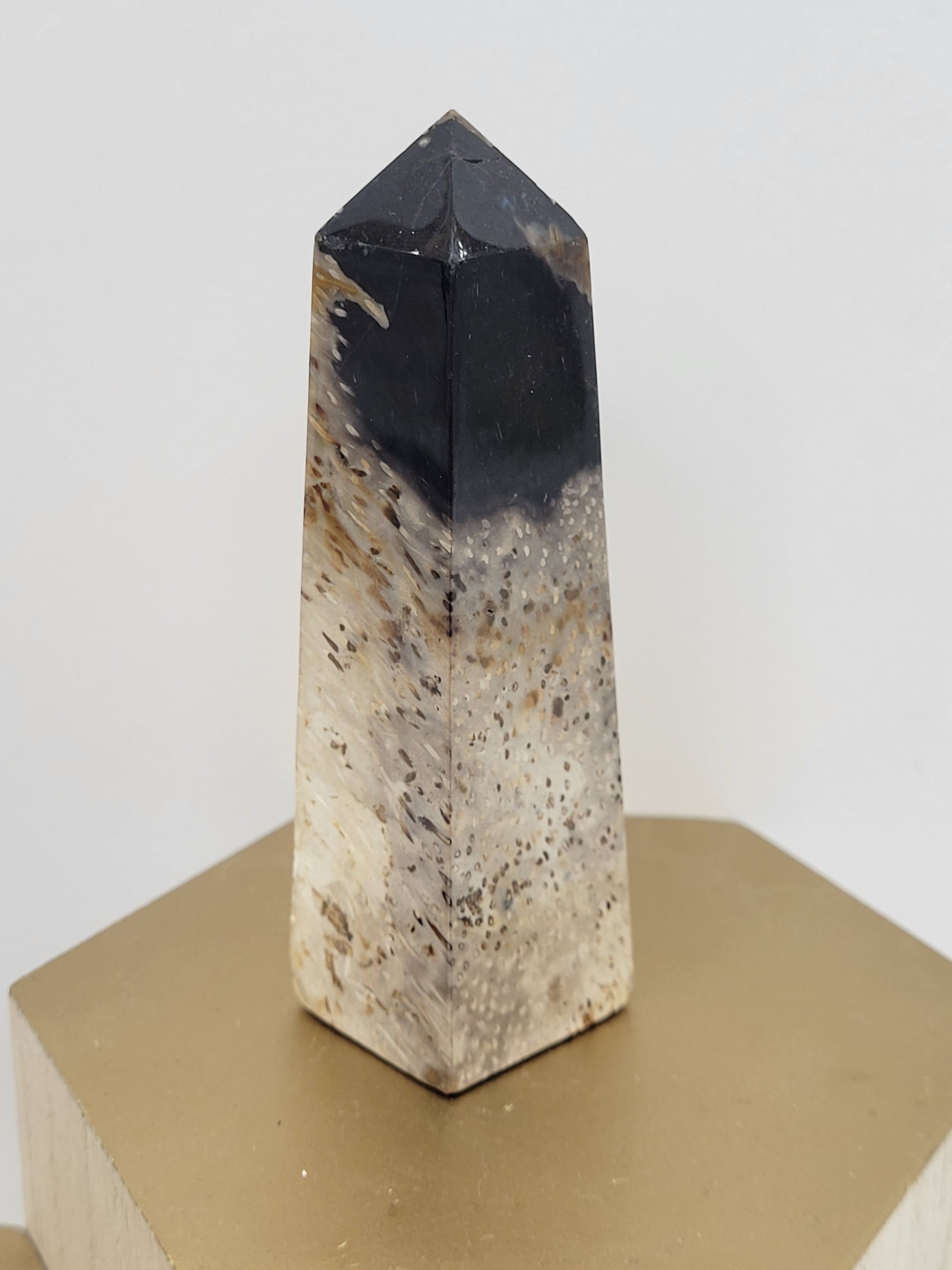 These stones are primarily composed of silica, which over millions of years has replaced the organic matter of the palm roots, resulting in a beautiful and distinctive pattern.