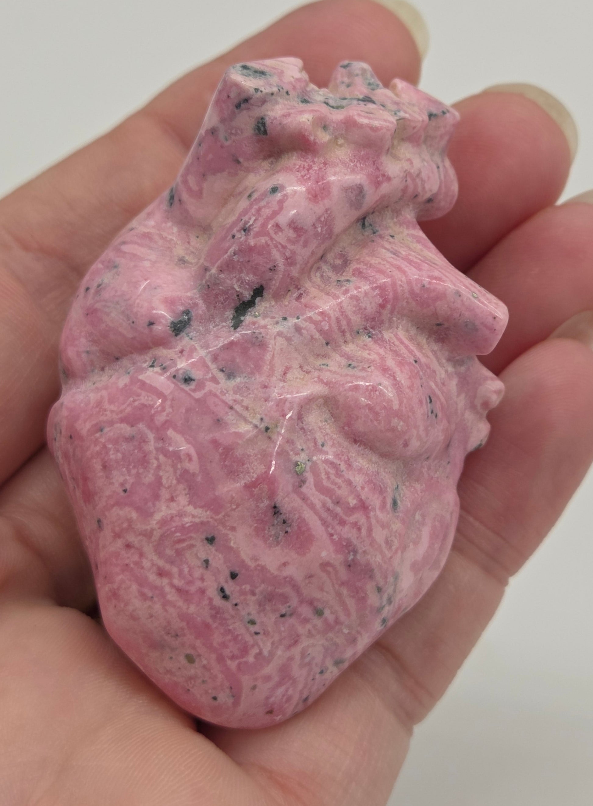 Peruvian Rhodochrosite is a variety of the mineral rhodochrosite, prized for its vibrant colors and unique banding patterns. It's known for its rich pink to red hues, often with creamy white bands, and is found in the silver mines of Peru.