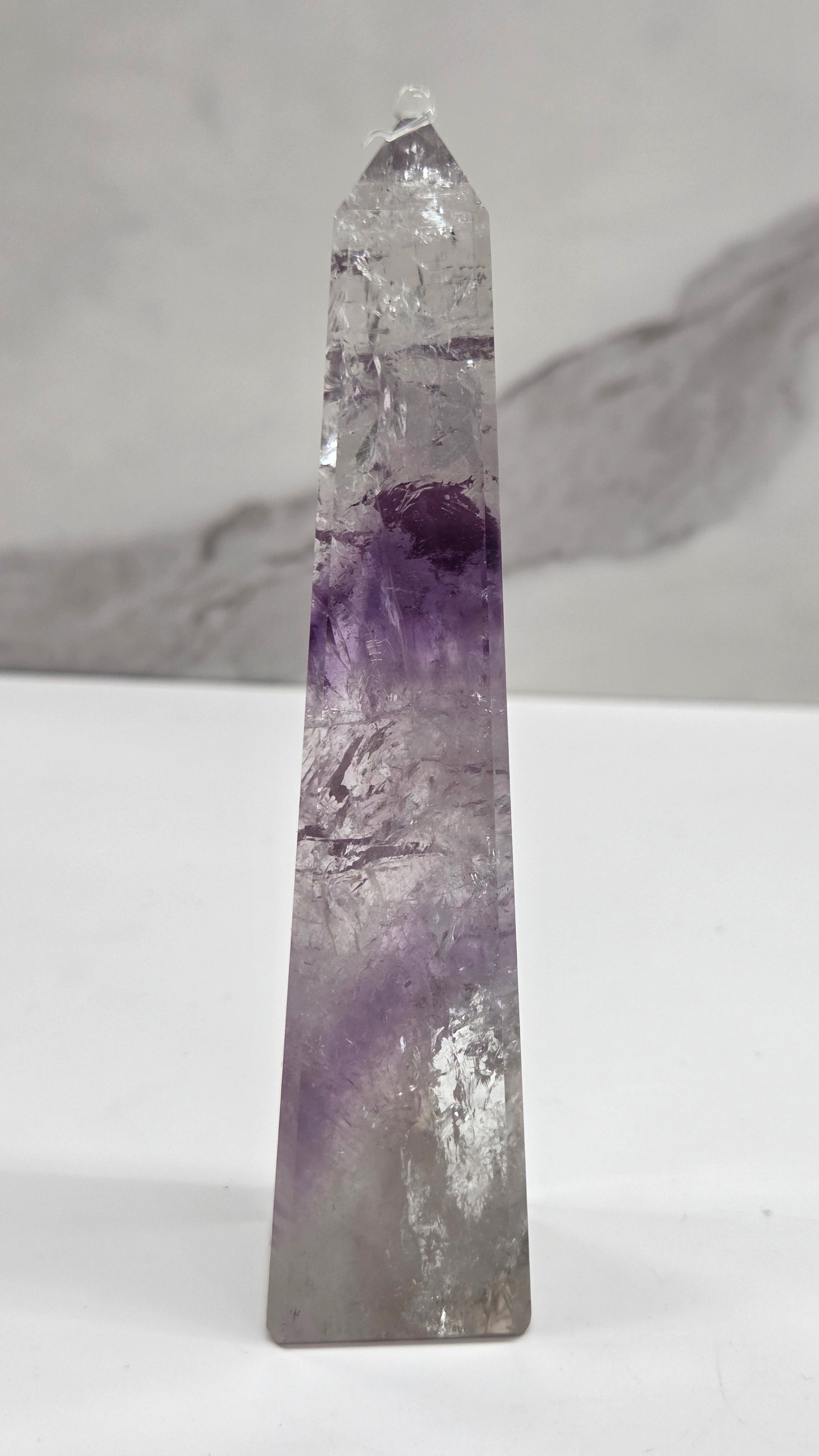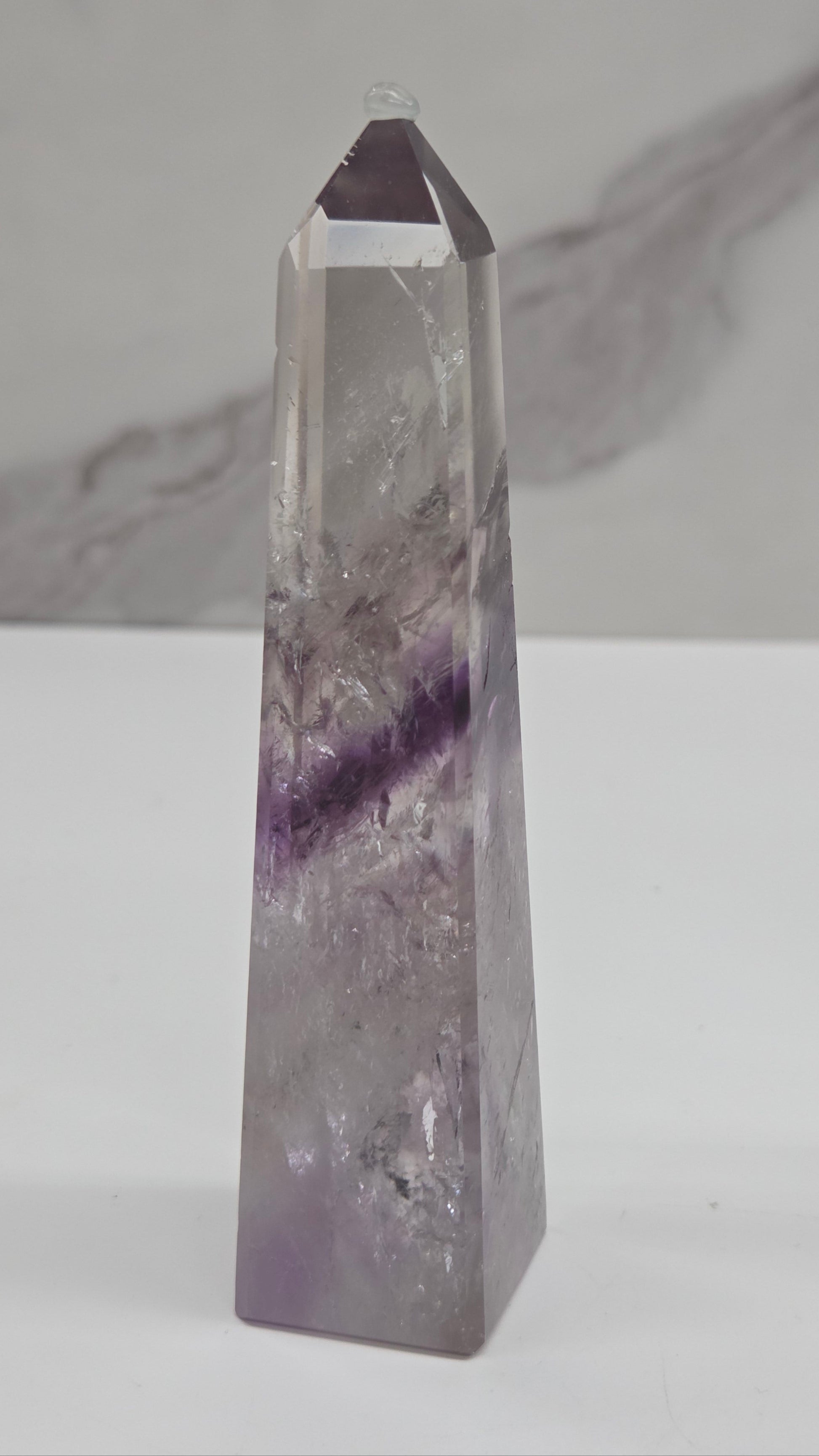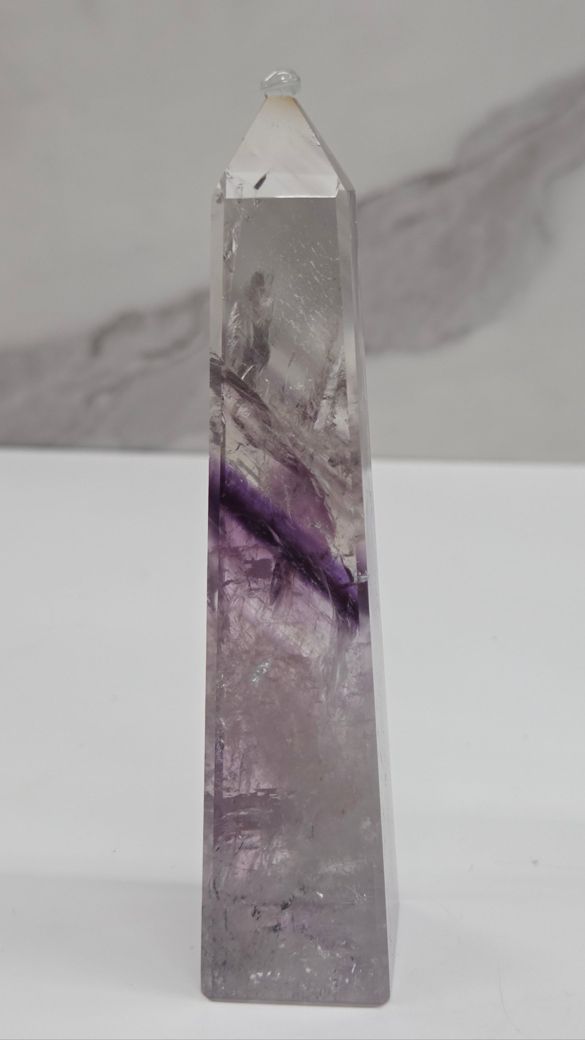 Phantom amethyst is a type of Amethyst Quartz crystal characterized by the presence of a "phantom" layer or outline within the crystal itself, marking a previous growth stage. This phantom effect is caused by changes in trace mineral content or radiation during the crystal's formation, creating a visual record of its growth process.