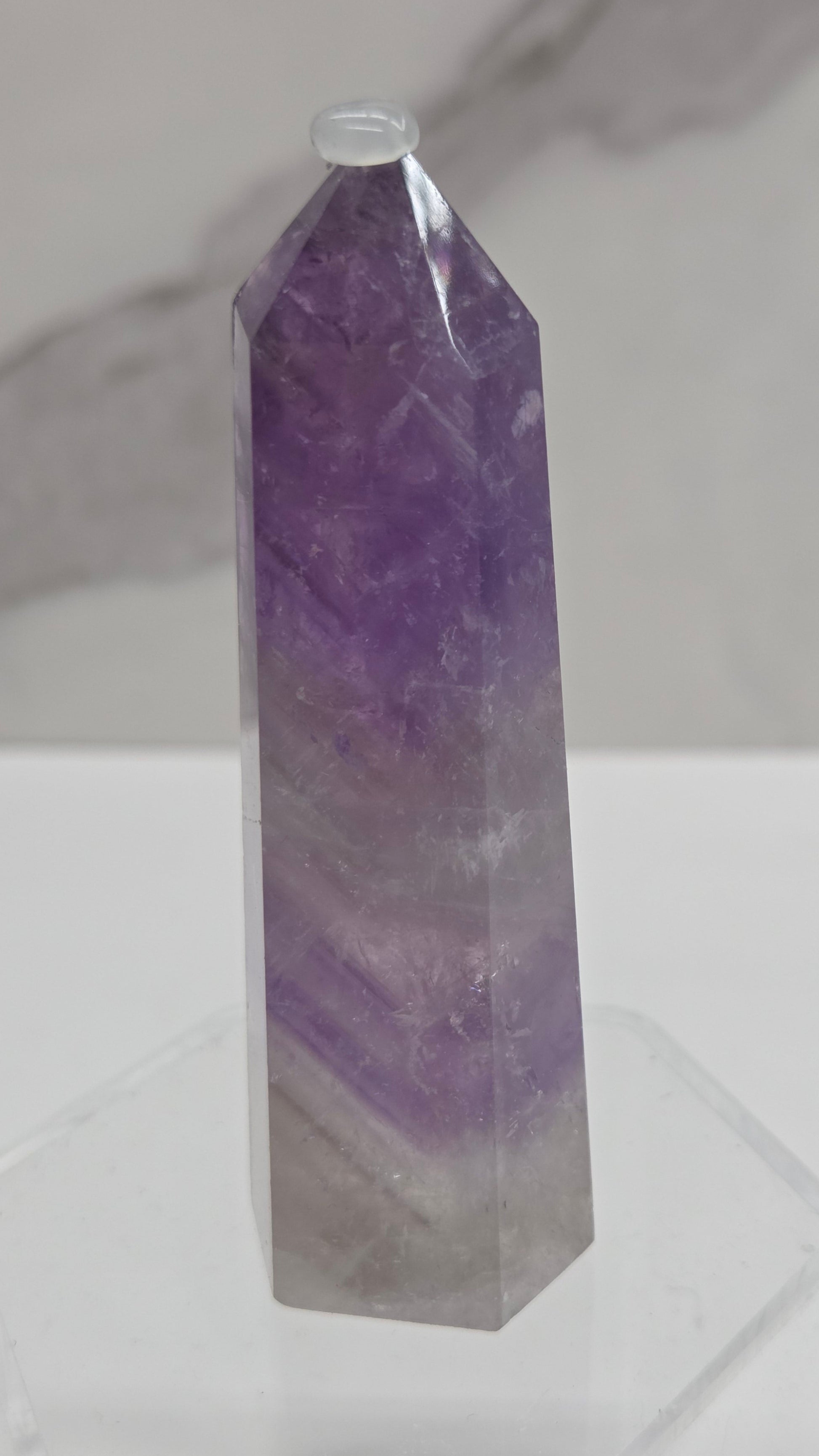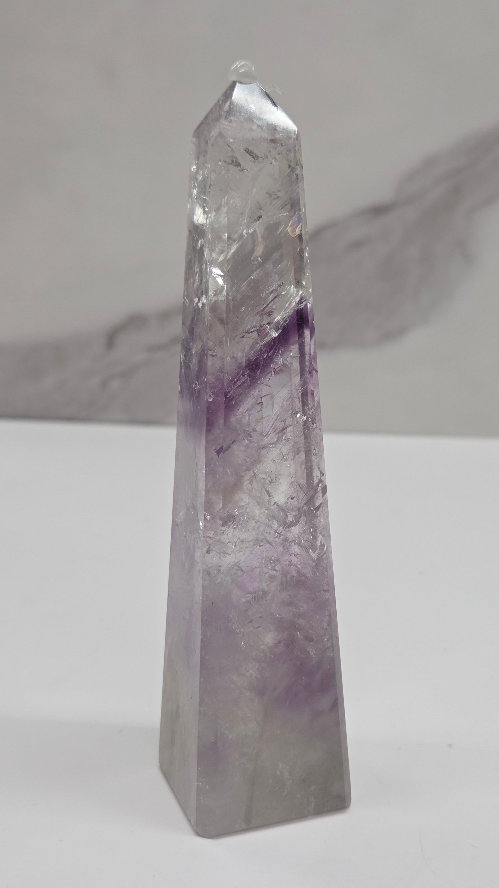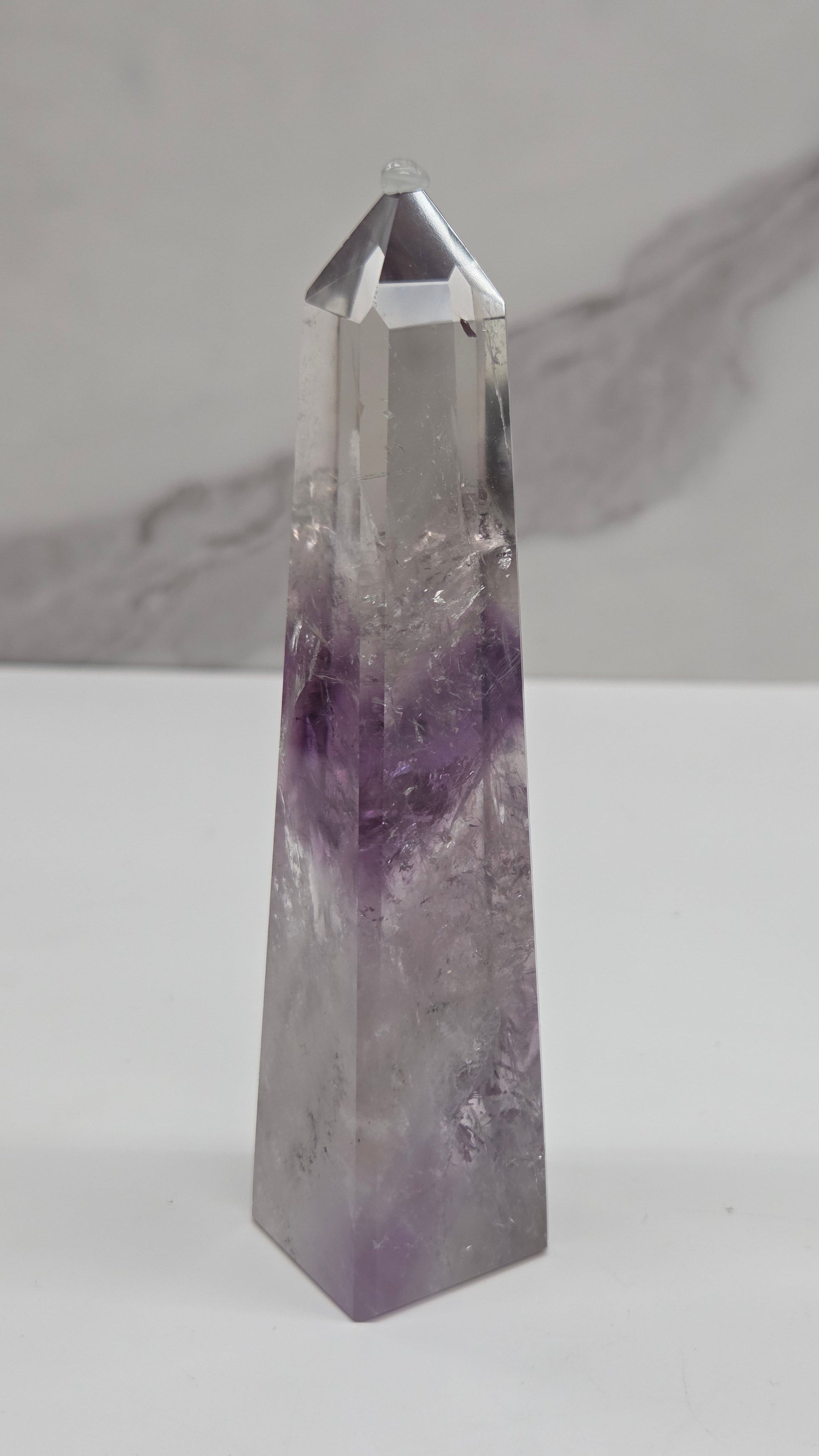Phantom amethyst is a type of Amethyst Quartz crystal characterized by the presence of a "phantom" layer or outline within the crystal itself, marking a previous growth stage. This phantom effect is caused by changes in trace mineral content or radiation during the crystal's formation, creating a visual record of its growth process.
